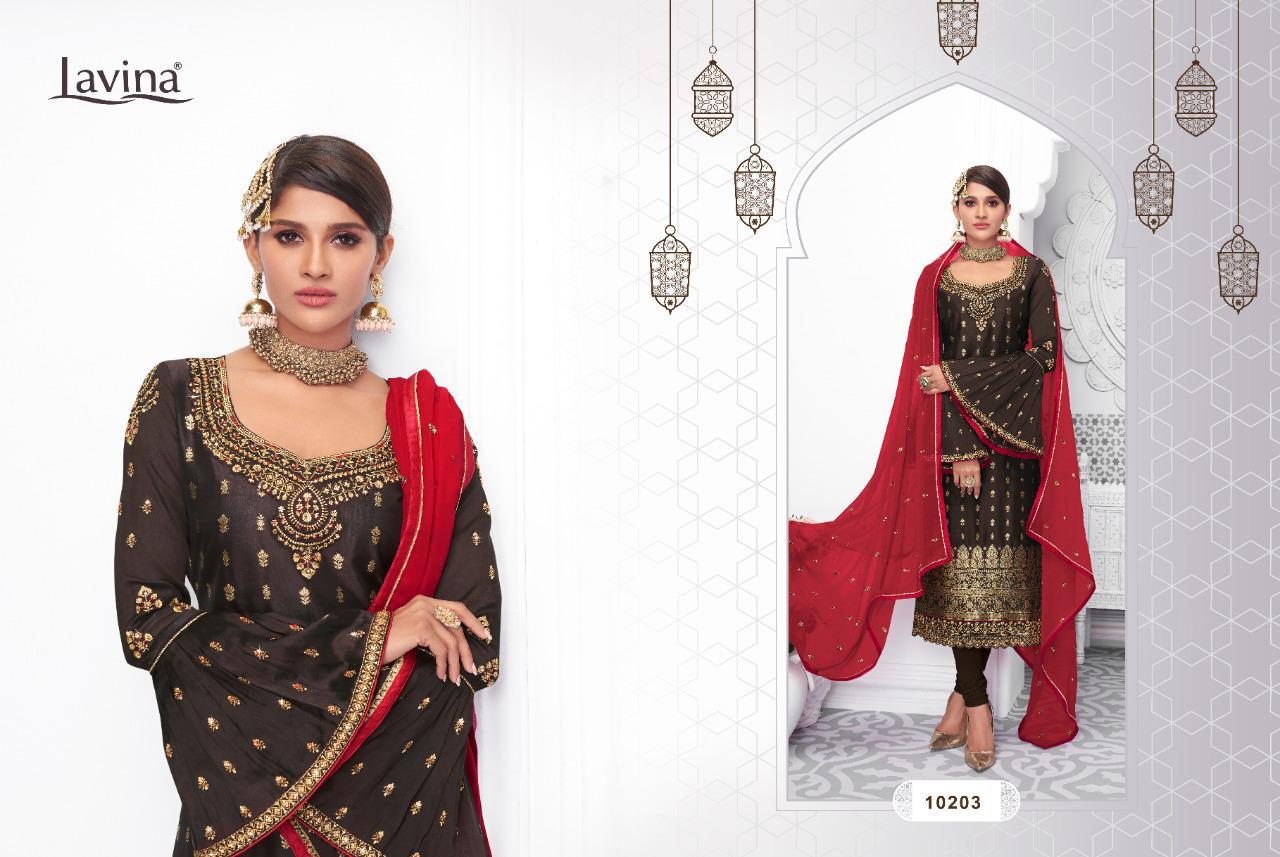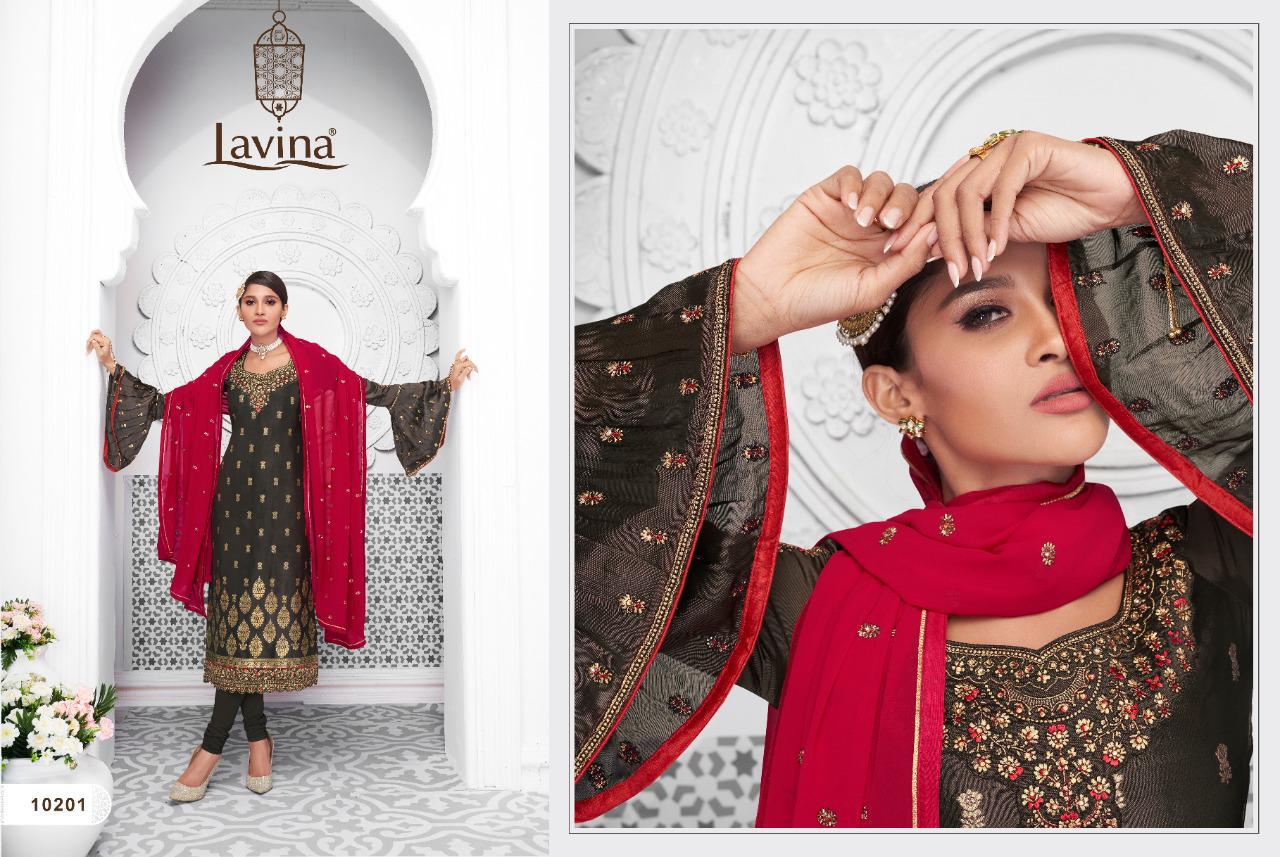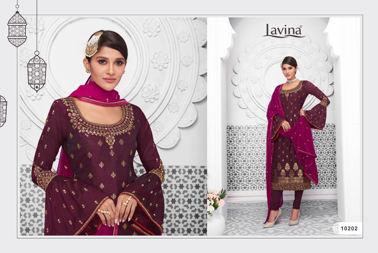 Buy Online Lavina Vol 102 Series 10201 To 10206 Designer Party Wear Suits Wholesale Supplier Gujarat 6 Pcs of Full Catalogue at Wholesale Price. Looking for Lavina Vol 102 Series 10201 To 10206 Designer Party Wear Suits Wholesale Supplier Gujarat Full Catalouge at Best Price? Buy Now Lavina Vol 102 Series 10201 To 10206 Designer Party Wear Suits Wholesale Supplier Gujarat at Wholesale Rate of Rs 10770 with Total 6 Pcs from authroized dealer and supplier of LAVINA Brand. Cost of Each piece is just only Rs 1795 which is very low and affordable price to resale the product in your retail store ,This is Surat based Wholesale Supplier & Dealer of LAVINA Brand. Click on Brand name to Know more about LAVINA Brand's products.Call or Whatsapp on 9898838984 for booking or enquiry