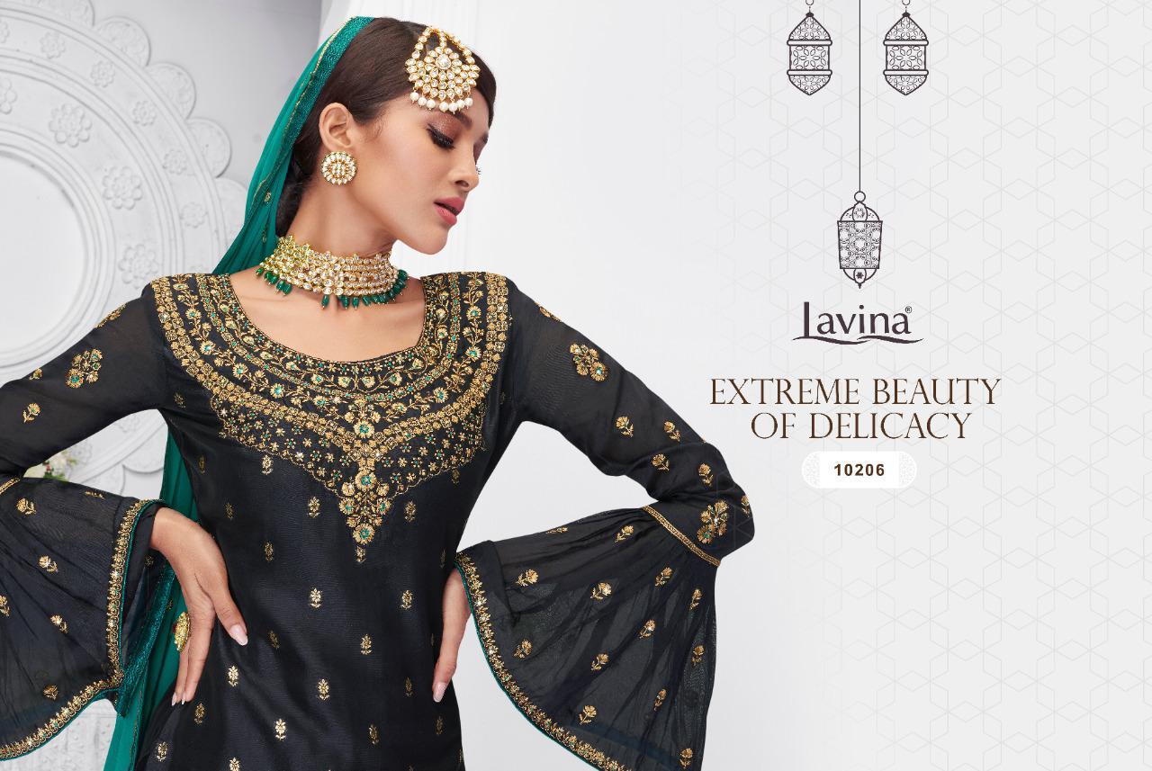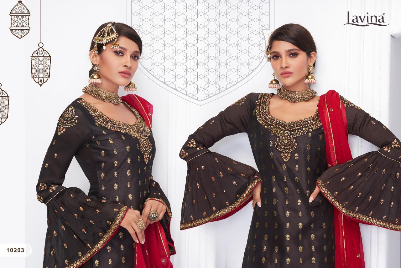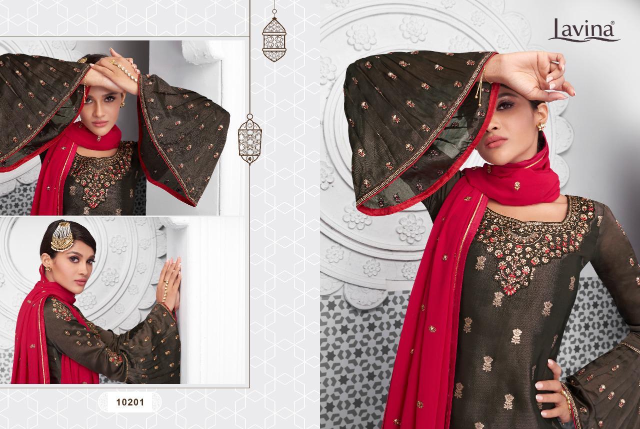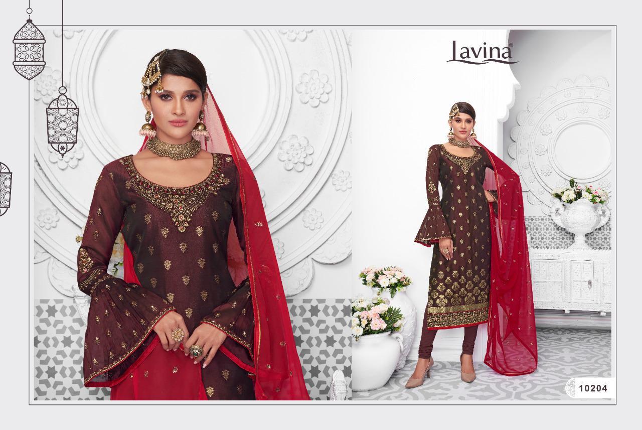 Buy Online Lavina Vol 102 Series 10201 To 10206 Designer Party Wear Suits Wholesale Supplier Gujarat 6 Pcs of Full Catalogue at Wholesale Price. Looking for Lavina Vol 102 Series 10201 To 10206 Designer Party Wear Suits Wholesale Supplier Gujarat Full Catalouge at Best Price? Buy Now Lavina Vol 102 Series 10201 To 10206 Designer Party Wear Suits Wholesale Supplier Gujarat at Wholesale Rate of Rs 10770 with Total 6 Pcs from authroized dealer and supplier of LAVINA Brand. Cost of Each piece is just only Rs 1795 which is very low and affordable price to resale the product in your retail store ,This is Surat based Wholesale Supplier & Dealer of LAVINA Brand. Click on Brand name to Know more about LAVINA Brand's products.Call or Whatsapp on 9898838984 for booking or enquiry