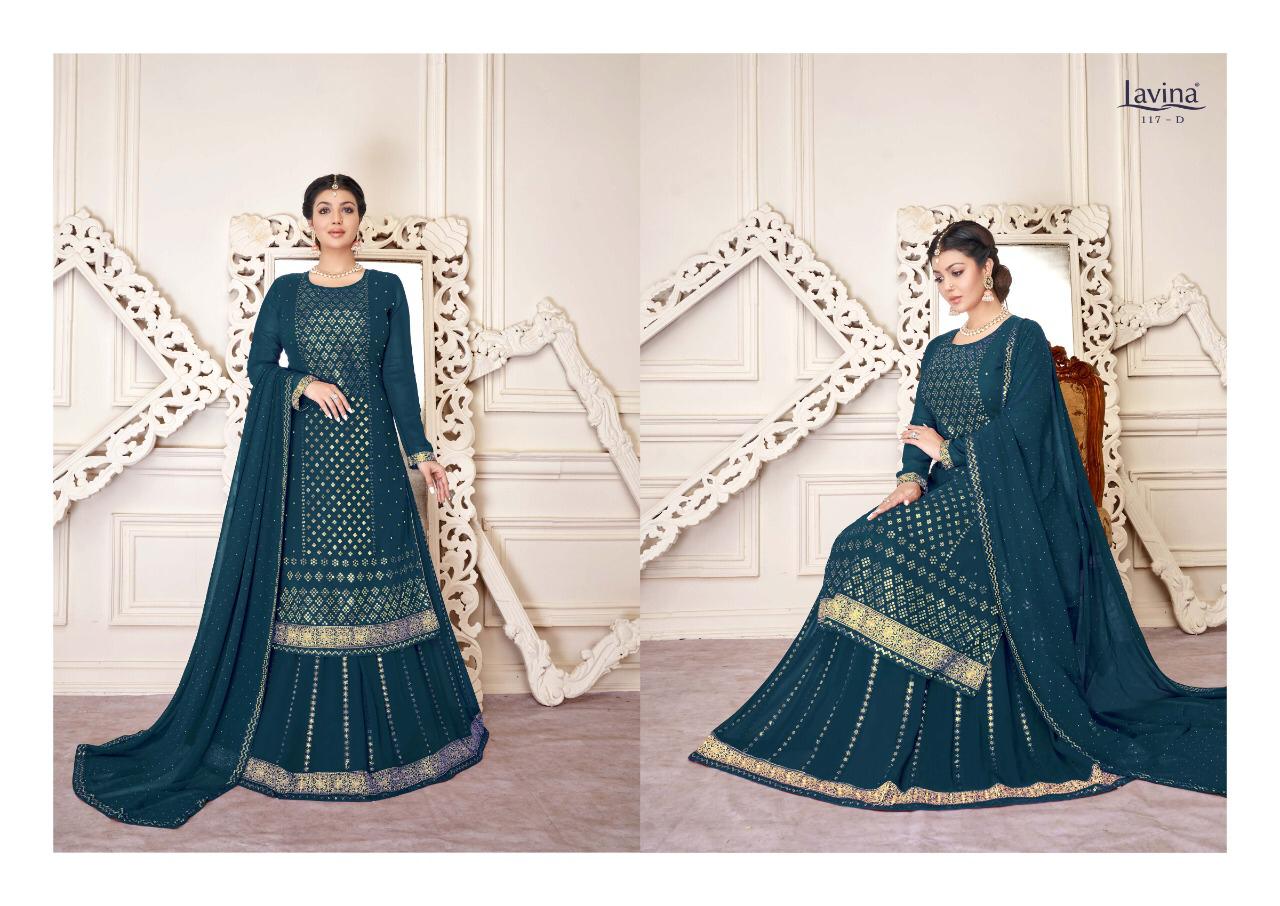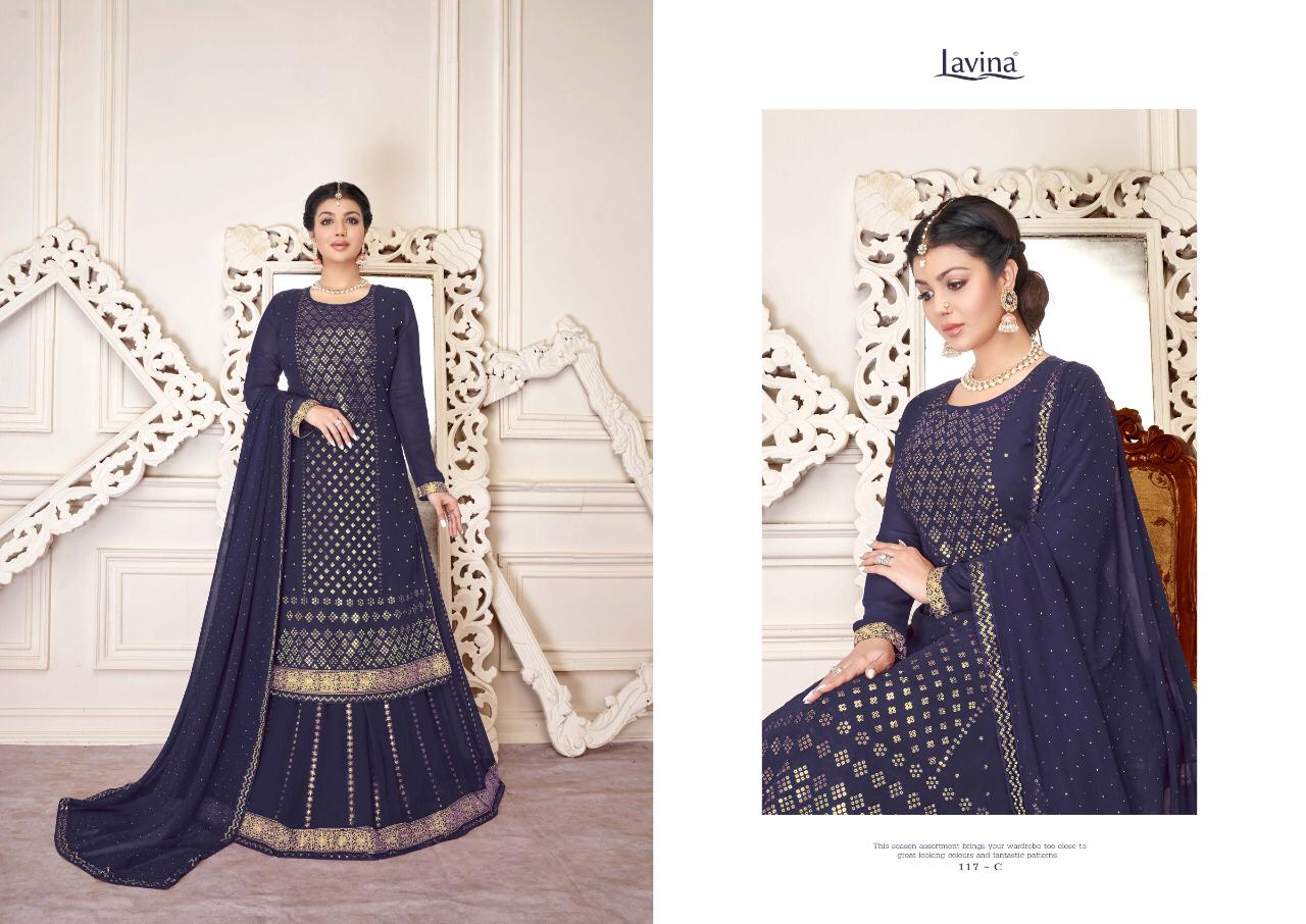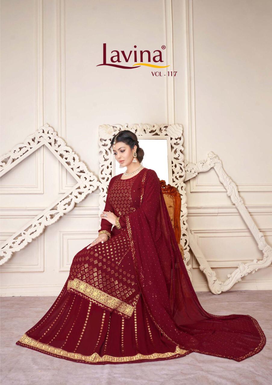 Buy Online Lavina Vol 117 Designer Party Wear Suits Wholesale Supplier Gujarat 5 Pcs of Full Catalogue at Wholesale Price. Looking for Lavina Vol 117 Designer Party Wear Suits Wholesale Supplier Gujarat Full Catalouge at Best Price? Buy Now Lavina Vol 117 Designer Party Wear Suits Wholesale Supplier Gujarat at Wholesale Rate of Rs 10475 with Total 5 Pcs from authroized dealer and supplier of LAVINA Brand. Cost of Each piece is just only Rs 2095 which is very low and affordable price to resale the product in your retail store ,This is Surat based Wholesale Supplier & Dealer of LAVINA Brand. Click on Brand name to Know more about LAVINA Brand's products.Call or Whatsapp on 9898838984 for booking or enquiry