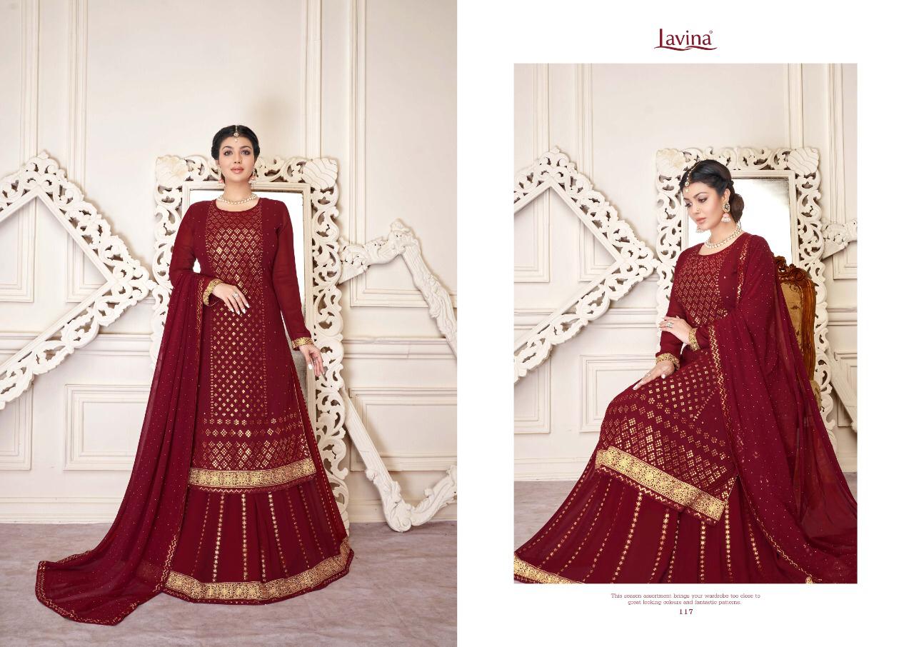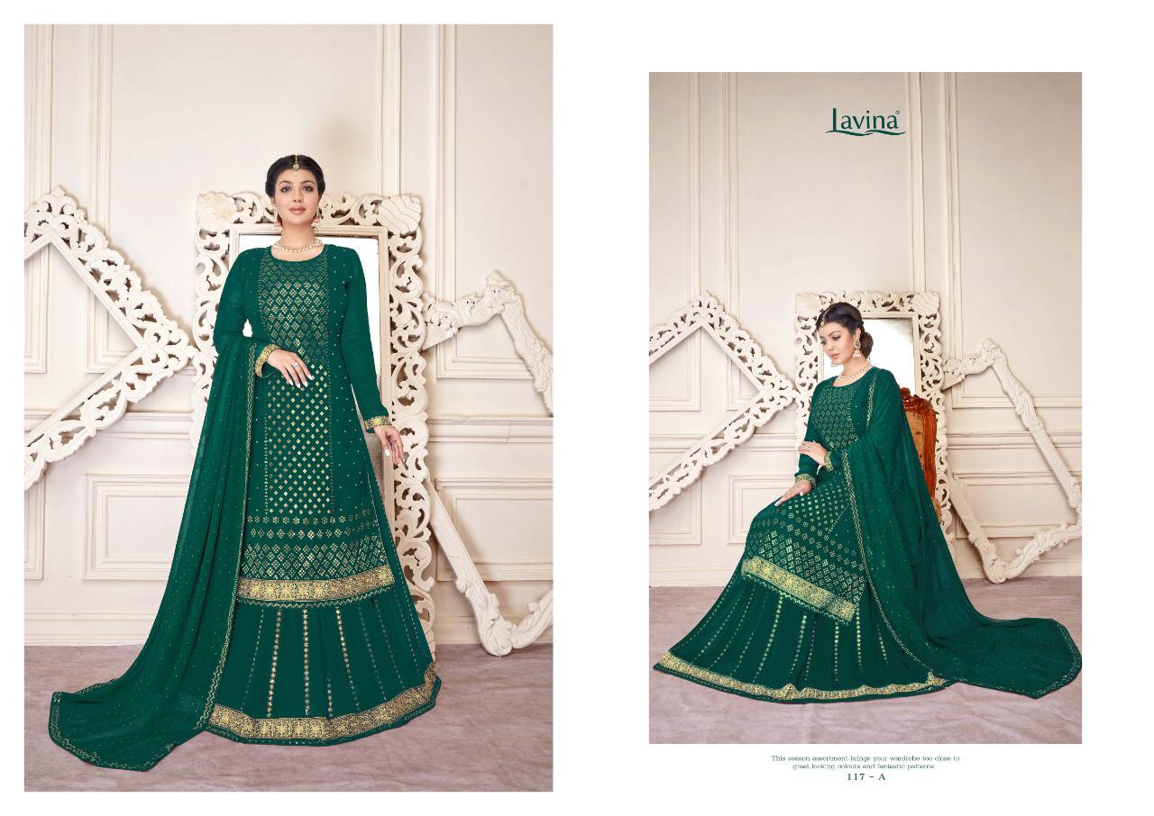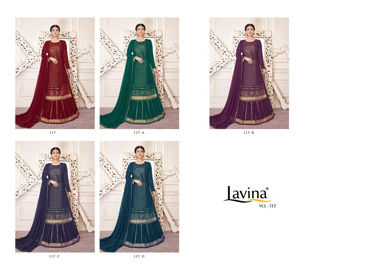 Buy Online Lavina Vol 117 Designer Party Wear Suits Wholesale Supplier Gujarat 5 Pcs of Full Catalogue at Wholesale Price. Looking for Lavina Vol 117 Designer Party Wear Suits Wholesale Supplier Gujarat Full Catalouge at Best Price? Buy Now Lavina Vol 117 Designer Party Wear Suits Wholesale Supplier Gujarat at Wholesale Rate of Rs 10475 with Total 5 Pcs from authroized dealer and supplier of LAVINA Brand. Cost of Each piece is just only Rs 2095 which is very low and affordable price to resale the product in your retail store ,This is Surat based Wholesale Supplier & Dealer of LAVINA Brand. Click on Brand name to Know more about LAVINA Brand's products.Call or Whatsapp on 9898838984 for booking or enquiry