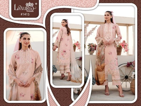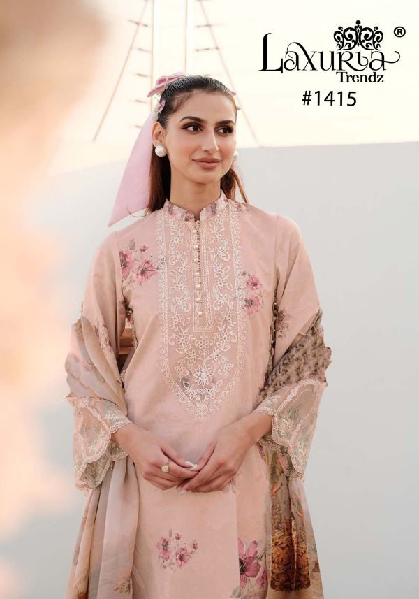 Buy Online Laxuria Trendz D No 1415 Printed Collection 5 Pcs of Full Catalogue at Wholesale Price. Looking for Laxuria Trendz D No 1415 Printed Collection Full Catalouge at Best Price? Buy Now Laxuria Trendz D No 1415 Printed Collection at Wholesale Rate of Rs 7750 with Total 5 Pcs from authroized dealer and supplier of Brand. Cost of Each piece is just only Rs 1550 which is very low and affordable price to resale the product in your retail store ,This is Surat based Wholesale Supplier & Dealer of Brand. Click on Brand name to Know more about Brand's products.Call or Whatsapp on 9898838984 for booking or enquiry
