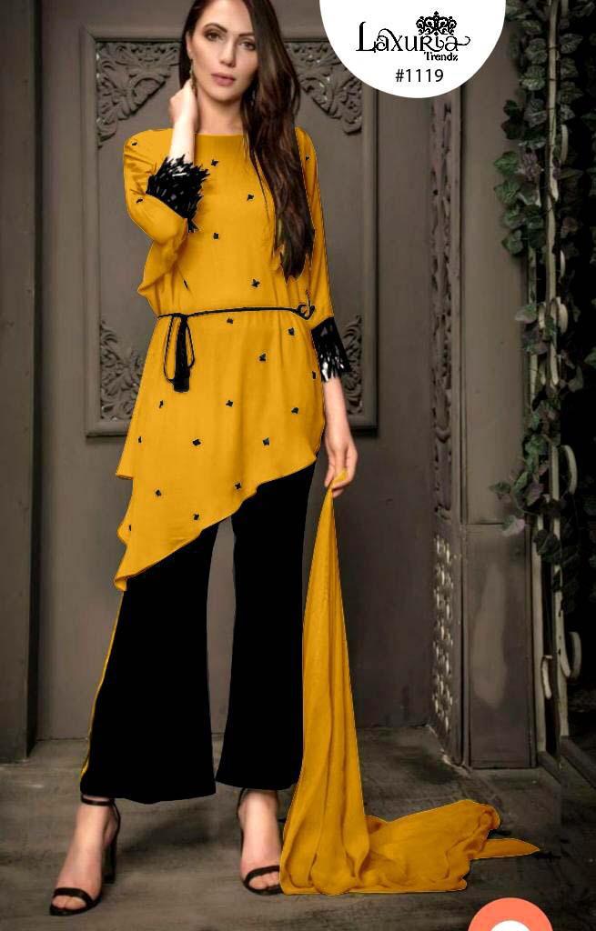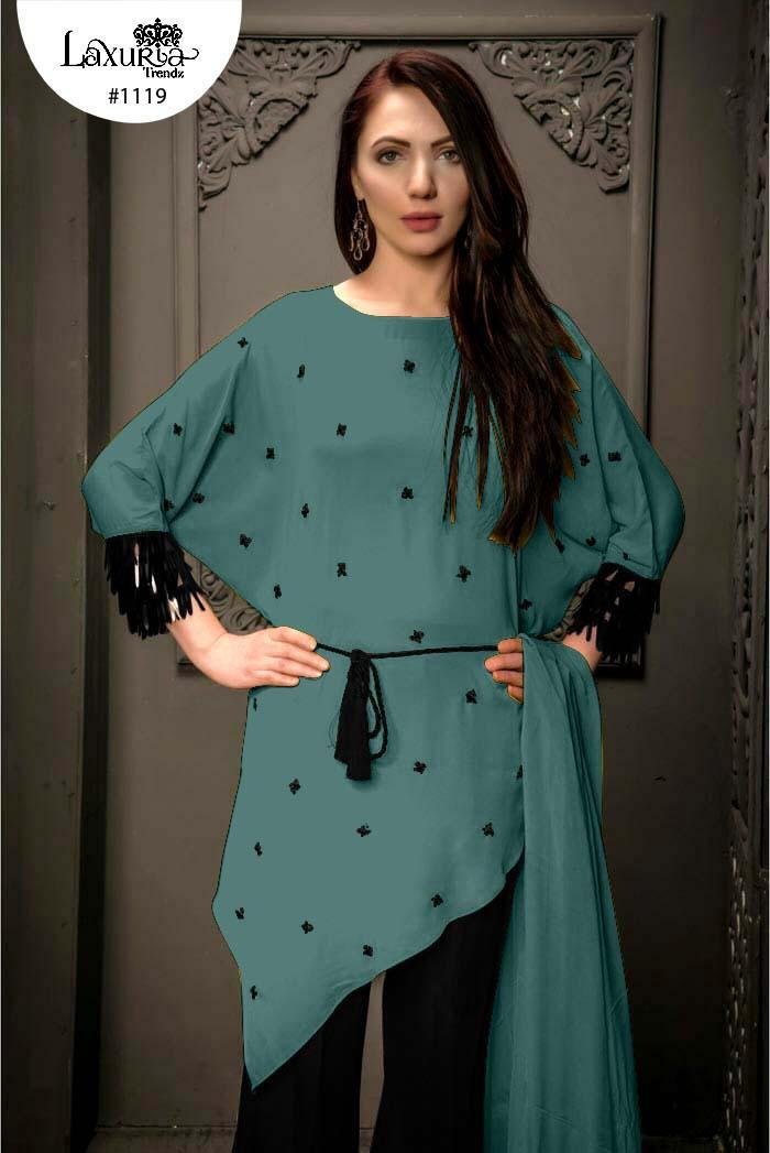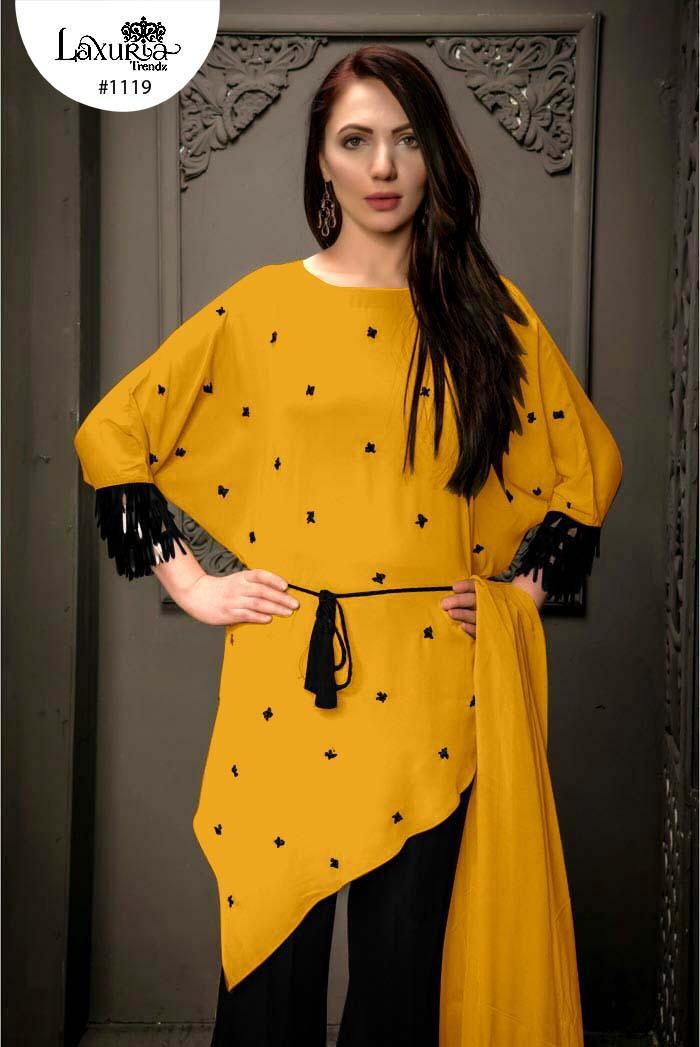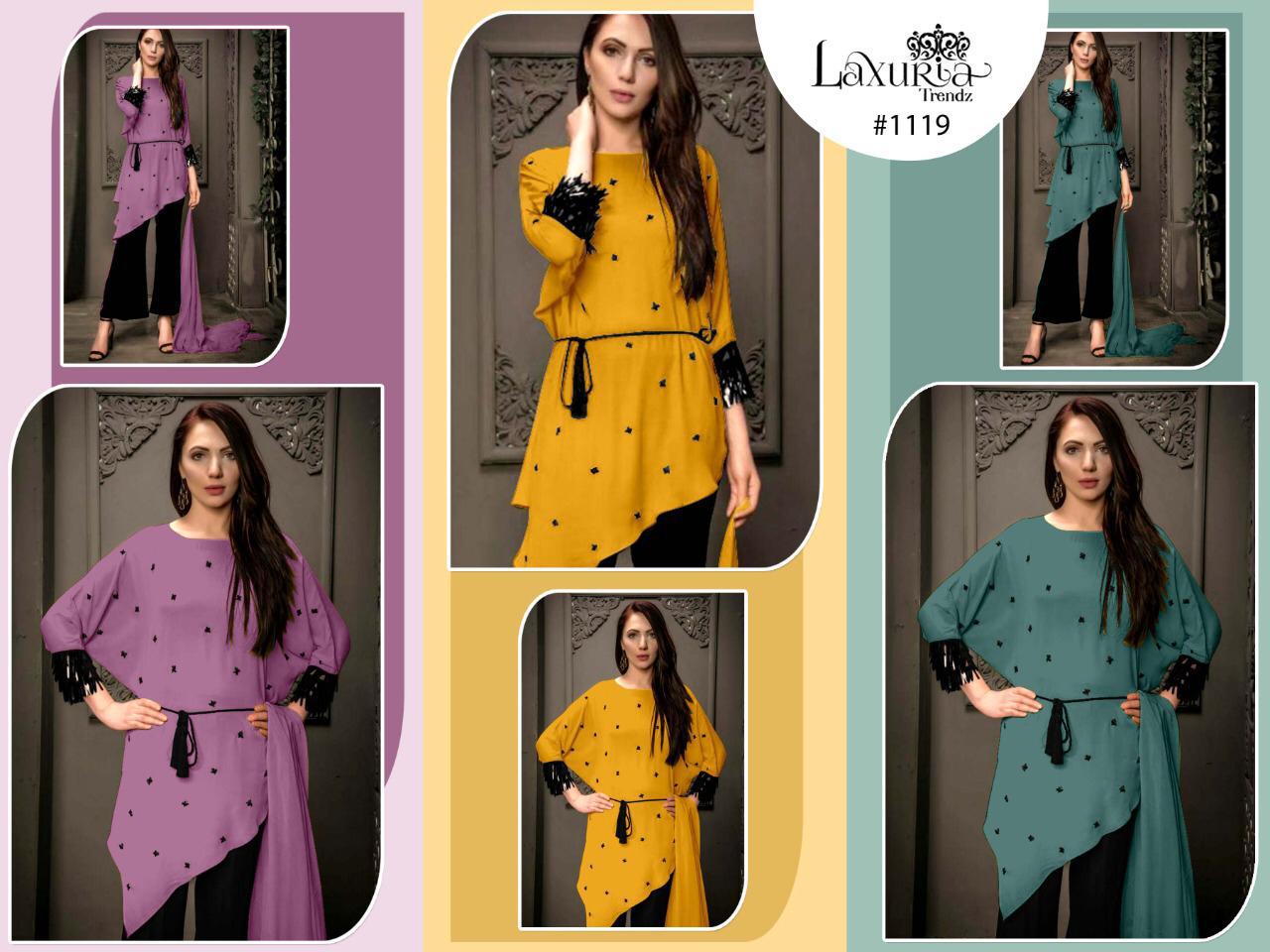 Buy Online Laxuria Trendz Series 1119 Kurtis With Bottom Wholesale Supplier And Dealer Surat 3 Pcs of Full Catalogue at Wholesale Price. Looking for Laxuria Trendz Series 1119 Kurtis With Bottom Wholesale Supplier And Dealer Surat Full Catalouge at Best Price? Buy Now Laxuria Trendz Series 1119 Kurtis With Bottom Wholesale Supplier And Dealer Surat at Wholesale Rate of Rs 2997 with Total 3 Pcs from authroized dealer and supplier of Brand. Cost of Each piece is just only Rs 999 which is very low and affordable price to resale the product in your retail store ,This is Surat based Wholesale Supplier & Dealer of Brand. Click on Brand name to Know more about Brand's products.Call or Whatsapp on 9898838984 for booking or enquiry