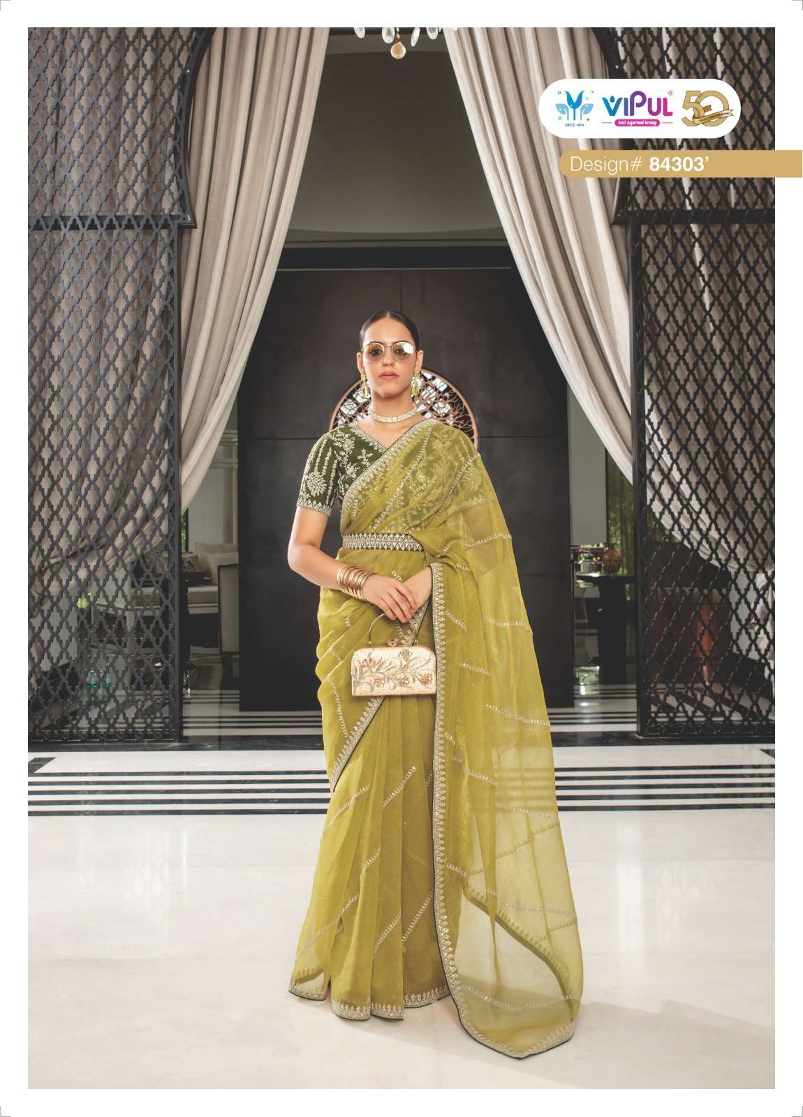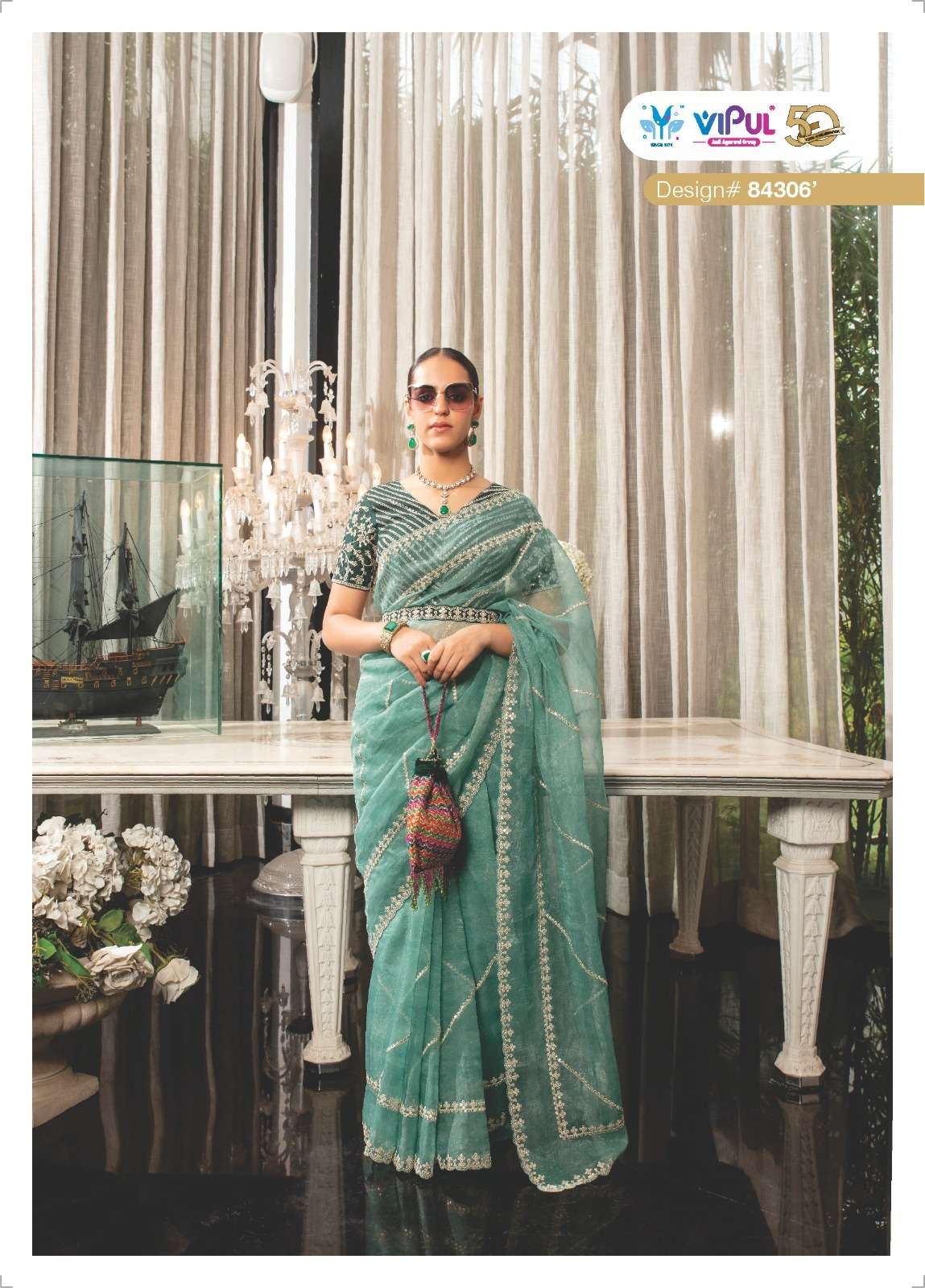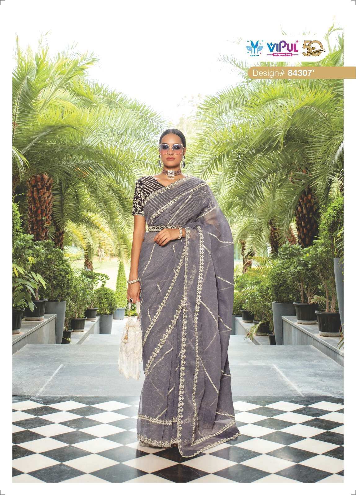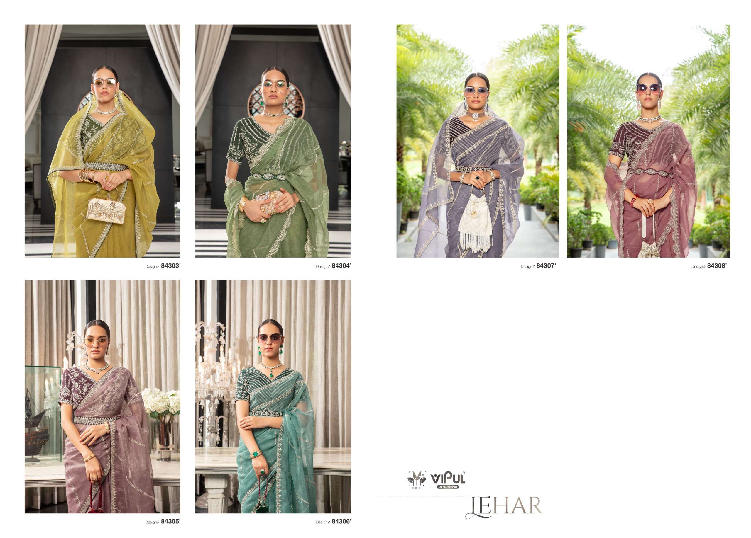 Lehar Series 84303 to 84308 by Vipul Stylish Embroidery Organza Saree creation manufacturer surat