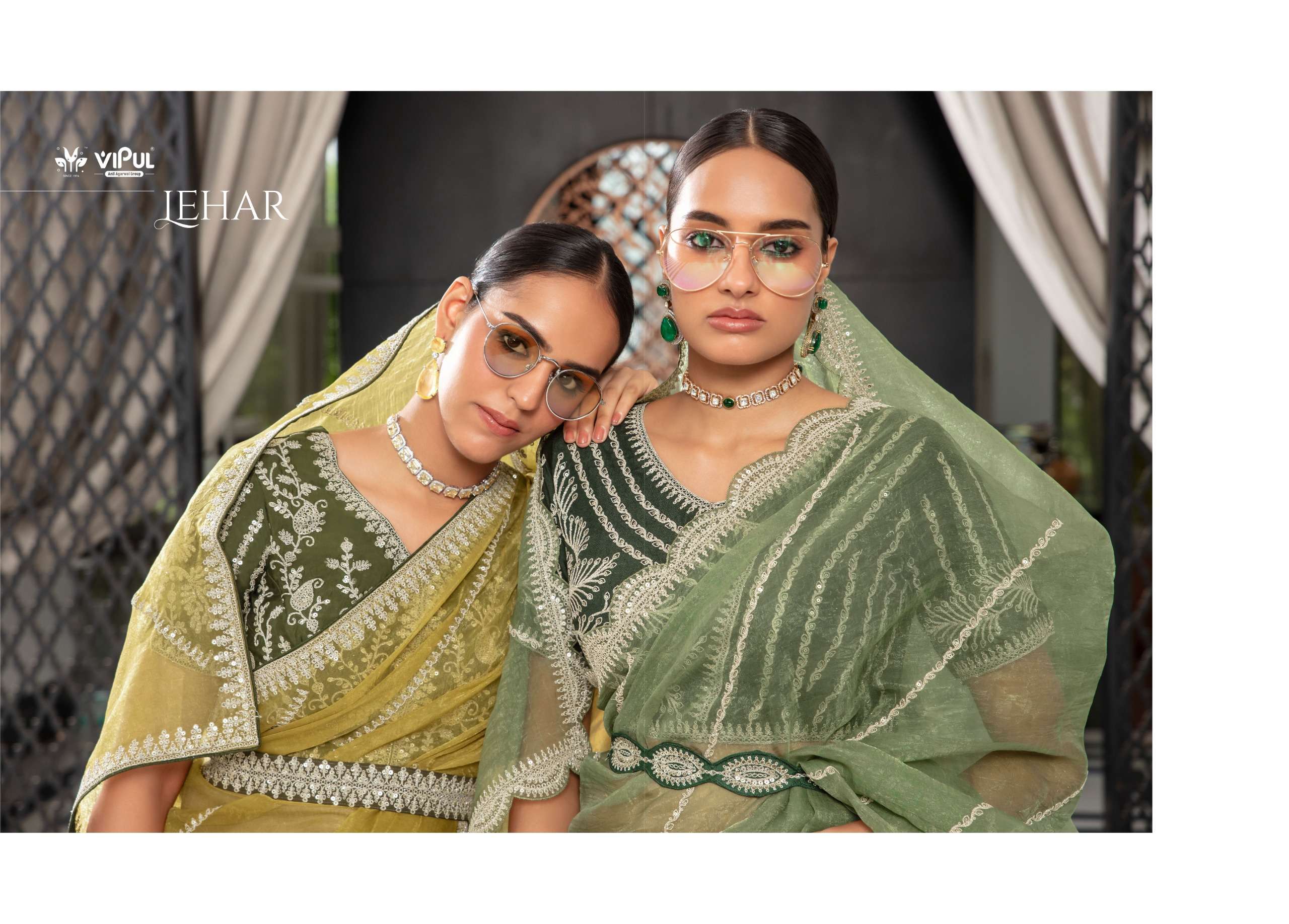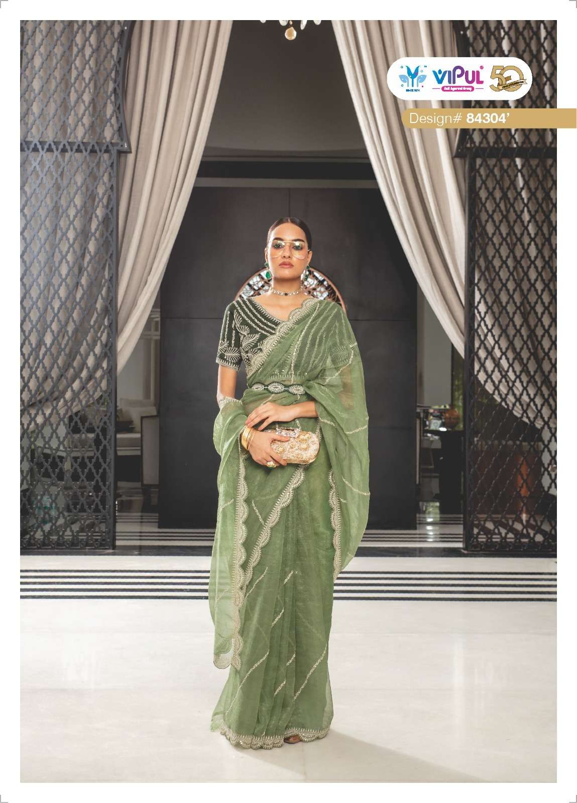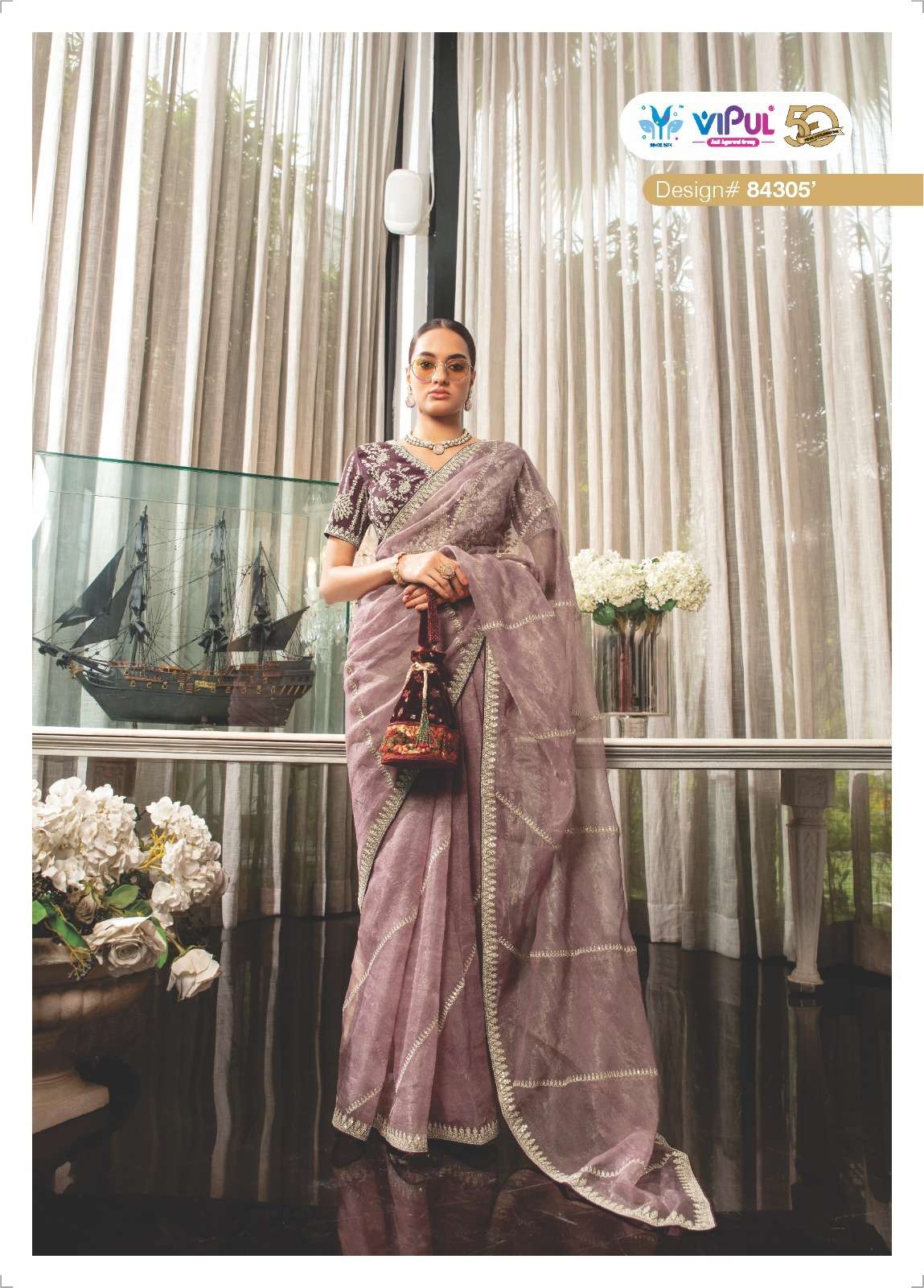 Lehar Series 84303 to 84308 by Vipul Stylish Embroidery Organza Saree creation manufacturer surat