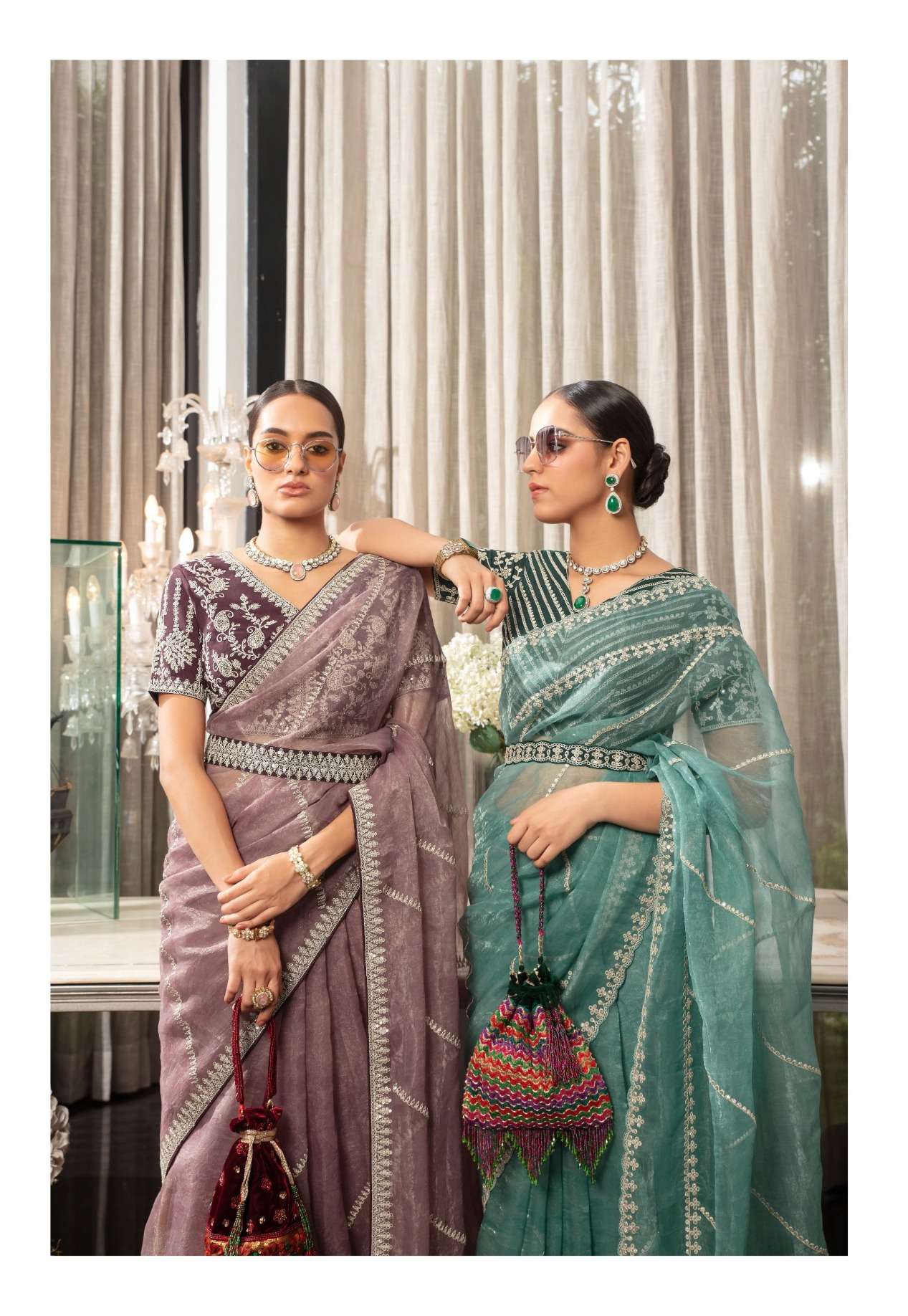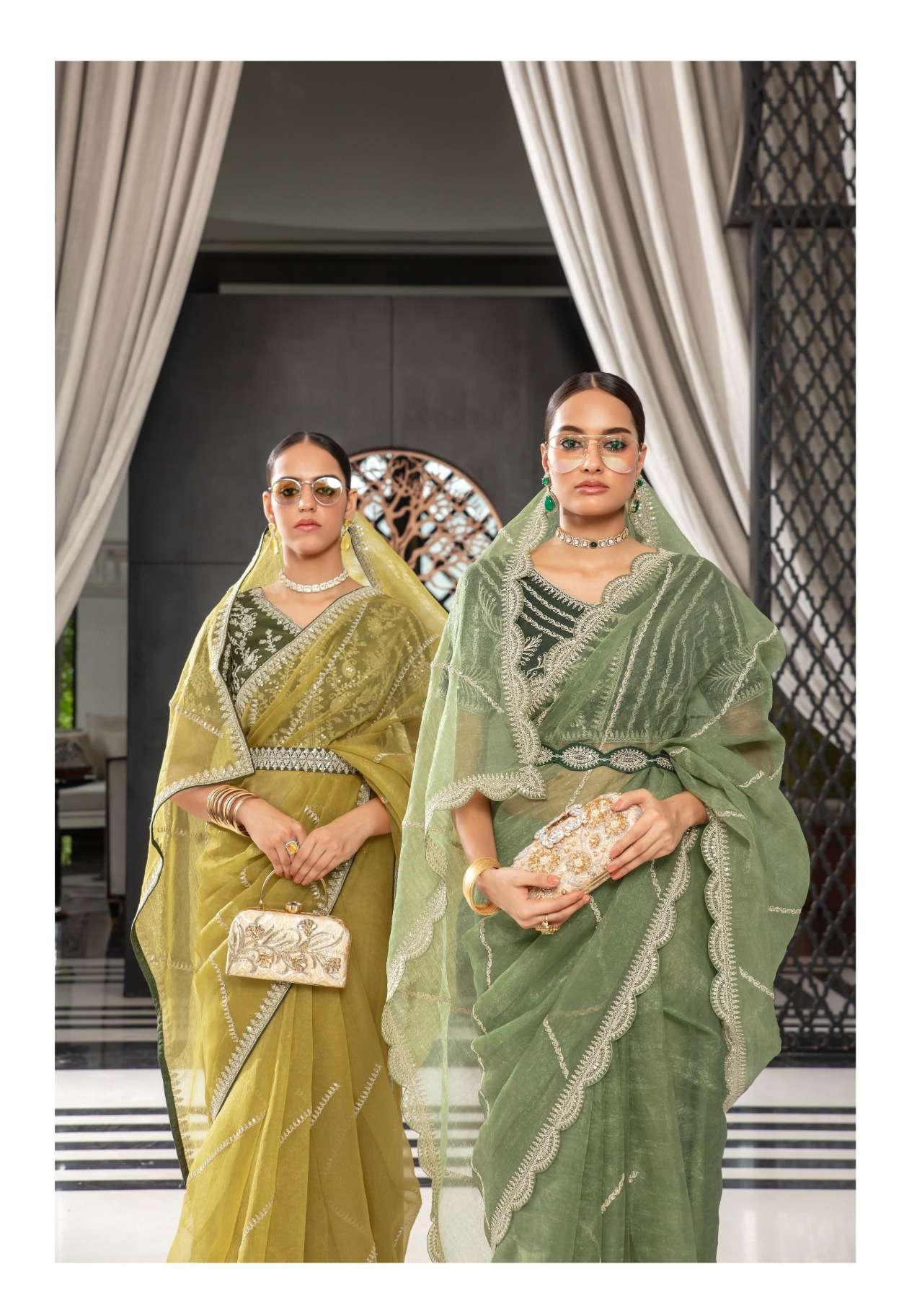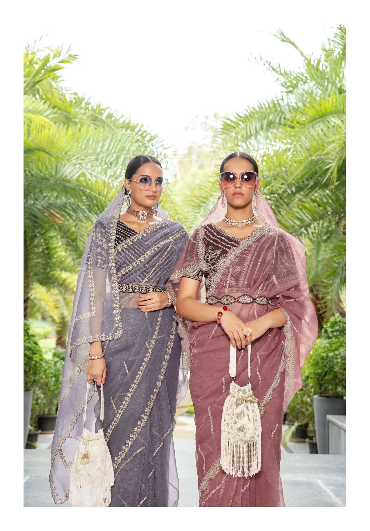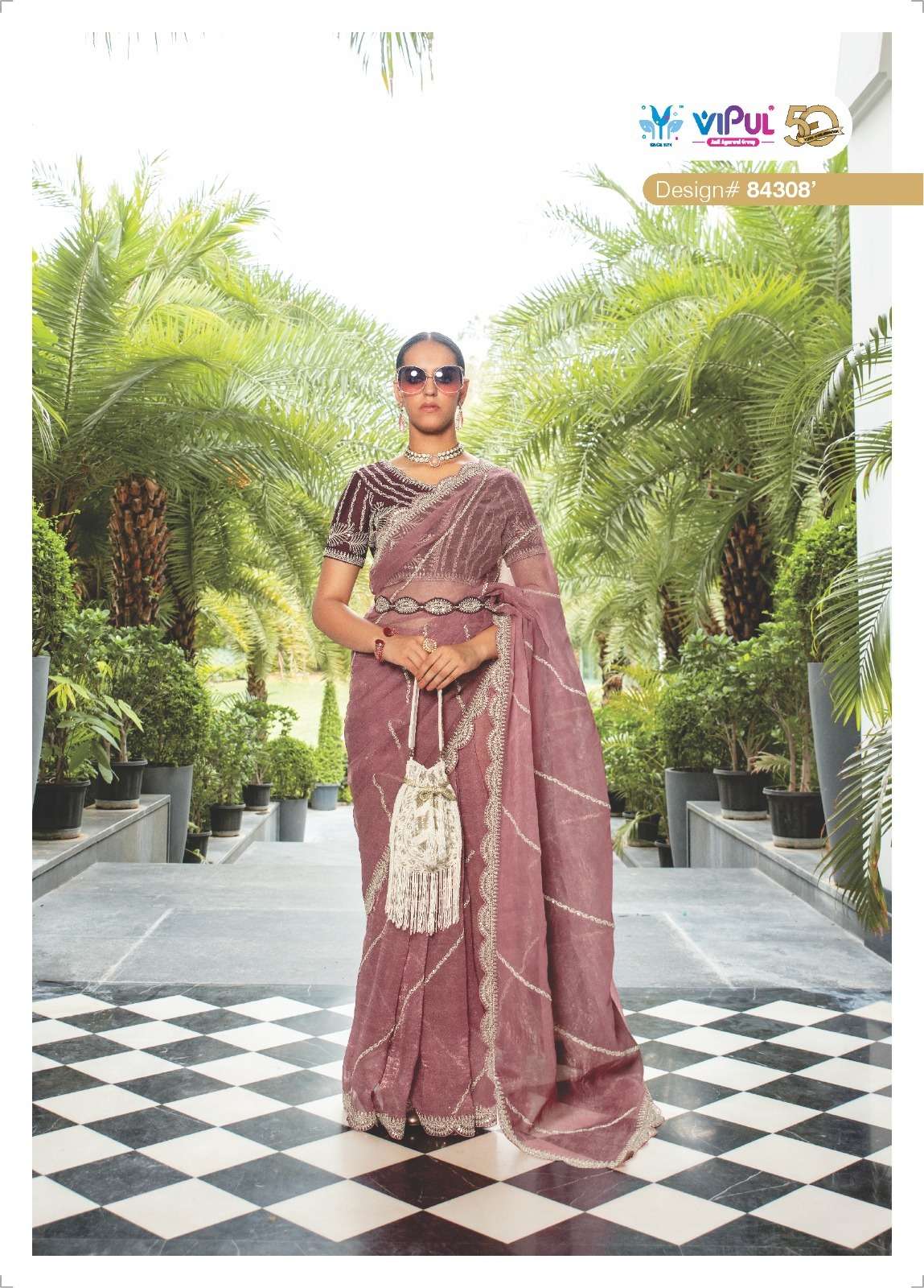 Lehar Series 84303 to 84308 by Vipul Stylish Embroidery Organza Saree creation manufacturer surat