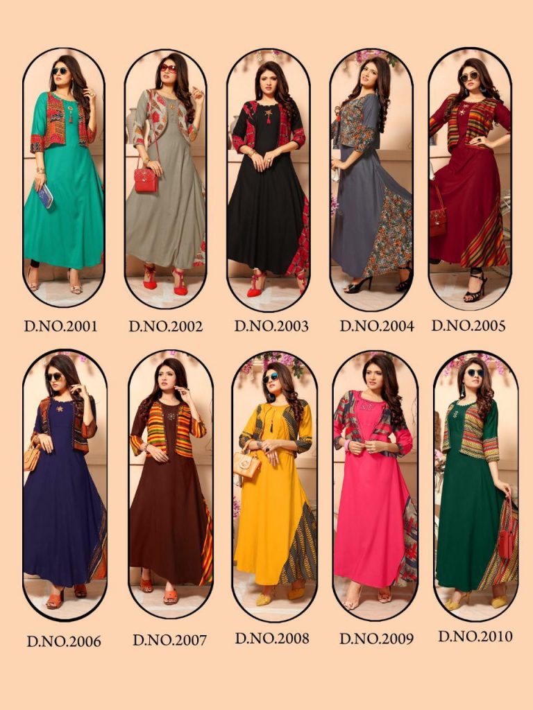*? BLUE HILLS?* by VF (A Venture of Vee Fab India) Catalogue name: *lehanriya vol 2* ?Details ?Pattern: *party wear long kurti with separate jacket* ?Fabrics - KURTI ? *14 KG Rayon ( Hand work on all pieces ) ?Size - *L(40) XL(42) XXL(44) 3xl(46)* ? Length --> *52?* ?Designs- *10pcs* ???????????????????????????????????? 650 per pcs + 5% GST extra . Set To Set . Delivery from today |