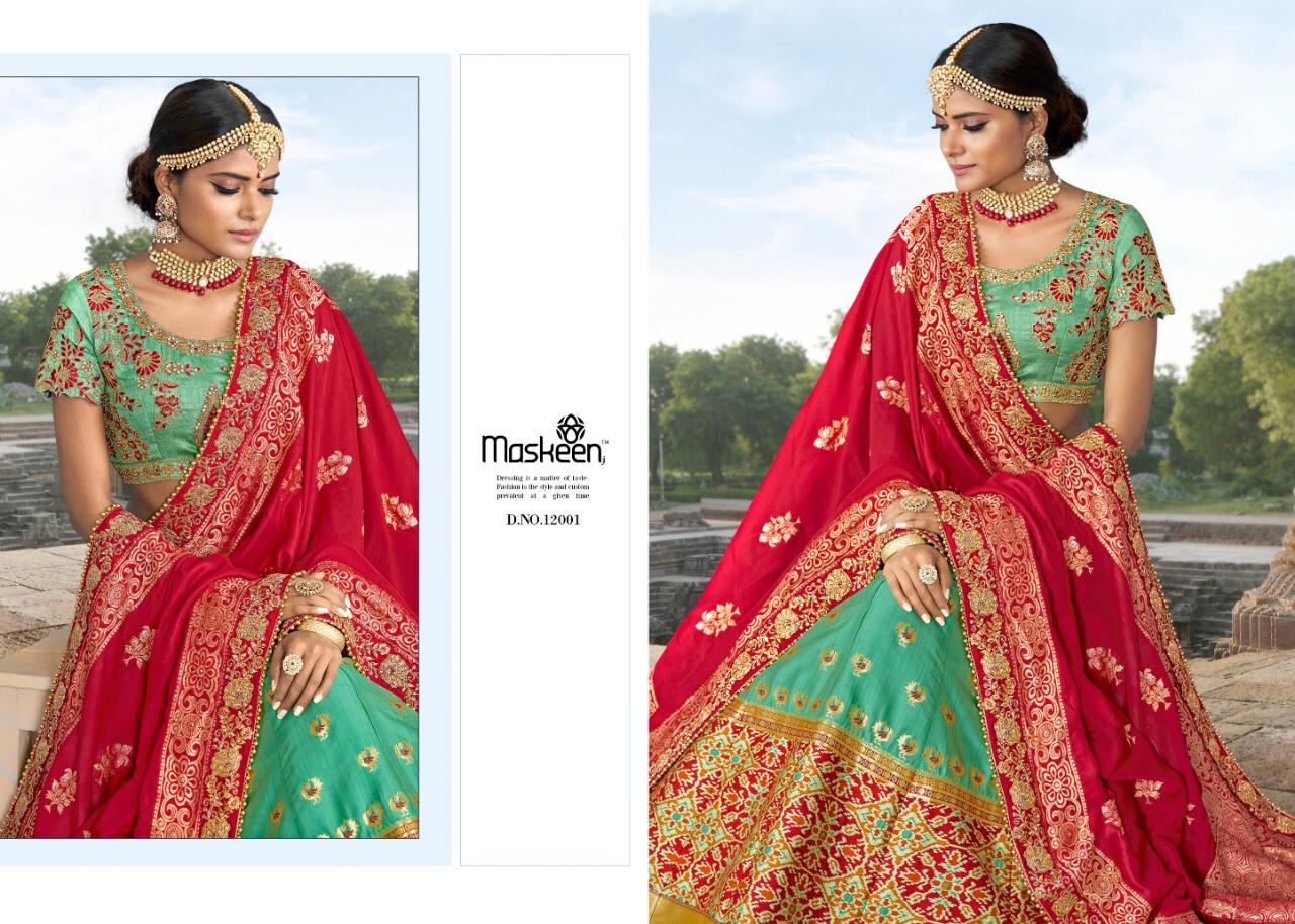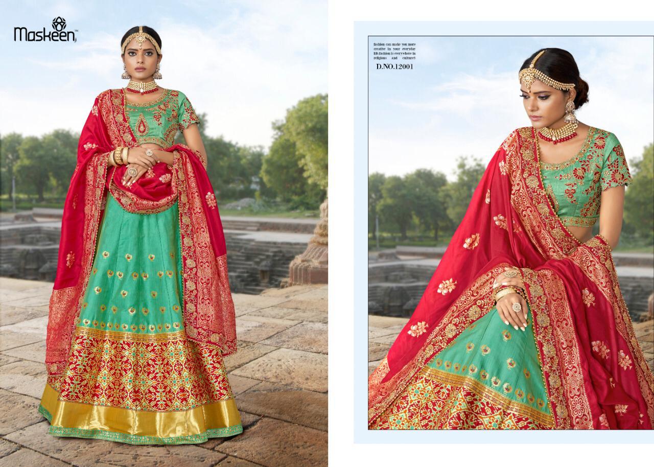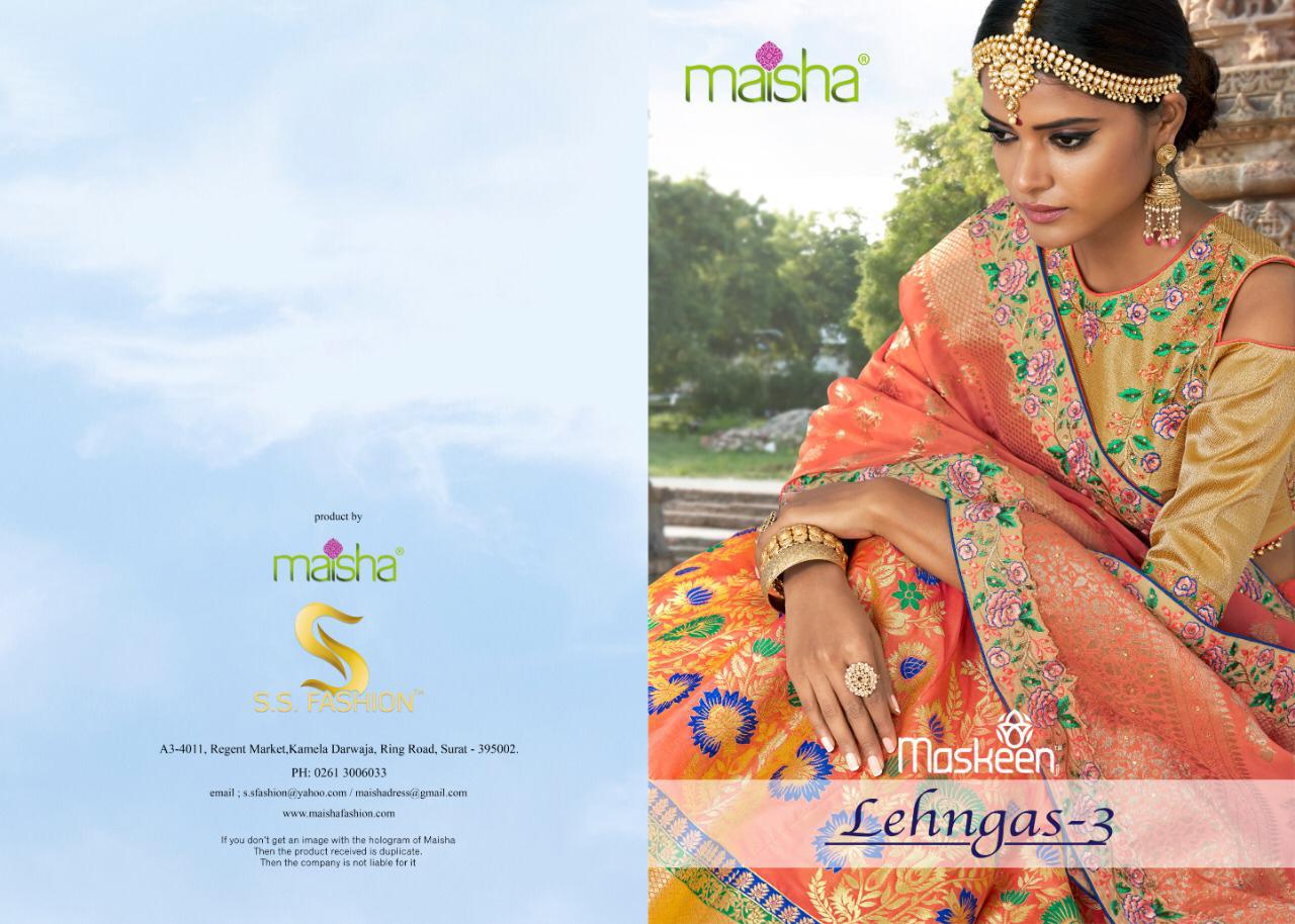 Buy Online Lehnga 3 By Maskeen Series 12001 To 12003 Banarasi Jaquard Heavy Embroiderd Lehngas Wholesale Supplier And Dealer Surat 3 Pcs of Full Catalogue at Wholesale Price. Looking for Lehnga 3 By Maskeen Series 12001 To 12003 Banarasi Jaquard Heavy Embroiderd Lehngas Wholesale Supplier And Dealer Surat Full Catalouge at Best Price? Buy Now Lehnga 3 By Maskeen Series 12001 To 12003 Banarasi Jaquard Heavy Embroiderd Lehngas Wholesale Supplier And Dealer Surat at Wholesale Rate of Rs 13797 with Total 3 Pcs from authroized dealer and supplier of MAISHA Brand. Cost of Each piece is just only Rs 4599 which is very low and affordable price to resale the product in your retail store ,This is Surat based Wholesale Supplier & Dealer of MAISHA Brand. Click on Brand name to Know more about MAISHA Brand's products.Call or Whatsapp on 9898838984 for booking or enquiry