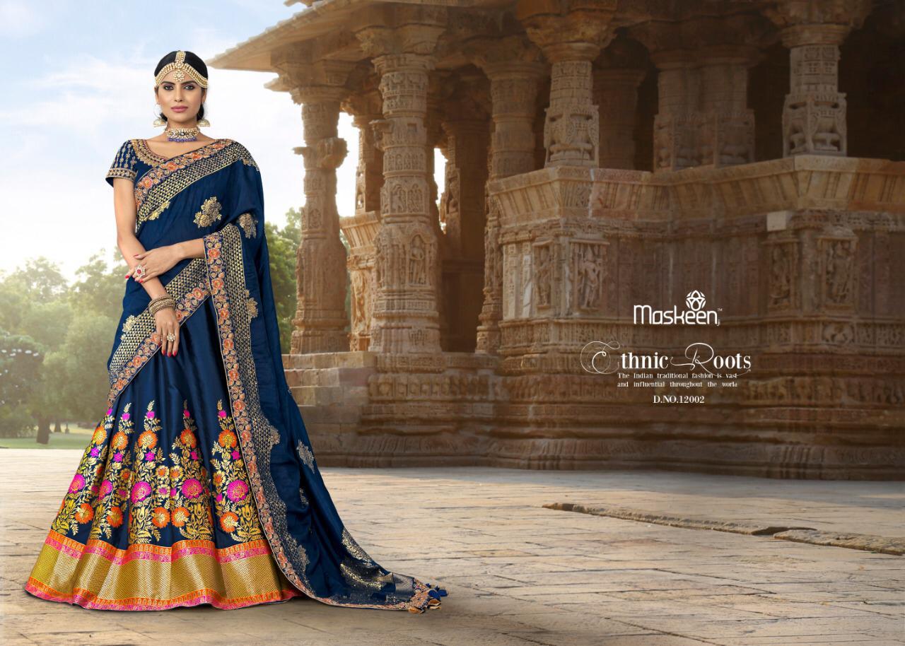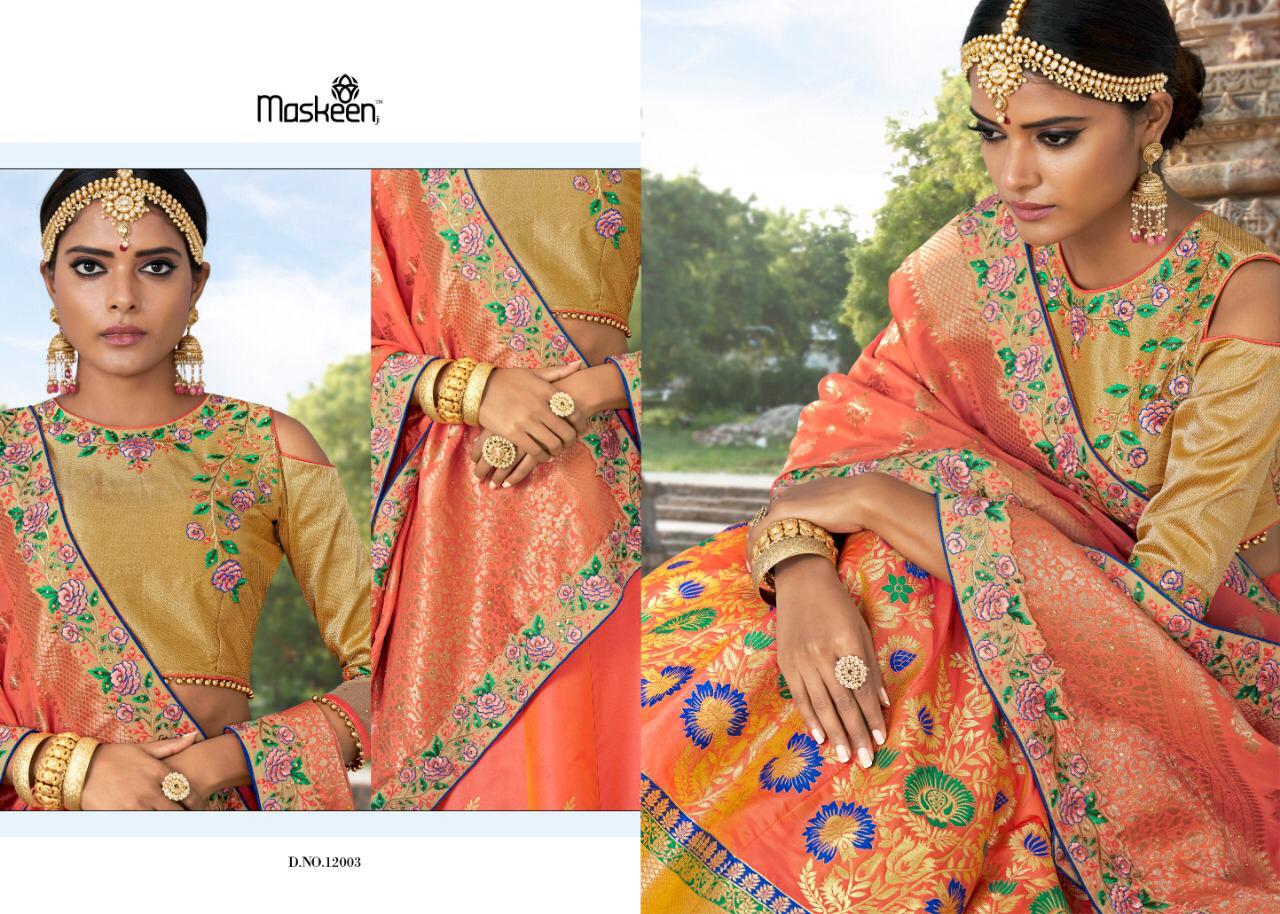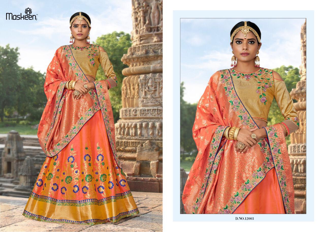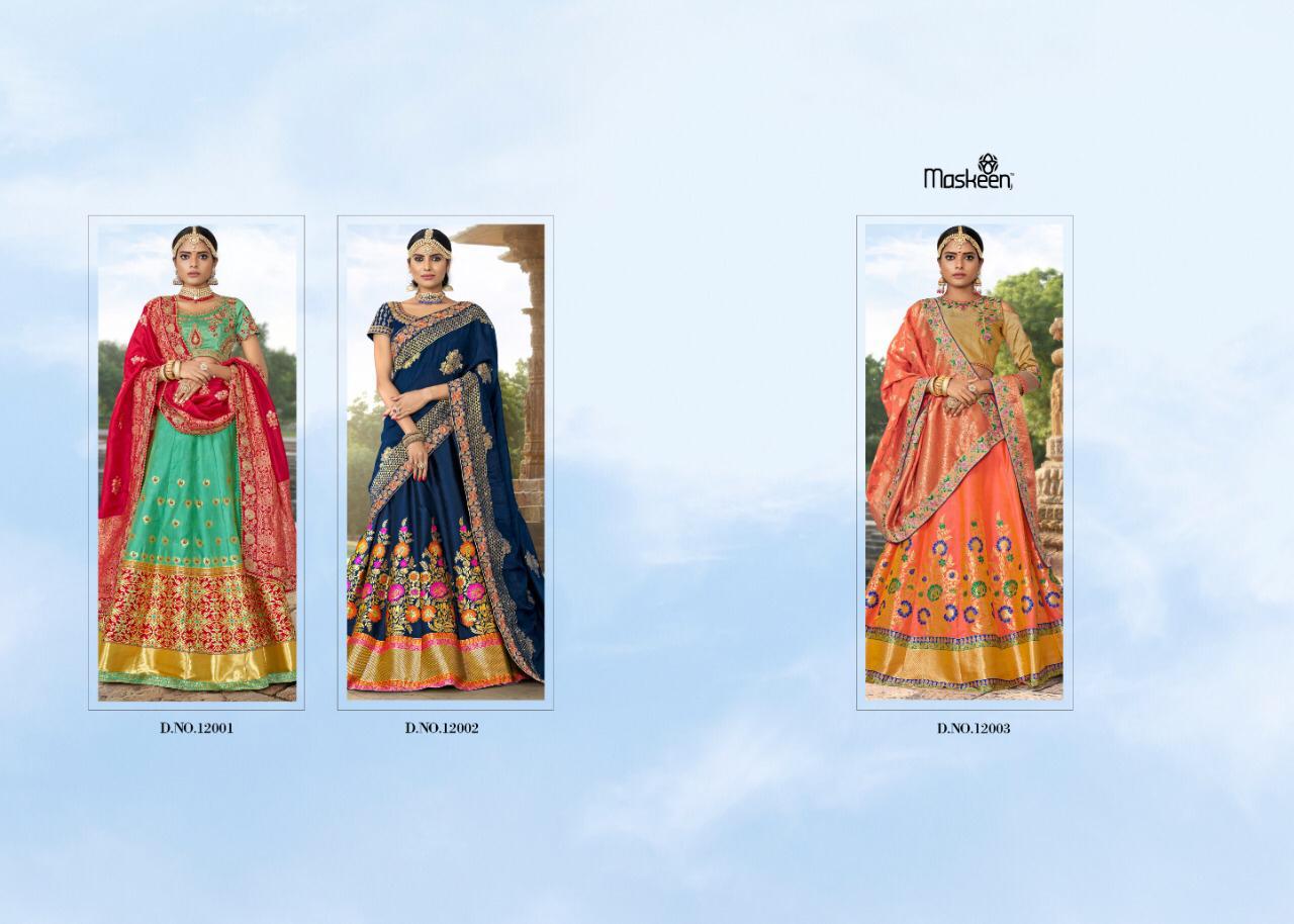 Lehnga 3 By Maskeen Series 12001 To 12003 Banarasi Jaquard Heavy Embroiderd Lehngas Wholesale Supplier And Dealer Surat