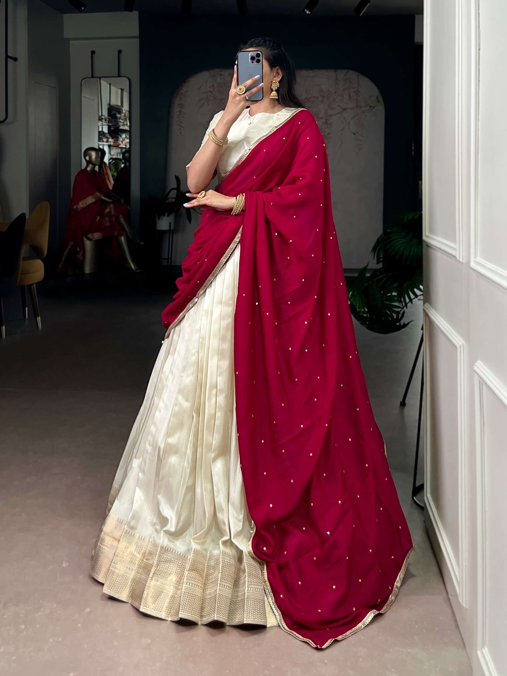 *Dupatta* Dupatta Fabric : Vichitra Silk Dupatta work : Sequins and Thread Embroidery Work With Lace Border Dupatta Length : 2.4 Meter