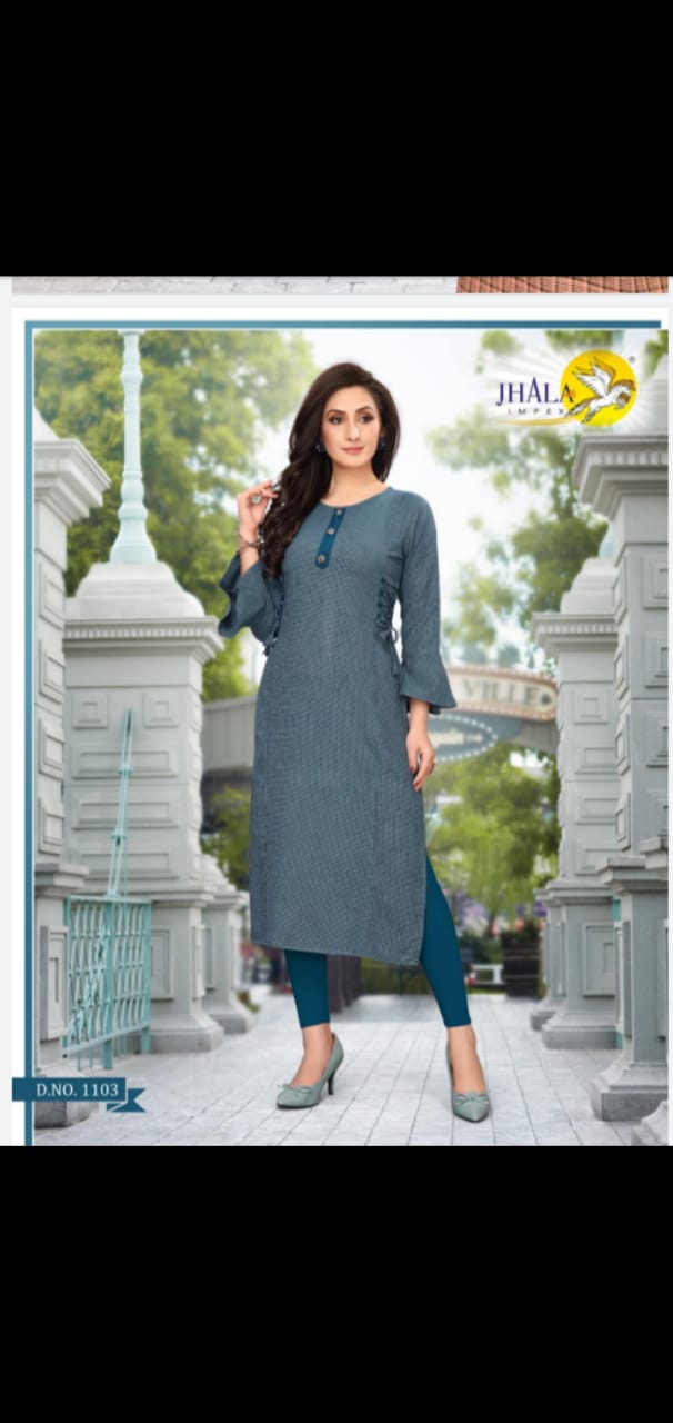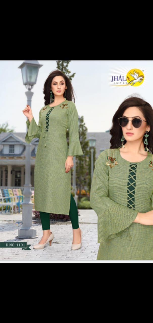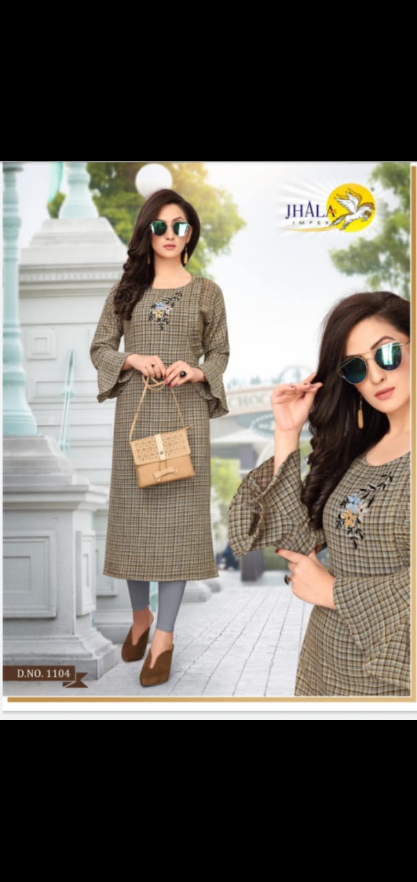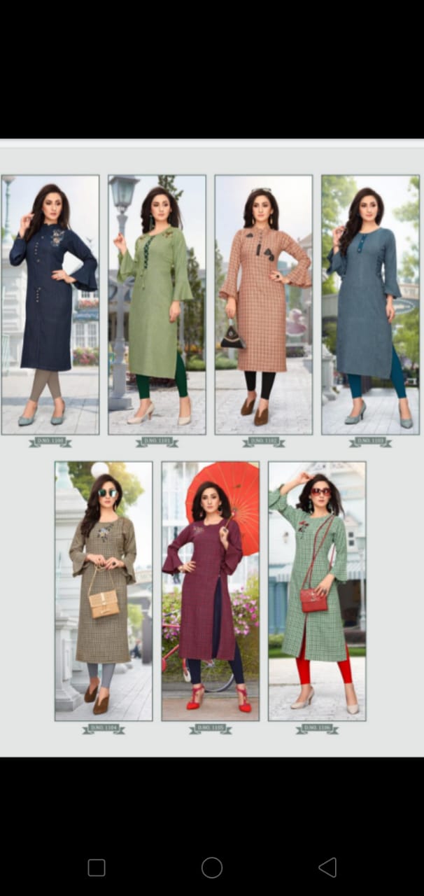 JHALA IMPEX Presents New catalog ?.. LOOKS Type.. Street Long Kurtis side Cut All Ball Sleeves Fabric.Top. Dobi rayon HAVY {Rayon Viewing fabrics} WORK.. hand Thread work S I Z E Â? M, L, XL, XXL, 3XL TOP-L E N G T H Â? 46 Inc D E S I G N S Â? 7 PCS / SET Rate - 450 per Pcs . Set to set . GST 5 Percent Extra. Delivery from today |