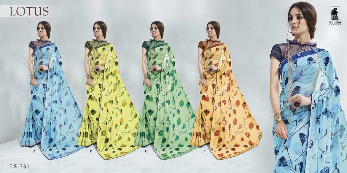 Buy Online Lotus By Sahiba 541 Series Fancy Georgette Printed Saree Catlog Wholesaler Surat 16 Pcs of Full Catalogue at Wholesale Price. Looking for Lotus By Sahiba 541 Series Fancy Georgette Printed Saree Catlog Wholesaler Surat Full Catalouge at Best Price? Buy Now Lotus By Sahiba 541 Series Fancy Georgette Printed Saree Catlog Wholesaler Surat at Wholesale Rate of Rs 0 with Total 16 Pcs from authroized dealer and supplier of SAHIBA Brand. Cost of Each piece is just only Rs 0 which is very low and affordable price to resale the product in your retail store ,This is Surat based Wholesale Supplier & Dealer of SAHIBA Brand. Click on Brand name to Know more about SAHIBA Brand's products.Call or Whatsapp on 9898838984 for booking or enquiry