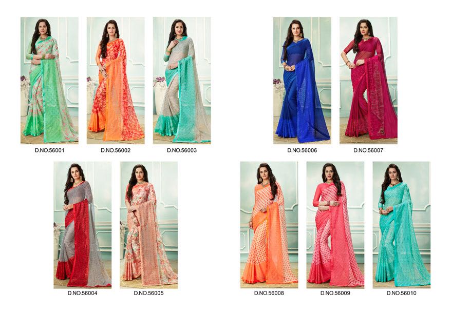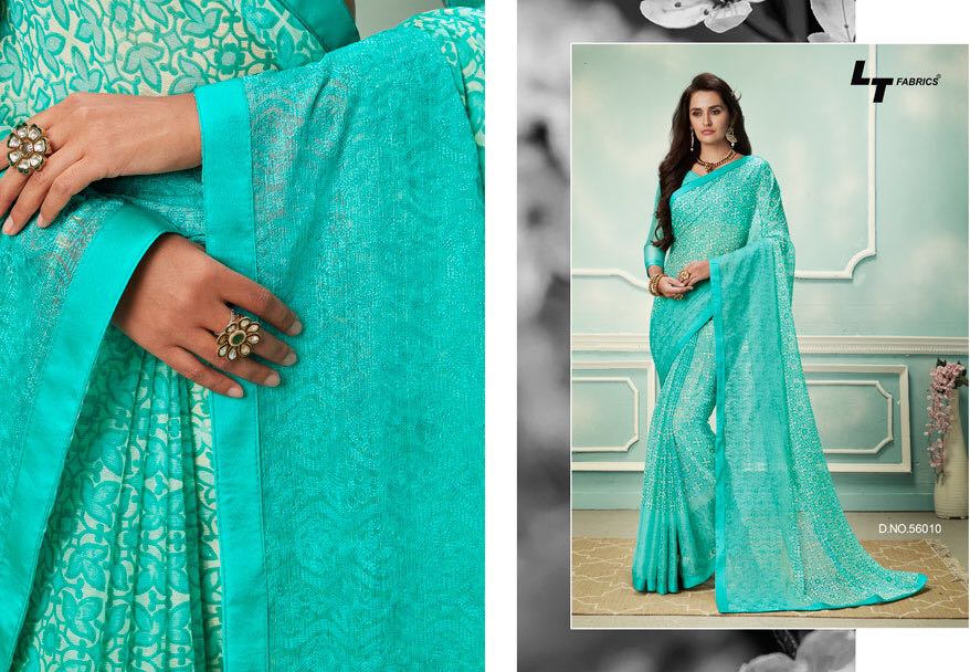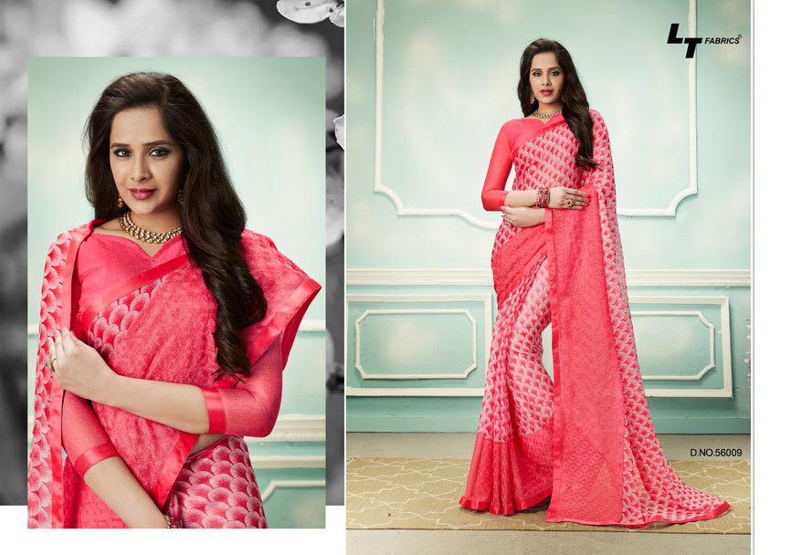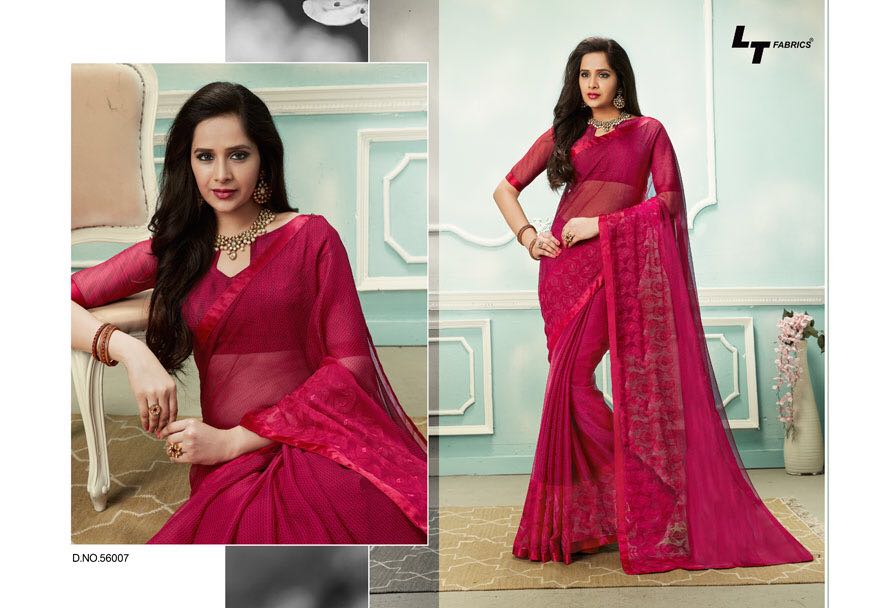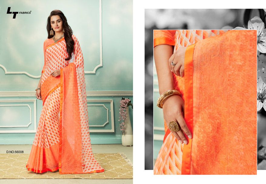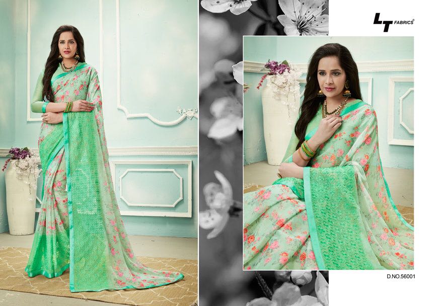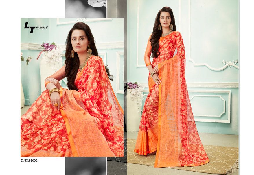 Buy Online Lt Fabrics Tradition 56001 Series Chiffon Printed Saree 10 Pcs of Full Catalogue at Wholesale Price. Looking for Lt Fabrics Tradition 56001 Series Chiffon Printed Saree Full Catalouge at Best Price? Buy Now Lt Fabrics Tradition 56001 Series Chiffon Printed Saree at Wholesale Rate of Rs 7250 with Total 10 Pcs from authroized dealer and supplier of LT FABRICS Brand. Cost of Each piece is just only Rs 725 which is very low and affordable price to resale the product in your retail store ,This is Surat based Wholesale Supplier & Dealer of LT FABRICS Brand. Click on Brand name to Know more about LT FABRICS Brand's products.Call or Whatsapp on 9898838984 for booking or enquiry