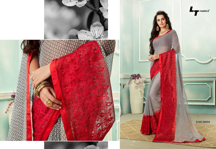 Lt Fabrics Tradition 56001 Series Chiffon Printed Saree