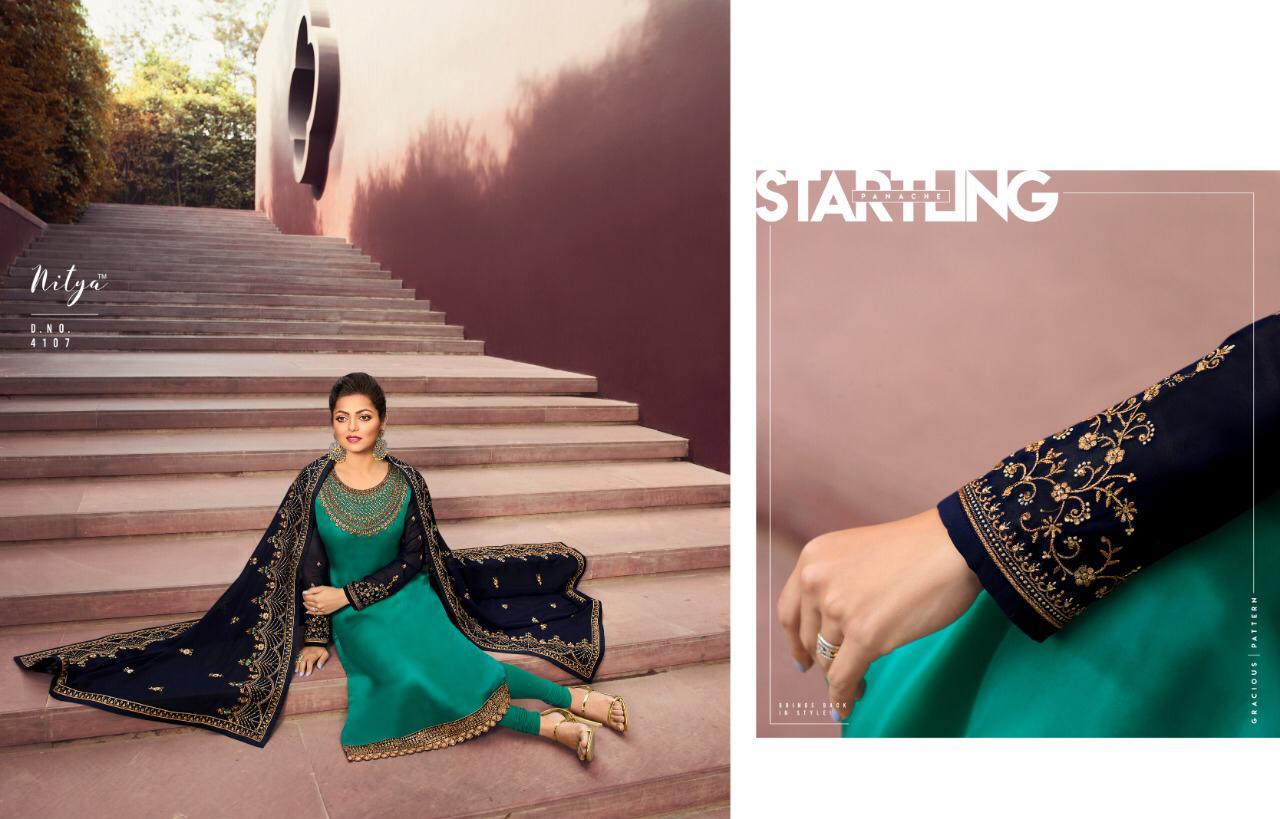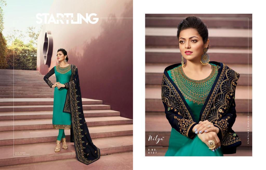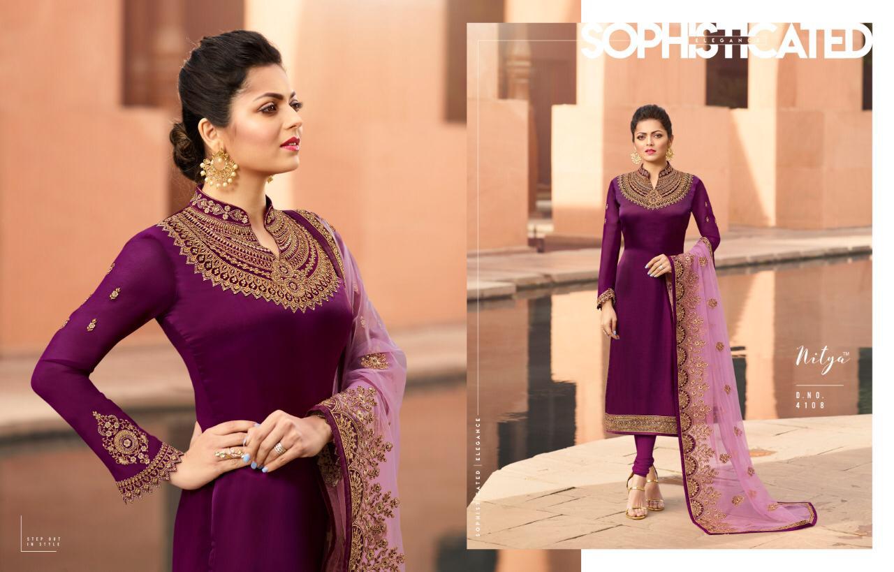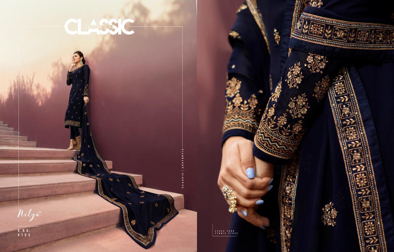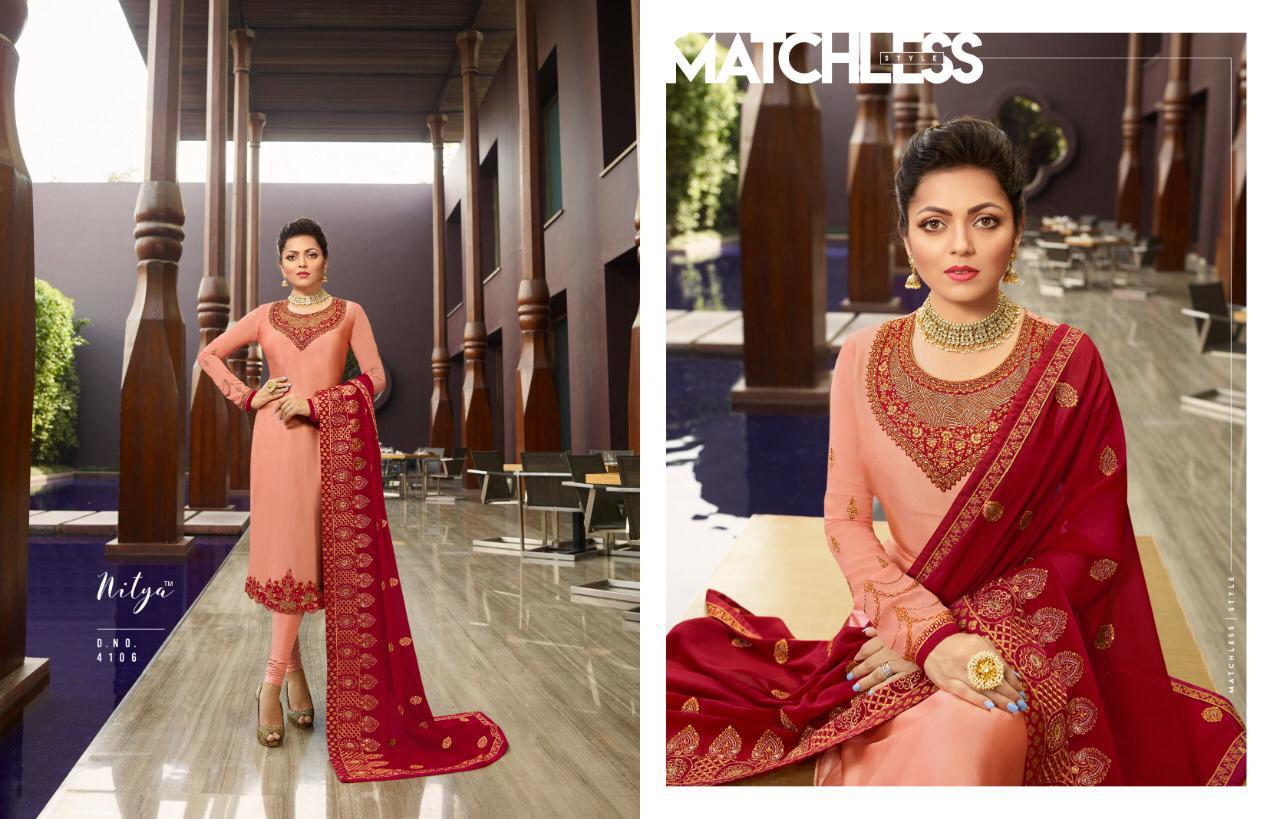 Lt Nitya 141 Series 4101 To 4109 Georgette Embroidered Designer Party Wear Suits Wholesale Supplier Gujarat