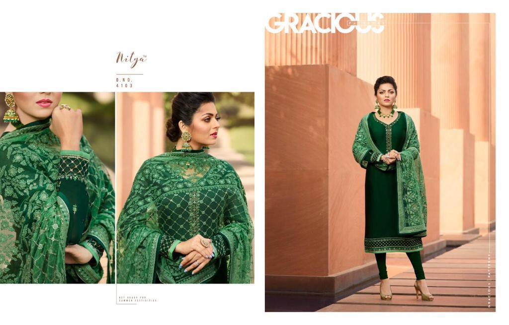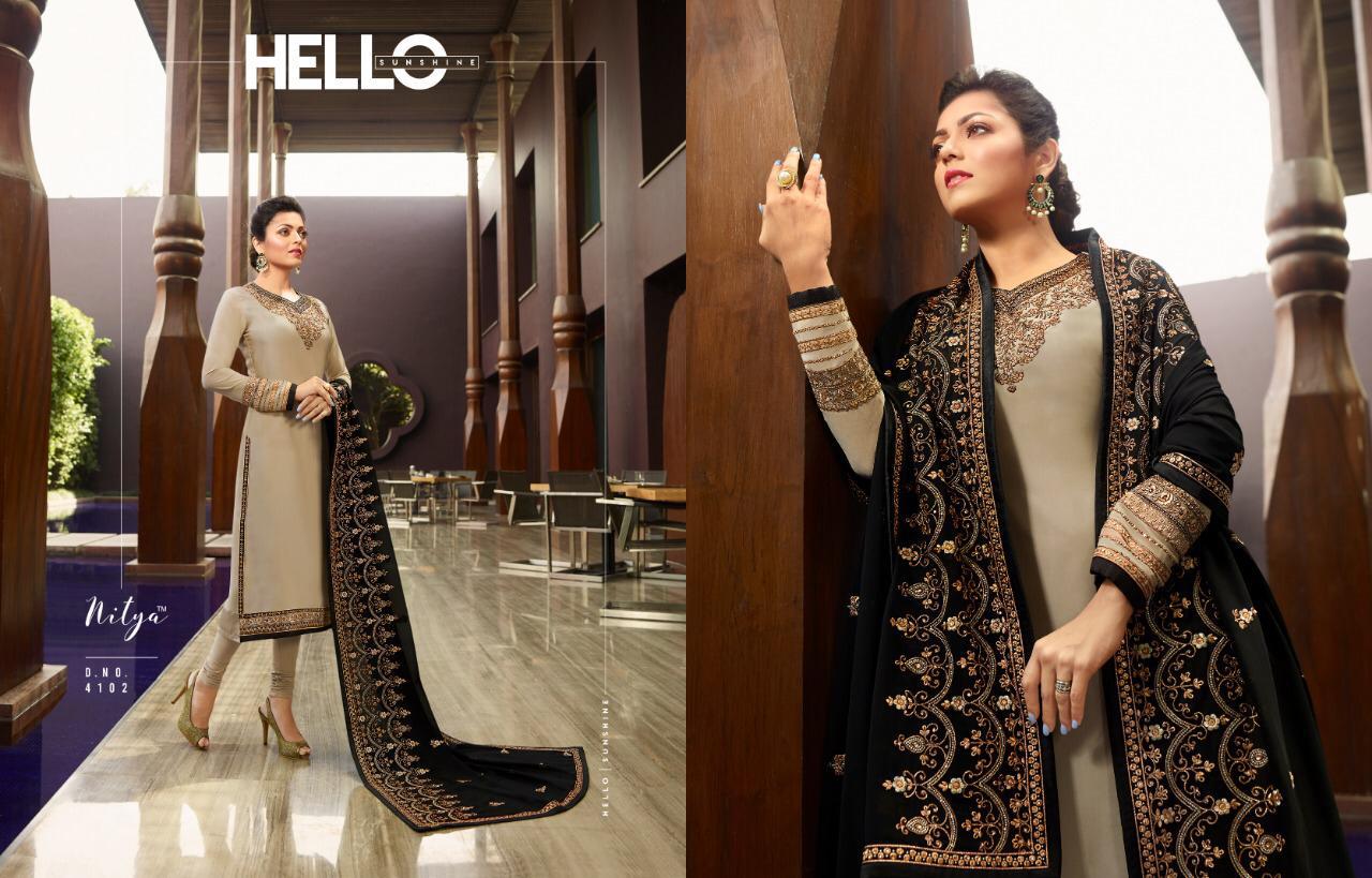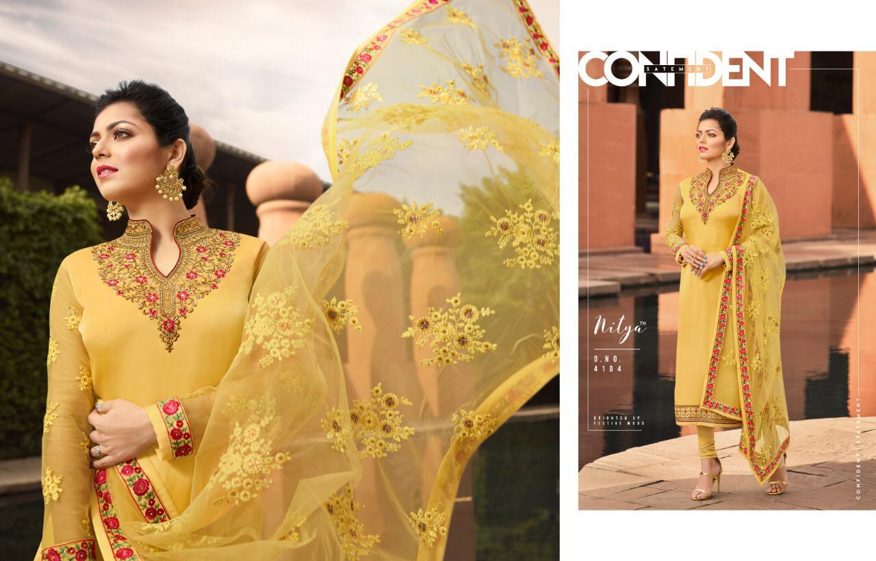 Buy Online Lt Nitya 141 Series 4101 To 4109 Georgette Embroidered Designer Party Wear Suits Wholesale Supplier Gujarat 9 Pcs of Full Catalogue at Wholesale Price. Looking for Lt Nitya 141 Series 4101 To 4109 Georgette Embroidered Designer Party Wear Suits Wholesale Supplier Gujarat Full Catalouge at Best Price? Buy Now Lt Nitya 141 Series 4101 To 4109 Georgette Embroidered Designer Party Wear Suits Wholesale Supplier Gujarat at Wholesale Rate of Rs 16875 with Total 9 Pcs from authroized dealer and supplier of LT FABRICS Brand. Cost of Each piece is just only Rs 1875 which is very low and affordable price to resale the product in your retail store ,This is Surat based Wholesale Supplier & Dealer of LT FABRICS Brand. Click on Brand name to Know more about LT FABRICS Brand's products.Call or Whatsapp on 9898838984 for booking or enquiry
