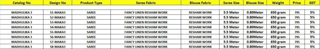 Buy Online Madhulika Vol 3 By Ashika Single And Set Stockiest And Supplier From Surat 8 Pcs of Full Catalogue at Wholesale Price. Looking for Madhulika Vol 3 By Ashika Single And Set Stockiest And Supplier From Surat Full Catalouge at Best Price? Buy Now Madhulika Vol 3 By Ashika Single And Set Stockiest And Supplier From Surat at Wholesale Rate of Rs 6360 with Total 8 Pcs from authroized dealer and supplier of Brand. Cost of Each piece is just only Rs 795 which is very low and affordable price to resale the product in your retail store ,This is Surat based Wholesale Supplier & Dealer of Brand. Click on Brand name to Know more about Brand's products.Call or Whatsapp on 9898838984 for booking or enquiry