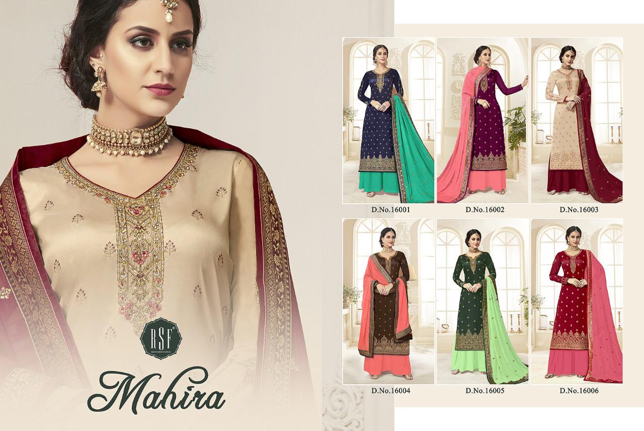 Buy Online Mahira By Rsf Series 16001 To 16006 Designer Party Wear Suits Wholesale Supplier Gujarat 6 Pcs of Full Catalogue at Wholesale Price. Looking for Mahira By Rsf Series 16001 To 16006 Designer Party Wear Suits Wholesale Supplier Gujarat Full Catalouge at Best Price? Buy Now Mahira By Rsf Series 16001 To 16006 Designer Party Wear Suits Wholesale Supplier Gujarat at Wholesale Rate of Rs 7170 with Total 6 Pcs from authroized dealer and supplier of RSF Brand. Cost of Each piece is just only Rs 1195 which is very low and affordable price to resale the product in your retail store ,This is Surat based Wholesale Supplier & Dealer of RSF Brand. Click on Brand name to Know more about RSF Brand's products.Call or Whatsapp on 9898838984 for booking or enquiry