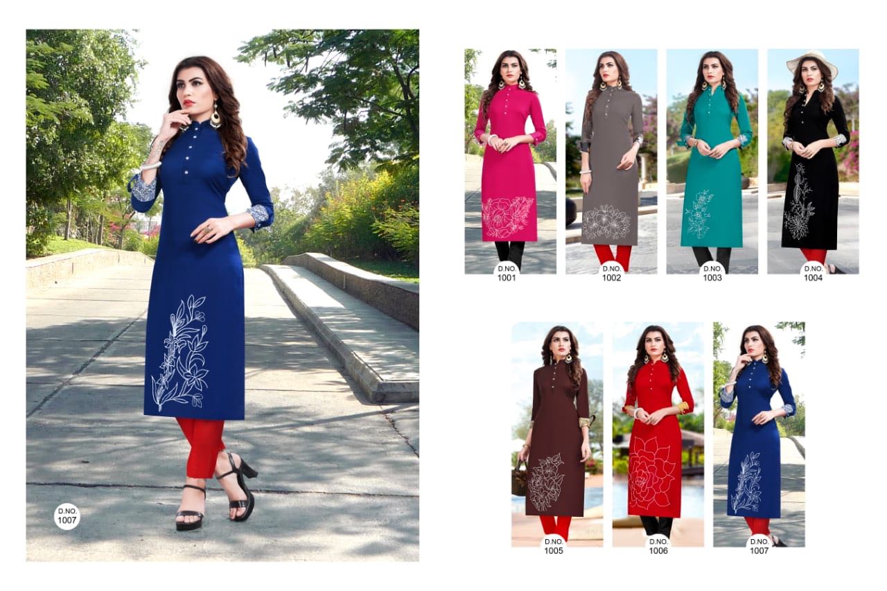Buy Online Mahira By Yazoo Fashion Reyon Designer Kurtis Catalog Wholesalers Nd Trader Surat 7 Pcs of Full Catalogue at Wholesale Price. Looking for Mahira By Yazoo Fashion Reyon Designer Kurtis Catalog Wholesalers Nd Trader Surat Full Catalouge at Best Price? Buy Now Mahira By Yazoo Fashion Reyon Designer Kurtis Catalog Wholesalers Nd Trader Surat at Wholesale Rate of Rs 4025 with Total 7 Pcs from authroized dealer and supplier of Brand. Cost of Each piece is just only Rs 575 which is very low and affordable price to resale the product in your retail store ,This is Surat based Wholesale Supplier & Dealer of Brand. Click on Brand name to Know more about Brand's products.Call or Whatsapp on 9898838984 for booking or enquiry