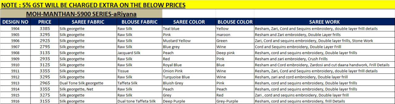 ?? MAHOTSAV GROUP NEW COLLECTION ?? ?? DESIGNER SAREE ?? BRAND - MOH-MANTHAN SERIES - 5900 series FABRIC -Silk georgette * set & loose & singel * Single extra 100 Delivery from tomorrow |