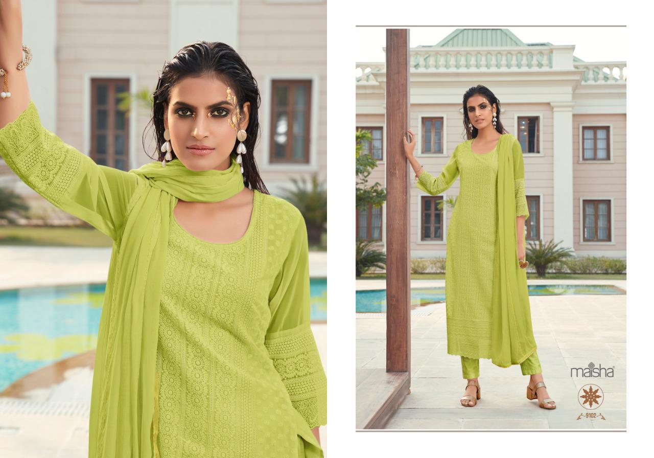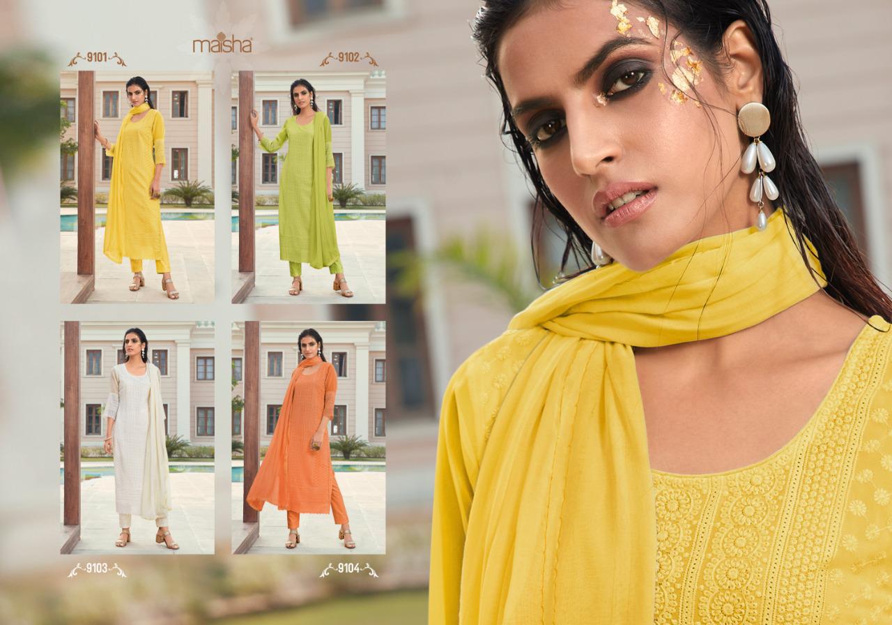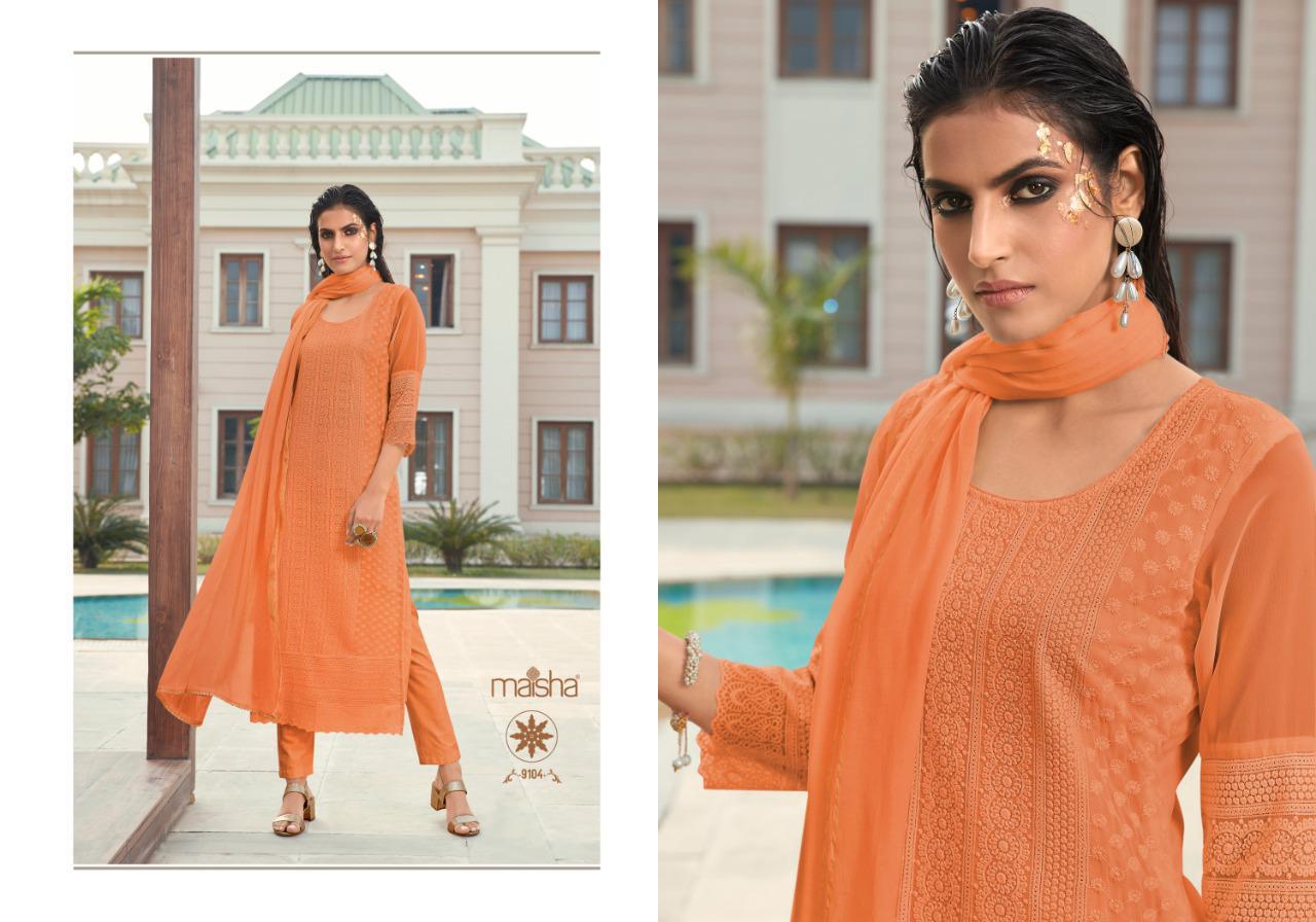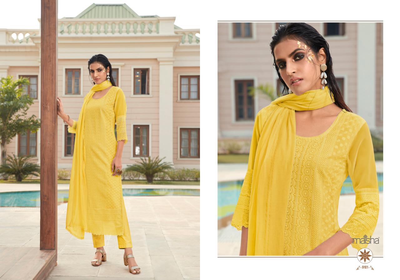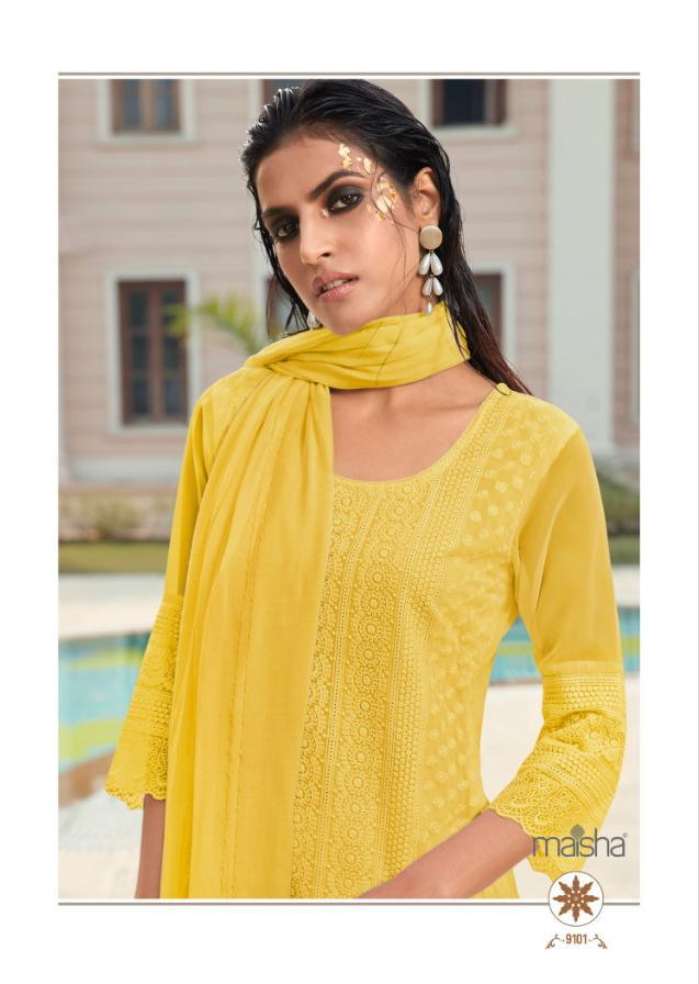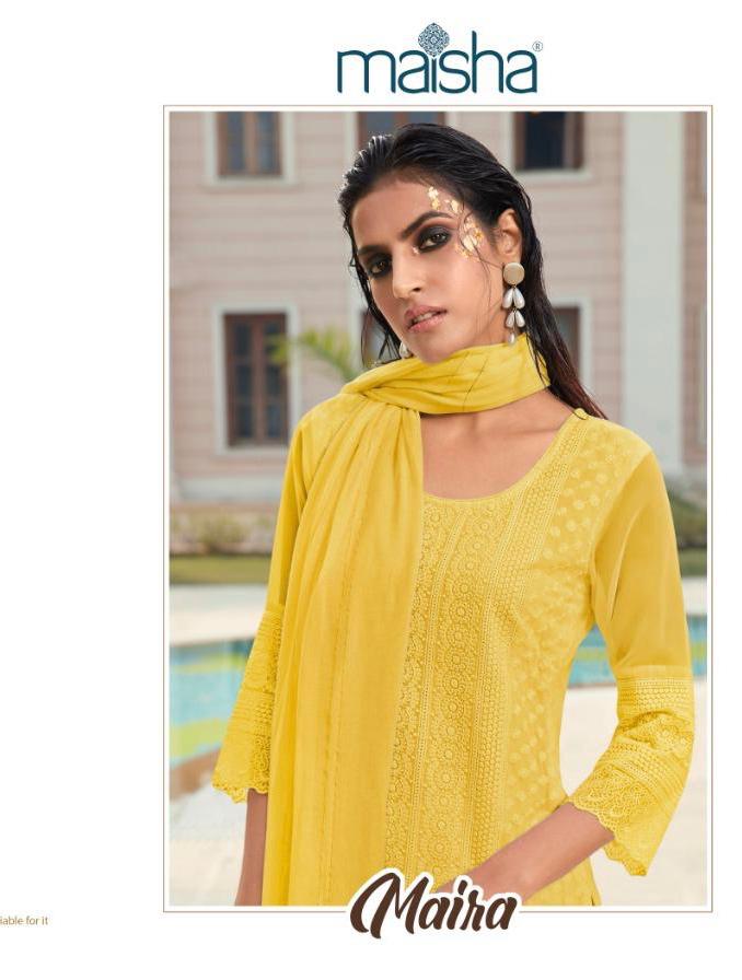 Buy Online Maira By Maisha Luckhnavi Readymade Suits Manufacturer Traders Surat 4 Pcs of Full Catalogue at Wholesale Price. Looking for Maira By Maisha Luckhnavi Readymade Suits Manufacturer Traders Surat Full Catalouge at Best Price? Buy Now Maira By Maisha Luckhnavi Readymade Suits Manufacturer Traders Surat at Wholesale Rate of Rs 5196 with Total 4 Pcs from authroized dealer and supplier of MAISHA Brand. Cost of Each piece is just only Rs 1299 which is very low and affordable price to resale the product in your retail store ,This is Surat based Wholesale Supplier & Dealer of MAISHA Brand. Click on Brand name to Know more about MAISHA Brand's products.Call or Whatsapp on 9898838984 for booking or enquiry