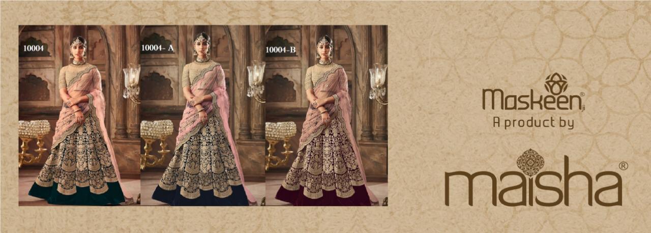 Buy Online Maisha Maskeen 10004 Colours Hit Deaign Designer Lehenga Collection Wholesaler Surat 3 Pcs of Full Catalogue at Wholesale Price. Looking for Maisha Maskeen 10004 Colours Hit Deaign Designer Lehenga Collection Wholesaler Surat Full Catalouge at Best Price? Buy Now Maisha Maskeen 10004 Colours Hit Deaign Designer Lehenga Collection Wholesaler Surat at Wholesale Rate of Rs 16335 with Total 3 Pcs from authroized dealer and supplier of MAISHA Brand. Cost of Each piece is just only Rs 5445 which is very low and affordable price to resale the product in your retail store ,This is Surat based Wholesale Supplier & Dealer of MAISHA Brand. Click on Brand name to Know more about MAISHA Brand's products.Call or Whatsapp on 9898838984 for booking or enquiry