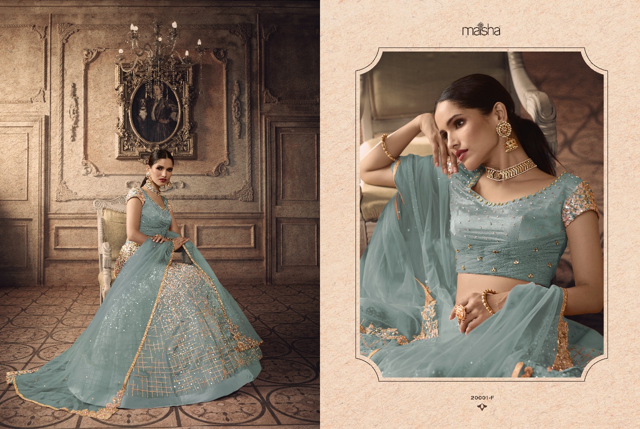Buy Online Maisha Maskeen 20001 Superhit Colors Designer Party Wear Lehngas Set And Single Wholesale Supplier Gujarat 2 Pcs of Full Catalogue at Wholesale Price. Looking for Maisha Maskeen 20001 Superhit Colors Designer Party Wear Lehngas Set And Single Wholesale Supplier Gujarat Full Catalouge at Best Price? Buy Now Maisha Maskeen 20001 Superhit Colors Designer Party Wear Lehngas Set And Single Wholesale Supplier Gujarat at Wholesale Rate of Rs 9230 with Total 2 Pcs from authroized dealer and supplier of MAISHA Brand. Cost of Each piece is just only Rs 4615 which is very low and affordable price to resale the product in your retail store ,This is Surat based Wholesale Supplier & Dealer of MAISHA Brand. Click on Brand name to Know more about MAISHA Brand's products.Call or Whatsapp on 9898838984 for booking or enquiry