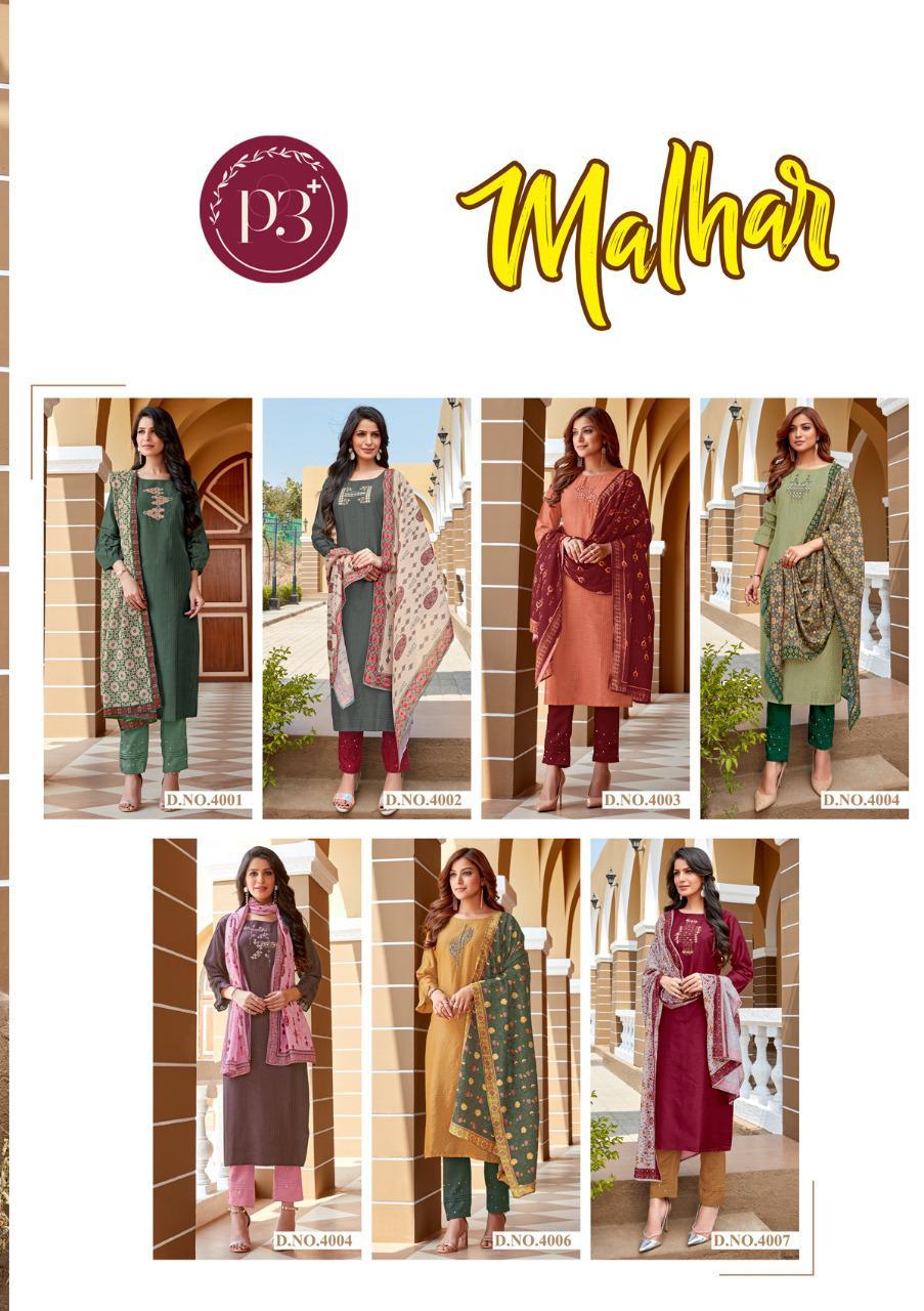 Buy Online Malhar By P3 Wholesaler Supplier From Surat 7 Pcs of Full Catalogue at Wholesale Price. Looking for Malhar By P3 Wholesaler Supplier From Surat Full Catalouge at Best Price? Buy Now Malhar By P3 Wholesaler Supplier From Surat at Wholesale Rate of Rs 6825 with Total 7 Pcs from authroized dealer and supplier of Brand. Cost of Each piece is just only Rs 975 which is very low and affordable price to resale the product in your retail store ,This is Surat based Wholesale Supplier & Dealer of Brand. Click on Brand name to Know more about Brand's products.Call or Whatsapp on 9898838984 for booking or enquiry
