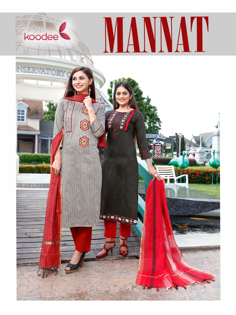 Buy Online Mannat By Koodee Cotton Kurtis With Pant Dupatta Wholesale Supplier Gujarat 4 Pcs of Full Catalogue at Wholesale Price. Looking for Mannat By Koodee Cotton Kurtis With Pant Dupatta Wholesale Supplier Gujarat Full Catalouge at Best Price? Buy Now Mannat By Koodee Cotton Kurtis With Pant Dupatta Wholesale Supplier Gujarat at Wholesale Rate of Rs 3400 with Total 4 Pcs from authroized dealer and supplier of Brand. Cost of Each piece is just only Rs 850 which is very low and affordable price to resale the product in your retail store ,This is Surat based Wholesale Supplier & Dealer of Brand. Click on Brand name to Know more about Brand's products.Call or Whatsapp on 9898838984 for booking or enquiry