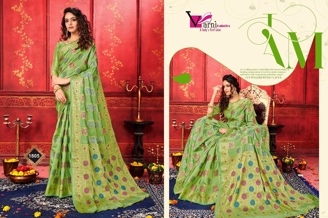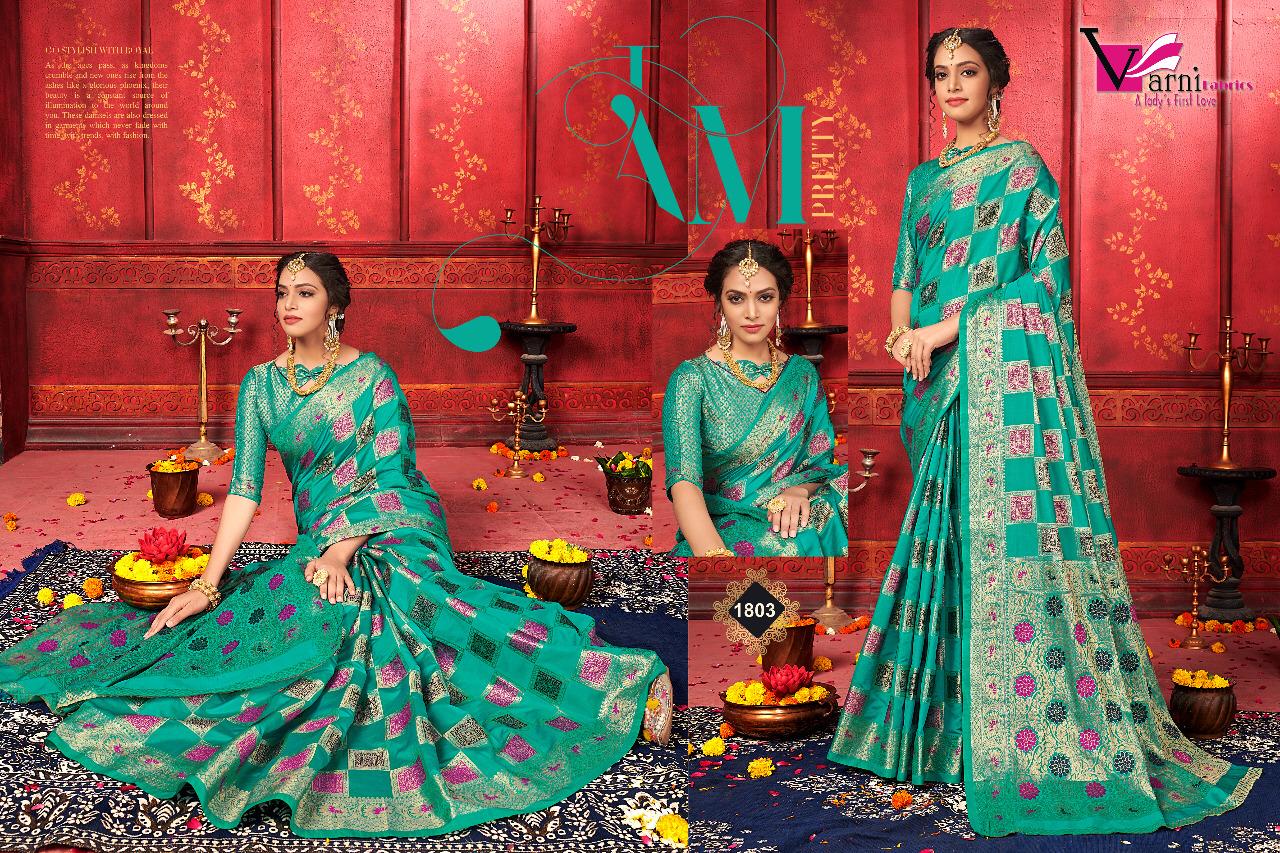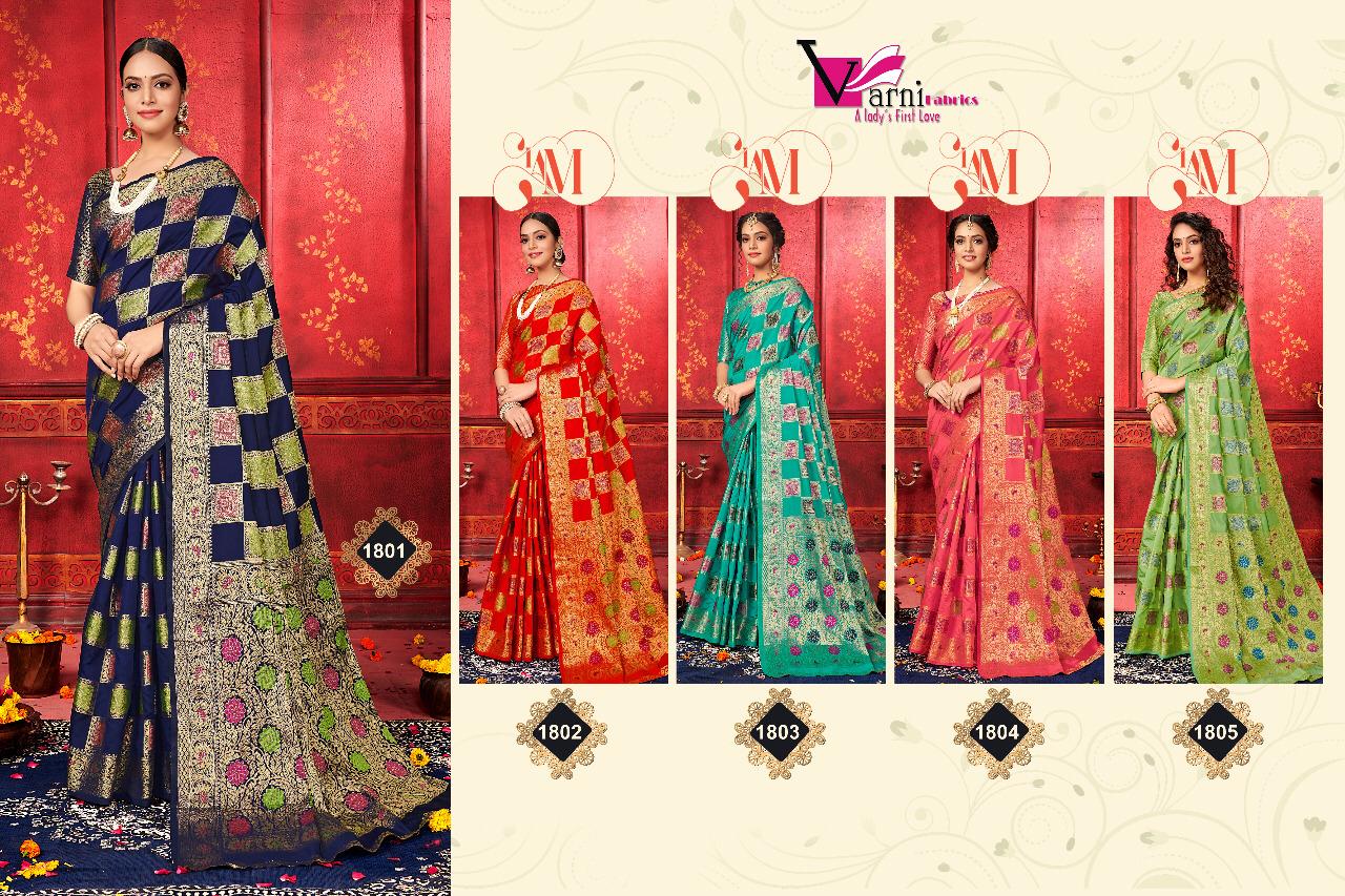 Manyavar Silk By Varni Fabric Series 1801 To 1805 Silk Sarees Set And Single Wholesale Supplier Gujarat