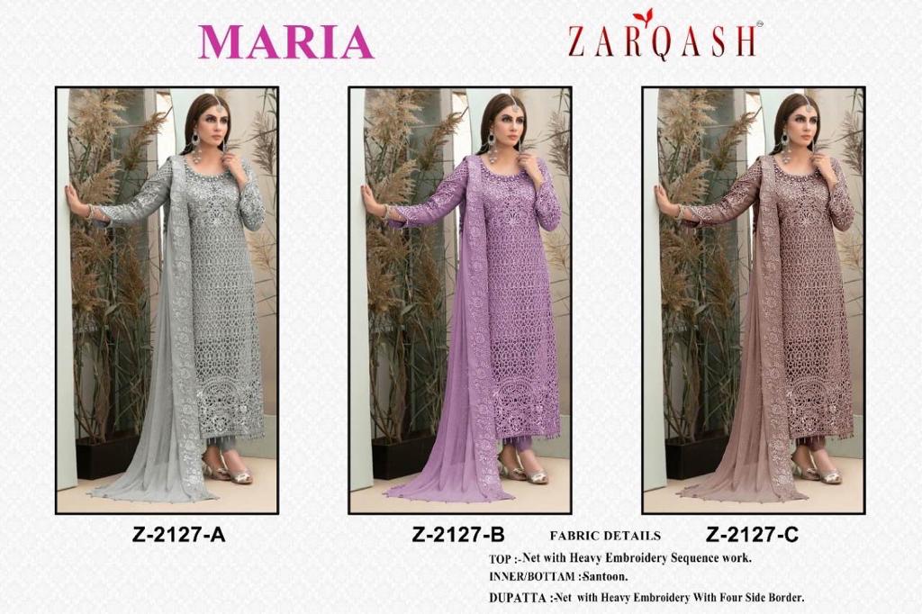 Buy Online Maria Z 2127 By Zarqash Pakistani Collection 3 Pcs of Full Catalogue at Wholesale Price. Looking for Maria Z 2127 By Zarqash Pakistani Collection Full Catalouge at Best Price? Buy Now Maria Z 2127 By Zarqash Pakistani Collection at Wholesale Rate of Rs 3360 with Total 3 Pcs from authroized dealer and supplier of Brand. Cost of Each piece is just only Rs 1120 which is very low and affordable price to resale the product in your retail store ,This is Surat based Wholesale Supplier & Dealer of Brand. Click on Brand name to Know more about Brand's products.Call or Whatsapp on 9898838984 for booking or enquiry
