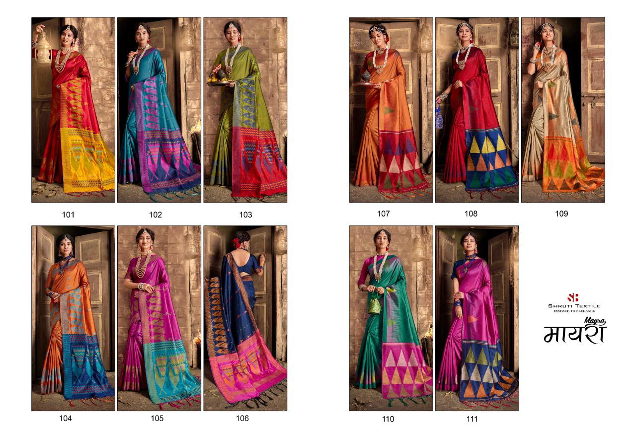 Mayra By Shruti Textile Series 101 To 111 Designer Sarees Wholesale Supplier And Dealer Gujarat