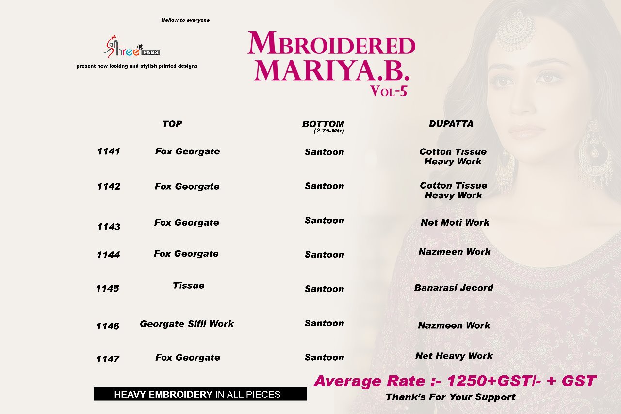 Mbroidered Mariya B vol 5 by Shree fab Georgette designer party wear Pakistani suits Fabric details and price given in image Book ur order fast |