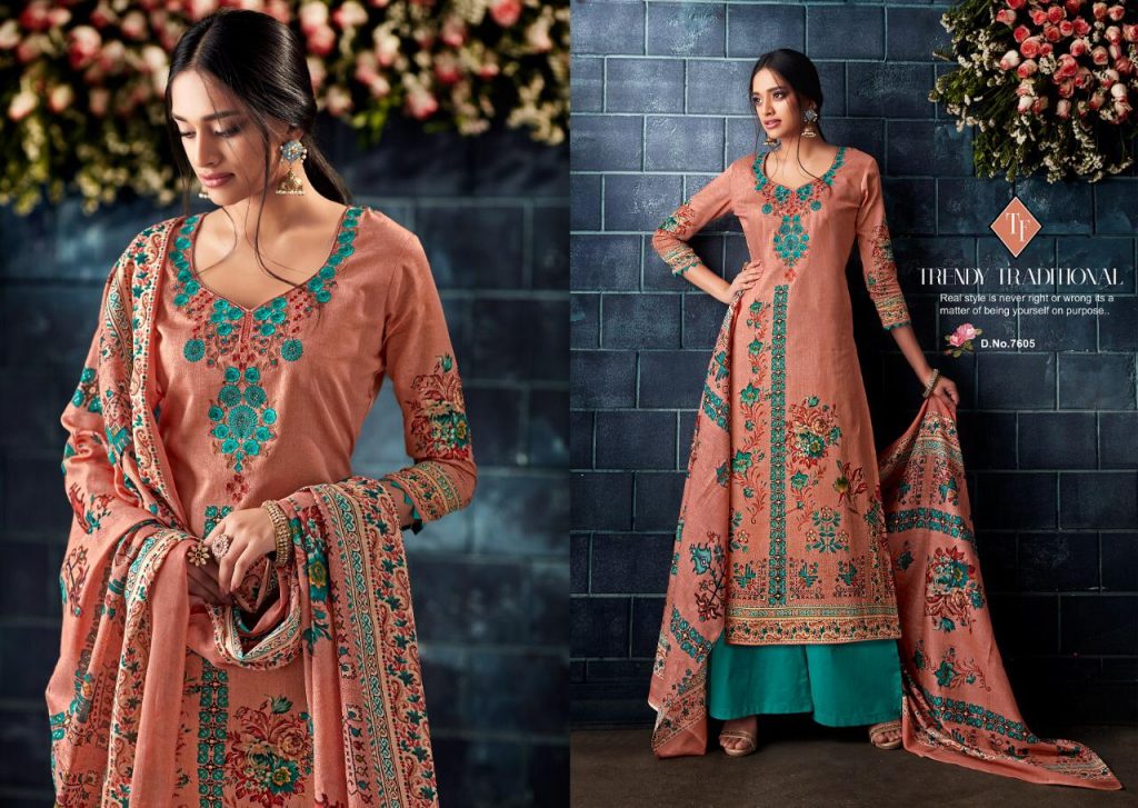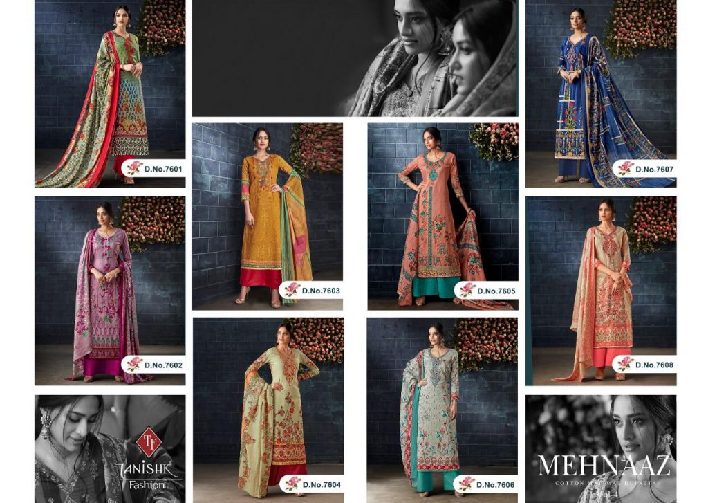 Buy Online Mehnaaz Vol 3 By Tanishk Creation 7601 Series Fancy Glace Cotton Satin Salwar Kameez Wholesaler Surat 8 Pcs of Full Catalogue at Wholesale Price. Looking for Mehnaaz Vol 3 By Tanishk Creation 7601 Series Fancy Glace Cotton Satin Salwar Kameez Wholesaler Surat Full Catalouge at Best Price? Buy Now Mehnaaz Vol 3 By Tanishk Creation 7601 Series Fancy Glace Cotton Satin Salwar Kameez Wholesaler Surat at Wholesale Rate of Rs 5000 with Total 8 Pcs from authroized dealer and supplier of Tanishk fashion Brand. Cost of Each piece is just only Rs 625 which is very low and affordable price to resale the product in your retail store ,This is Surat based Wholesale Supplier & Dealer of Tanishk fashion Brand. Click on Brand name to Know more about Tanishk fashion Brand's products.Call or Whatsapp on 9898838984 for booking or enquiry