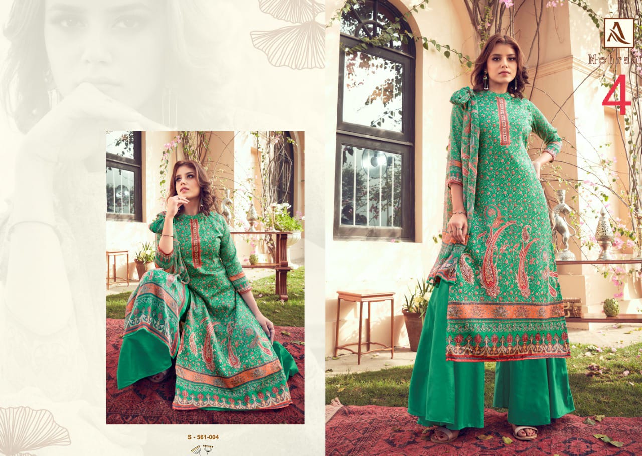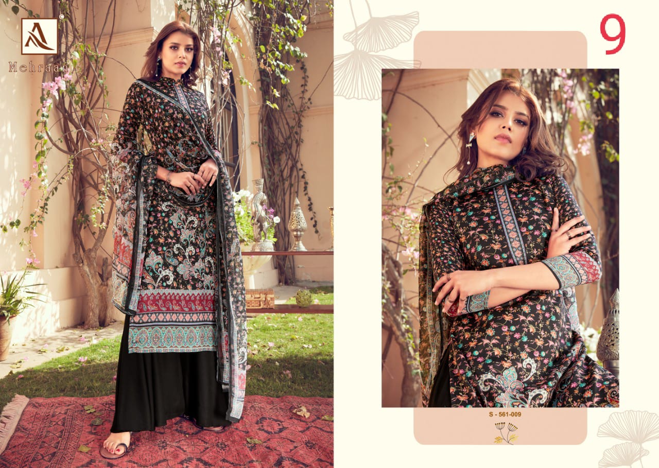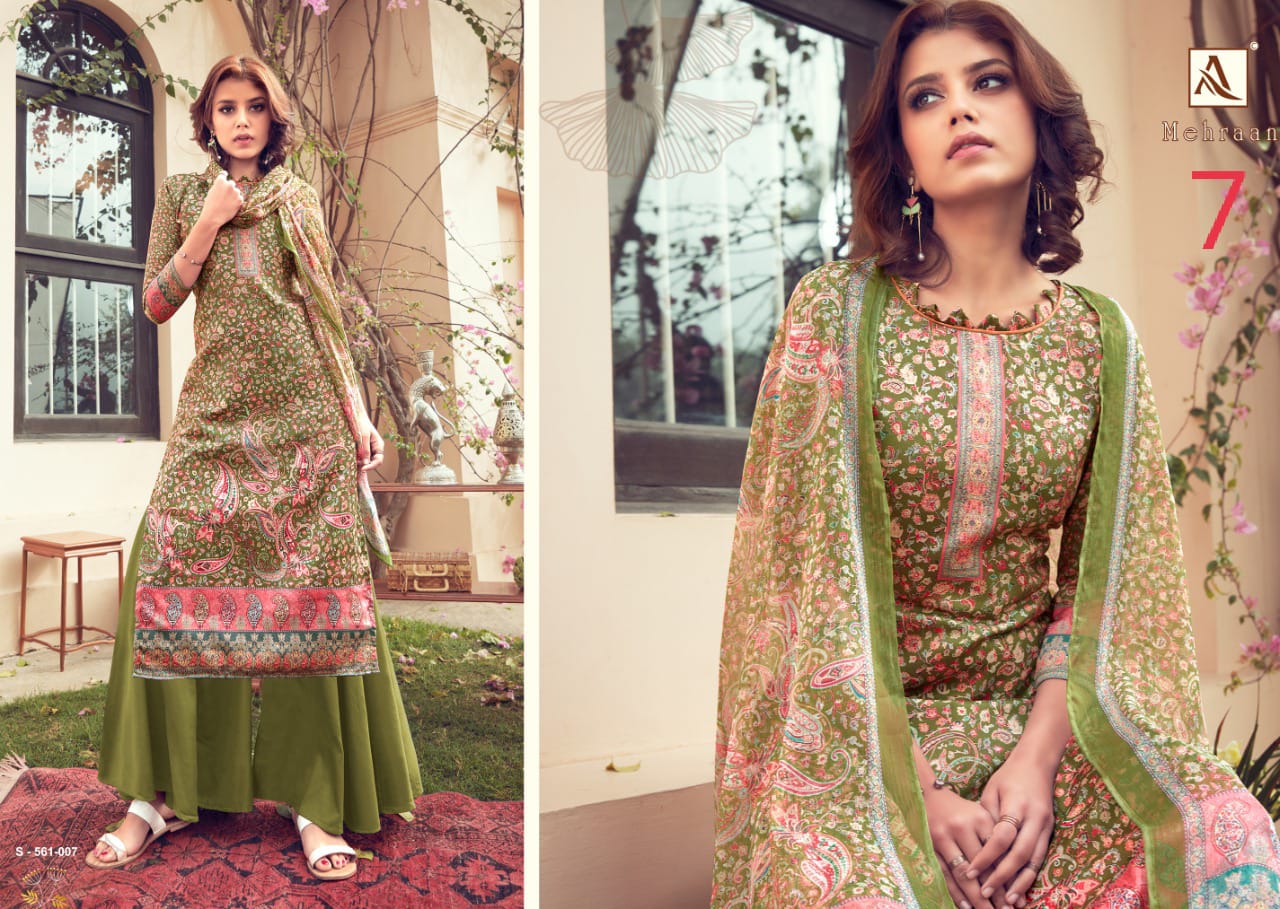 Buy Online Mehraan By Alok Suit Single And Set Stockiest And Supplier From Surat 10 Pcs of Full Catalogue at Wholesale Price. Looking for Mehraan By Alok Suit Single And Set Stockiest And Supplier From Surat Full Catalouge at Best Price? Buy Now Mehraan By Alok Suit Single And Set Stockiest And Supplier From Surat at Wholesale Rate of Rs 6250 with Total 10 Pcs from authroized dealer and supplier of Brand. Cost of Each piece is just only Rs 625 which is very low and affordable price to resale the product in your retail store ,This is Surat based Wholesale Supplier & Dealer of Brand. Click on Brand name to Know more about Brand's products.Call or Whatsapp on 9898838984 for booking or enquiry
