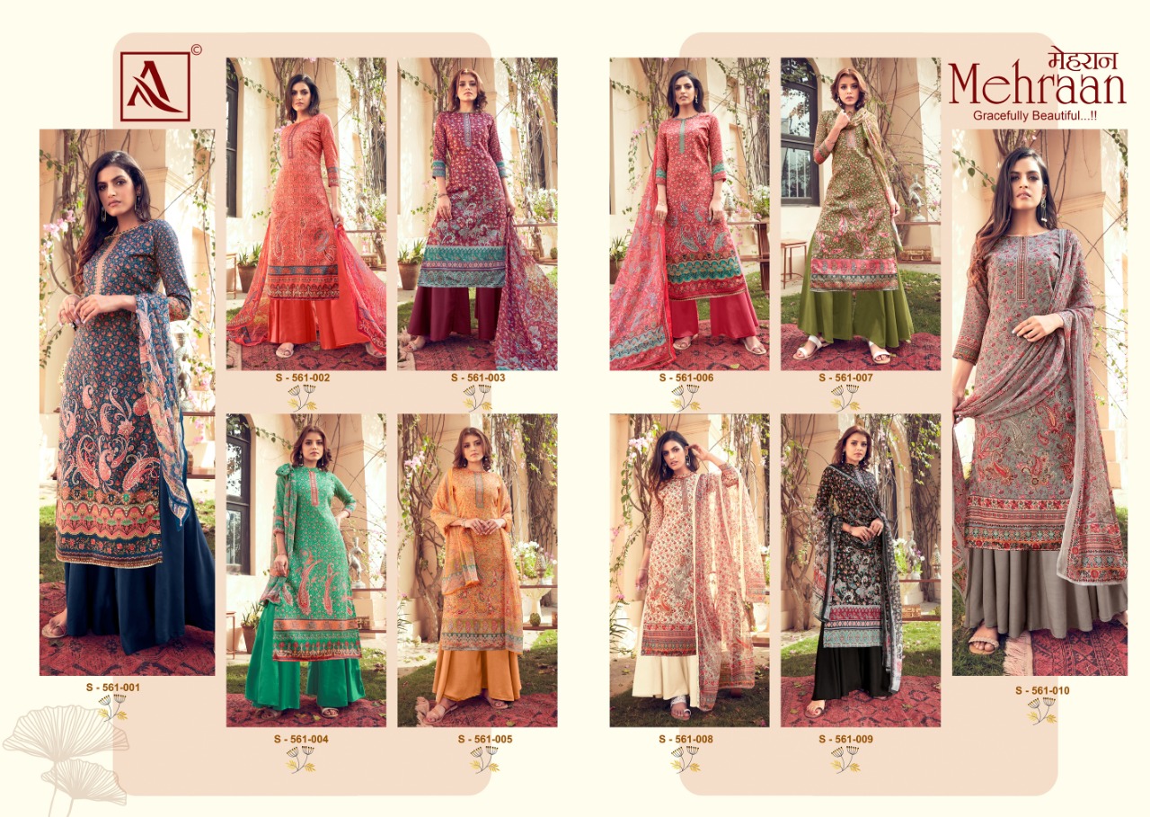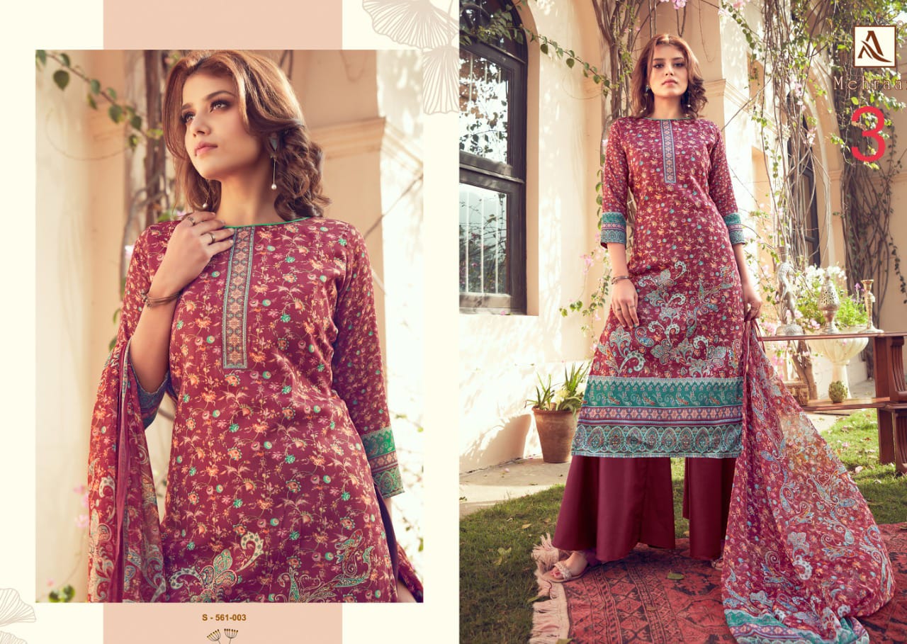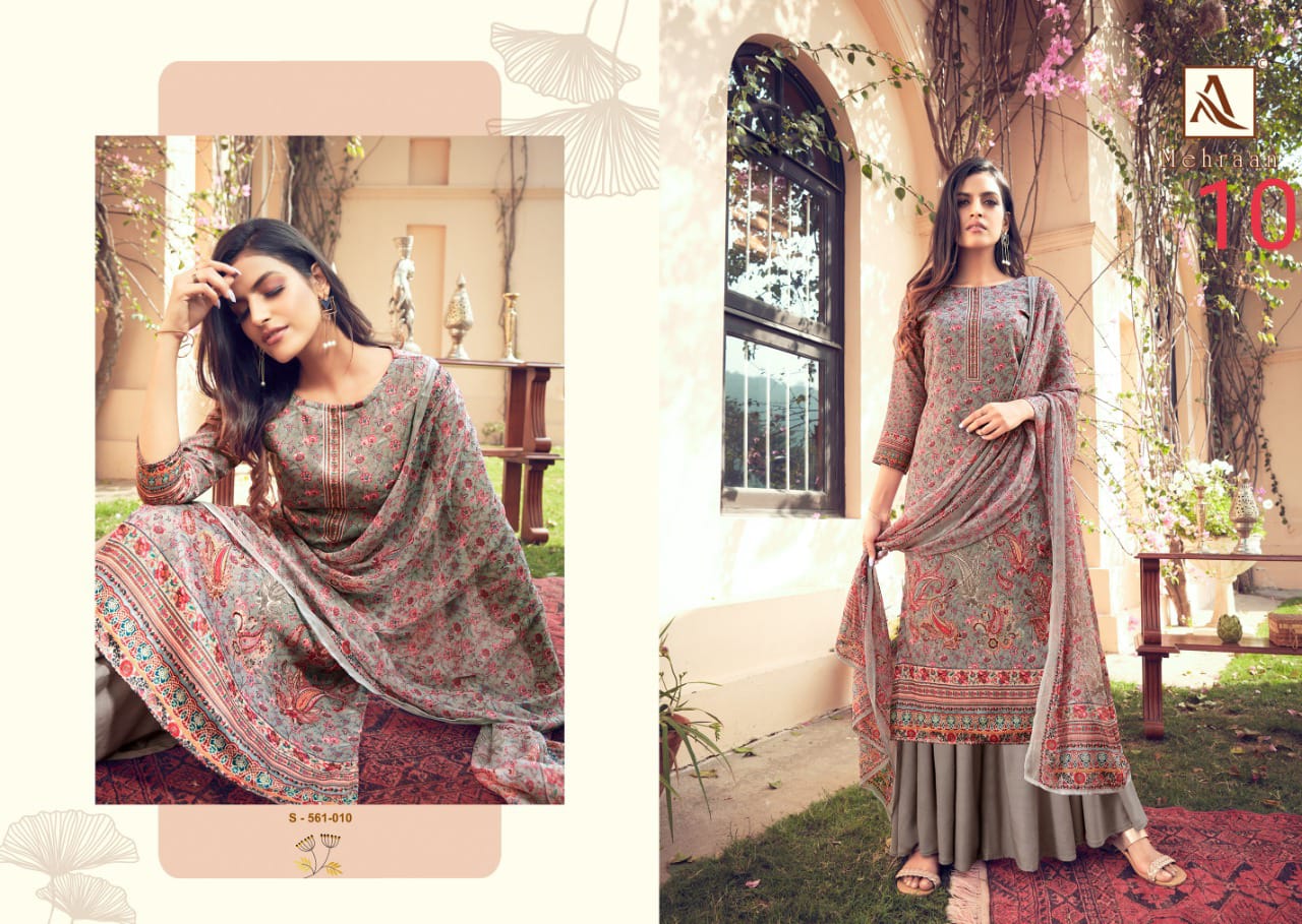 Buy Online Mehraan By Alok Suit Single And Set Stockiest And Supplier From Surat 10 Pcs of Full Catalogue at Wholesale Price. Looking for Mehraan By Alok Suit Single And Set Stockiest And Supplier From Surat Full Catalouge at Best Price? Buy Now Mehraan By Alok Suit Single And Set Stockiest And Supplier From Surat at Wholesale Rate of Rs 6250 with Total 10 Pcs from authroized dealer and supplier of Brand. Cost of Each piece is just only Rs 625 which is very low and affordable price to resale the product in your retail store ,This is Surat based Wholesale Supplier & Dealer of Brand. Click on Brand name to Know more about Brand's products.Call or Whatsapp on 9898838984 for booking or enquiry