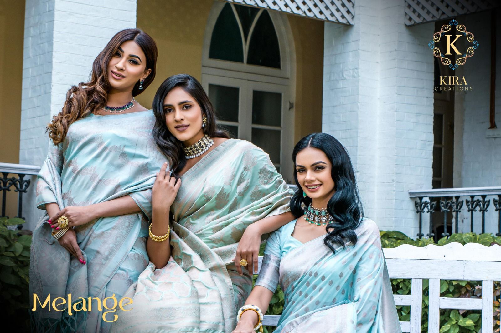 Buy Online Melange Kira Banarasi Silk Saree Collection 6 Pcs of Full Catalogue at Wholesale Price. Looking for Melange Kira Banarasi Silk Saree Collection Full Catalouge at Best Price? Buy Now Melange Kira Banarasi Silk Saree Collection at Wholesale Rate of Rs 11970 with Total 6 Pcs from authroized dealer and supplier of Brand. Cost of Each piece is just only Rs 1995 which is very low and affordable price to resale the product in your retail store ,This is Surat based Wholesale Supplier & Dealer of Brand. Click on Brand name to Know more about Brand's products.Call or Whatsapp on 9898838984 for booking or enquiry