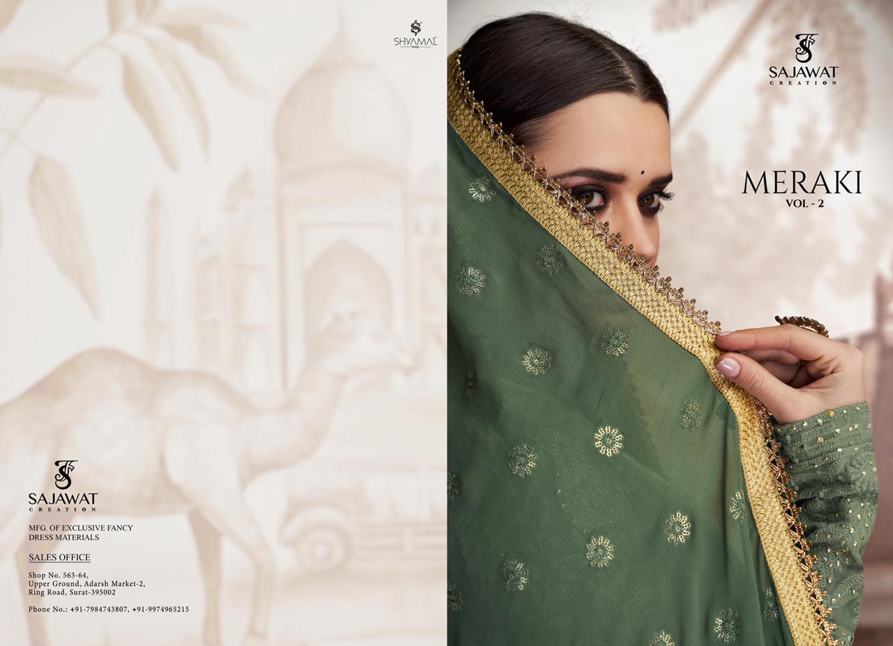 Buy Online Meraki 2 By Sajawat Creation Series 2001 To 2005 Designer Party Wear Suits Wholesale Supplier Gujarat 5 Pcs of Full Catalogue at Wholesale Price. Looking for Meraki 2 By Sajawat Creation Series 2001 To 2005 Designer Party Wear Suits Wholesale Supplier Gujarat Full Catalouge at Best Price? Buy Now Meraki 2 By Sajawat Creation Series 2001 To 2005 Designer Party Wear Suits Wholesale Supplier Gujarat at Wholesale Rate of Rs 11975 with Total 5 Pcs from authroized dealer and supplier of SAJAWAT Brand. Cost of Each piece is just only Rs 2395 which is very low and affordable price to resale the product in your retail store ,This is Surat based Wholesale Supplier & Dealer of SAJAWAT Brand. Click on Brand name to Know more about SAJAWAT Brand's products.Call or Whatsapp on 9898838984 for booking or enquiry