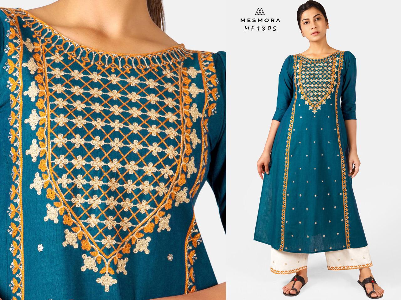 Buy Online Mesmora Designer Kurtis With Bottom Wholesale Supplier And Dealer Surat 8 Pcs of Full Catalogue at Wholesale Price. Looking for Mesmora Designer Kurtis With Bottom Wholesale Supplier And Dealer Surat Full Catalouge at Best Price? Buy Now Mesmora Designer Kurtis With Bottom Wholesale Supplier And Dealer Surat at Wholesale Rate of Rs 9592 with Total 8 Pcs from authroized dealer and supplier of Brand. Cost of Each piece is just only Rs 1199 which is very low and affordable price to resale the product in your retail store ,This is Surat based Wholesale Supplier & Dealer of Brand. Click on Brand name to Know more about Brand's products.Call or Whatsapp on 9898838984 for booking or enquiry