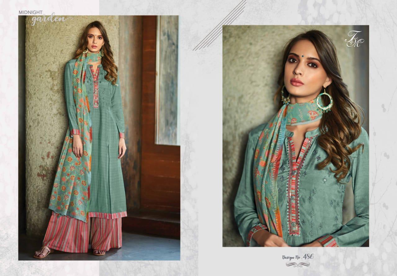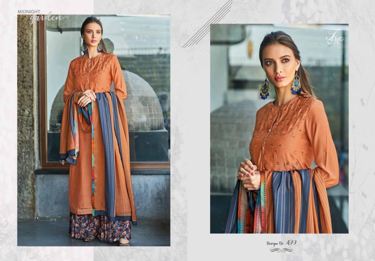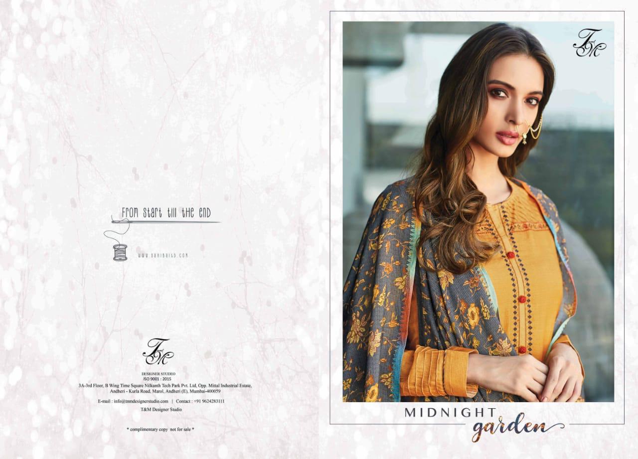 *T&M* Presents its latest catalogue *MIDNIGHT GARDEN* Top : Cotton silk heavy digital print with embroidery Bot : Cotton satin bottom Dup : Vivan modal digital print *1995?* 5%Gst Applicable Set to set Delivery 2 Days |