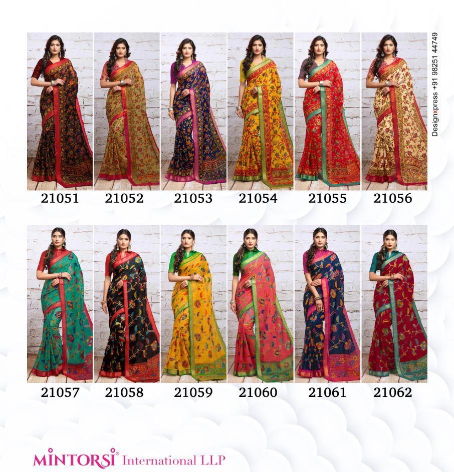Mintorsi Senia Cotton With exclusive designer Print Fabric - Cotton Silk with weave zari border Total Design - 12 * set & loose & singel * Per Pcs Rate -495+gst Single extra 100 Delivery from tomorrow |