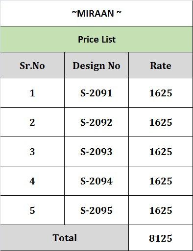 MIRAAN BY KIMORA RATE LIST ATTACHED 1625+5% GST SINGLE AVAILABLE 100+Singles |