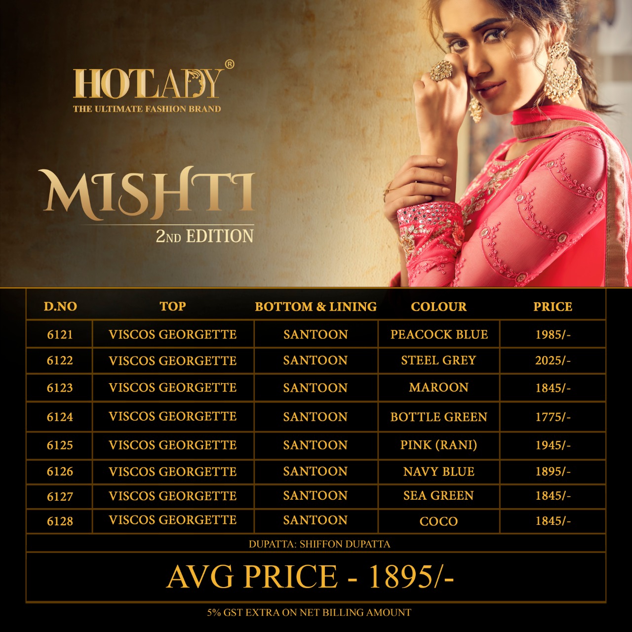 Mishti 2nd Edition By Hotlady Series 6121 To 6128 Designer Party Wear Suits Set And Single Wholesale Supplier Gujarat