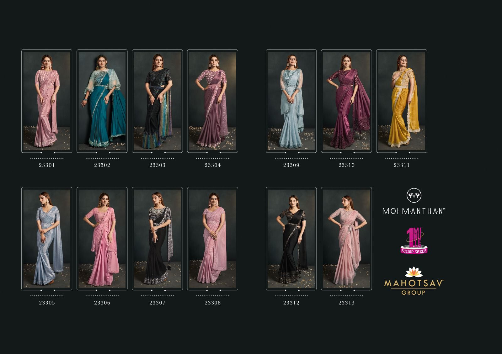 Buy Online Moh Manthan 23300 Series Mew Enigma Mahotsav Redymade Saree Collection 13 Pcs of Full Catalogue at Wholesale Price. Looking for Moh Manthan 23300 Series Mew Enigma Mahotsav Redymade Saree Collection Full Catalouge at Best Price? Buy Now Moh Manthan 23300 Series Mew Enigma Mahotsav Redymade Saree Collection at Wholesale Rate of Rs 0 with Total 13 Pcs from authroized dealer and supplier of Mahotsav Saree Brand. Cost of Each piece is just only Rs 0 which is very low and affordable price to resale the product in your retail store ,This is Surat based Wholesale Supplier & Dealer of Mahotsav Saree Brand. Click on Brand name to Know more about Mahotsav Saree Brand's products.Call or Whatsapp on 9898838984 for booking or enquiry