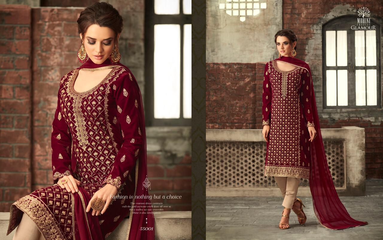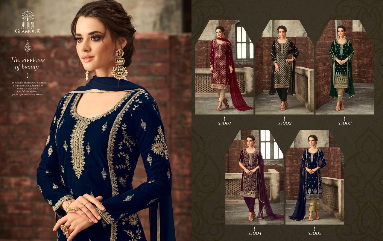 Mohini Glamour Vol 55 Velvet Collection Series 55001 Velvet Designer Party Wear Suits Wholesale Supplier Gujarat