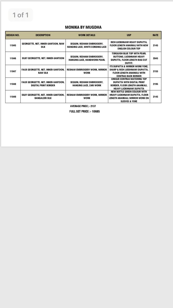 Brand - Mugdha. Catlog Name - Monika . Series -11045 to 11049. Set & Loose. GST 5 Percent Extra . Delivery-03-10-19 |