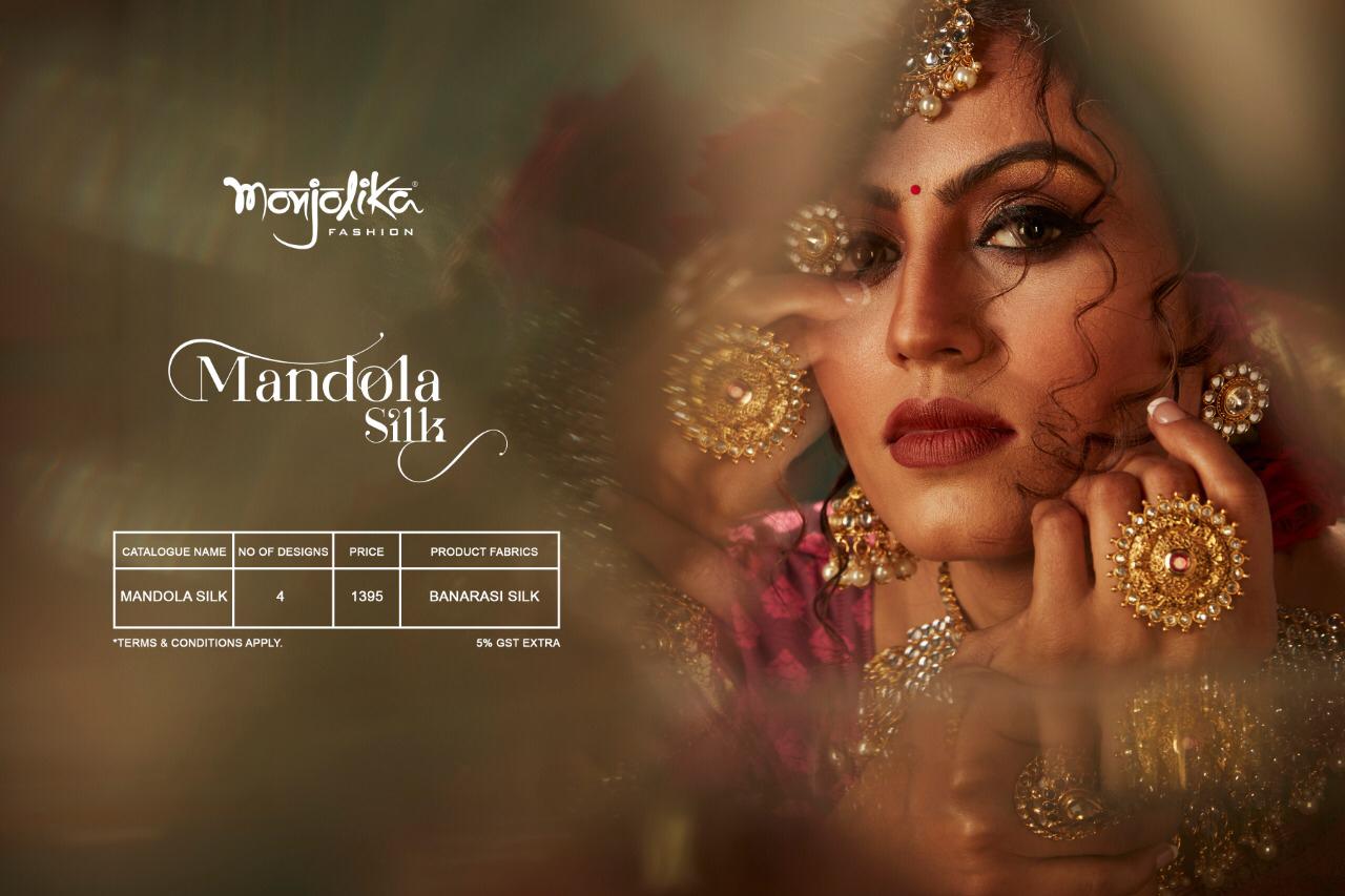 Buy Online Monjolika Fashion Mandola Silk Sarees Wholesale Supplier And Dealer Gujarat 4 Pcs of Full Catalogue at Wholesale Price. Looking for Monjolika Fashion Mandola Silk Sarees Wholesale Supplier And Dealer Gujarat Full Catalouge at Best Price? Buy Now Monjolika Fashion Mandola Silk Sarees Wholesale Supplier And Dealer Gujarat at Wholesale Rate of Rs 5580 with Total 4 Pcs from authroized dealer and supplier of BRAND'S Brand. Cost of Each piece is just only Rs 1395 which is very low and affordable price to resale the product in your retail store ,This is Surat based Wholesale Supplier & Dealer of BRAND'S Brand. Click on Brand name to Know more about BRAND'S Brand's products.Call or Whatsapp on 9898838984 for booking or enquiry
