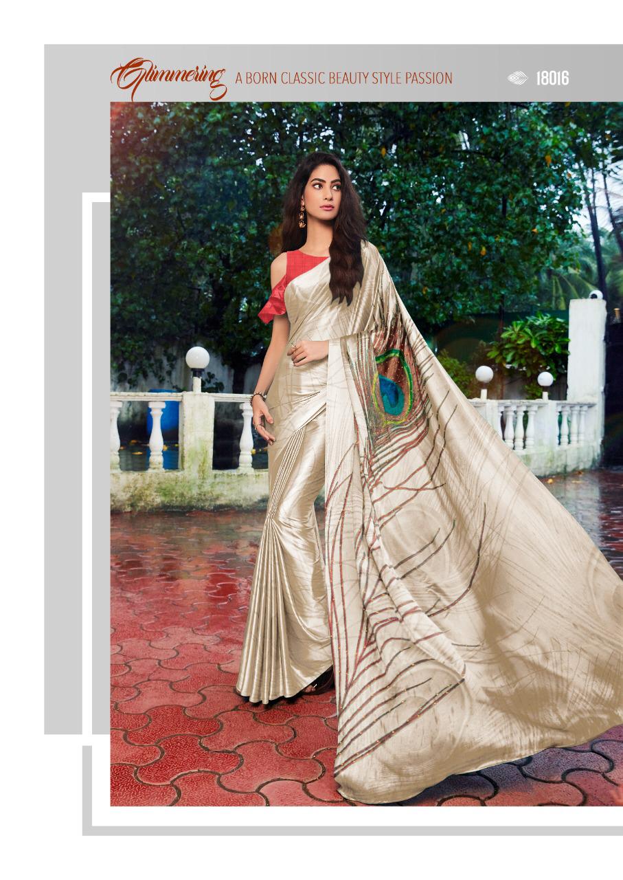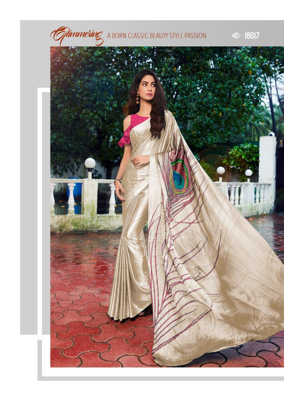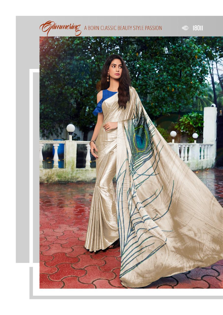 MINTORSI Designer Saree Cataloge Name - morpankh satin colours Total Design - 8 Fabric - satin silk with exclusive handprint and stone diamond work * set & loose & Singel * Series - 18011 to 18017. Per Pcs Rate -805+gst 5 Percent Extra. Single extra 100 Delivery from tomorrow |