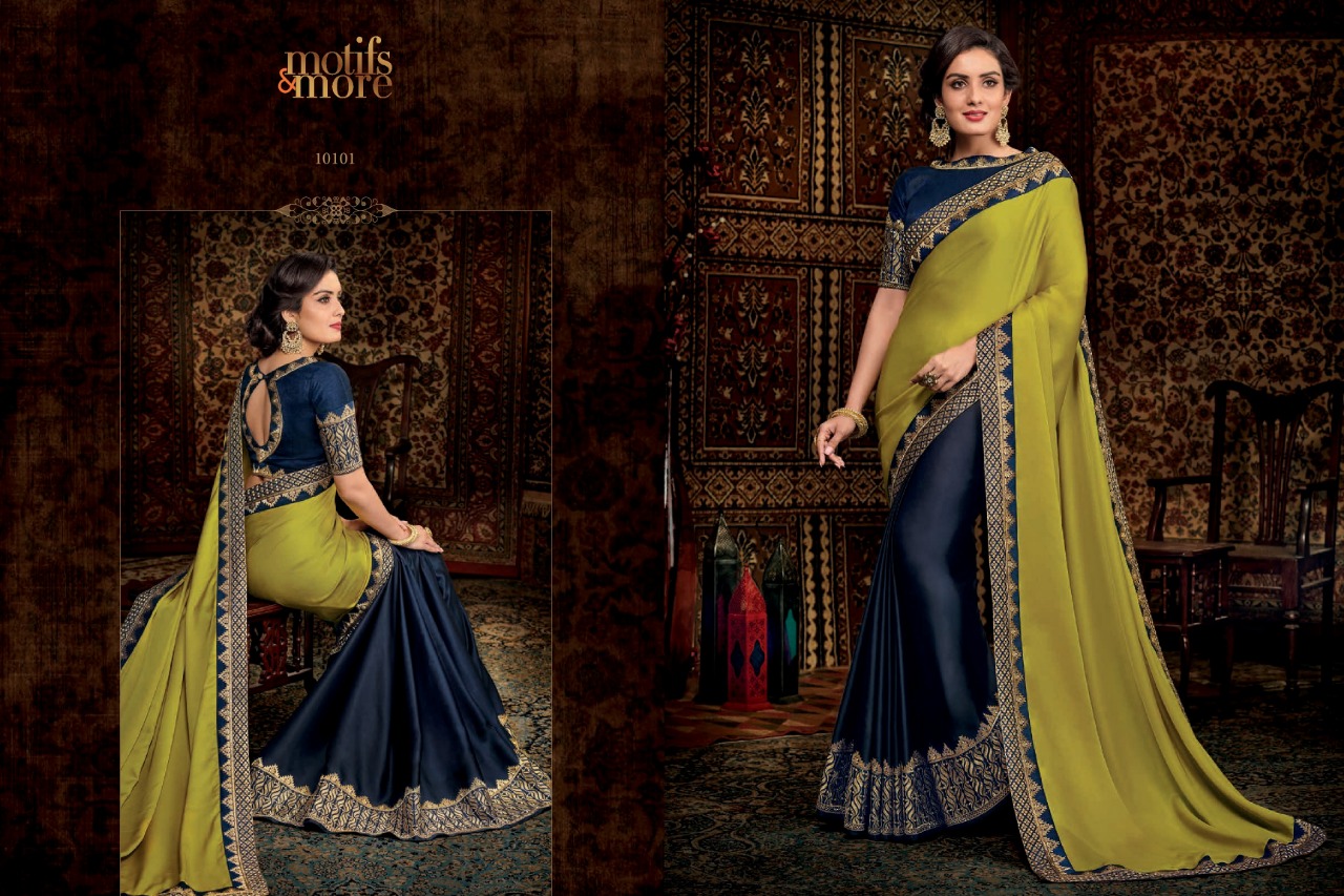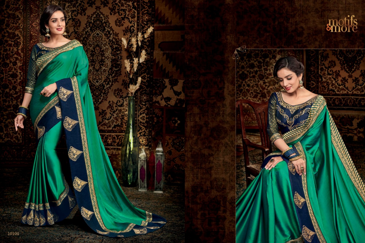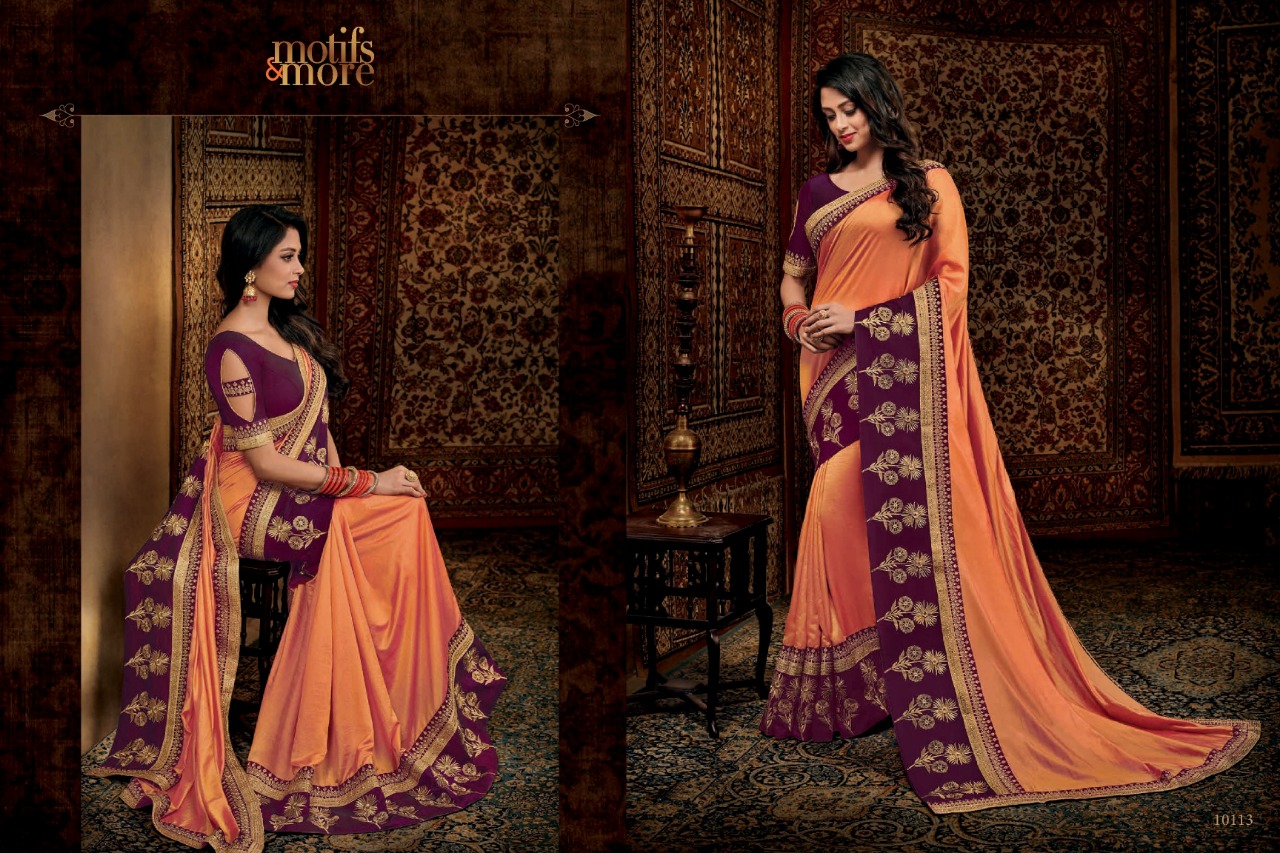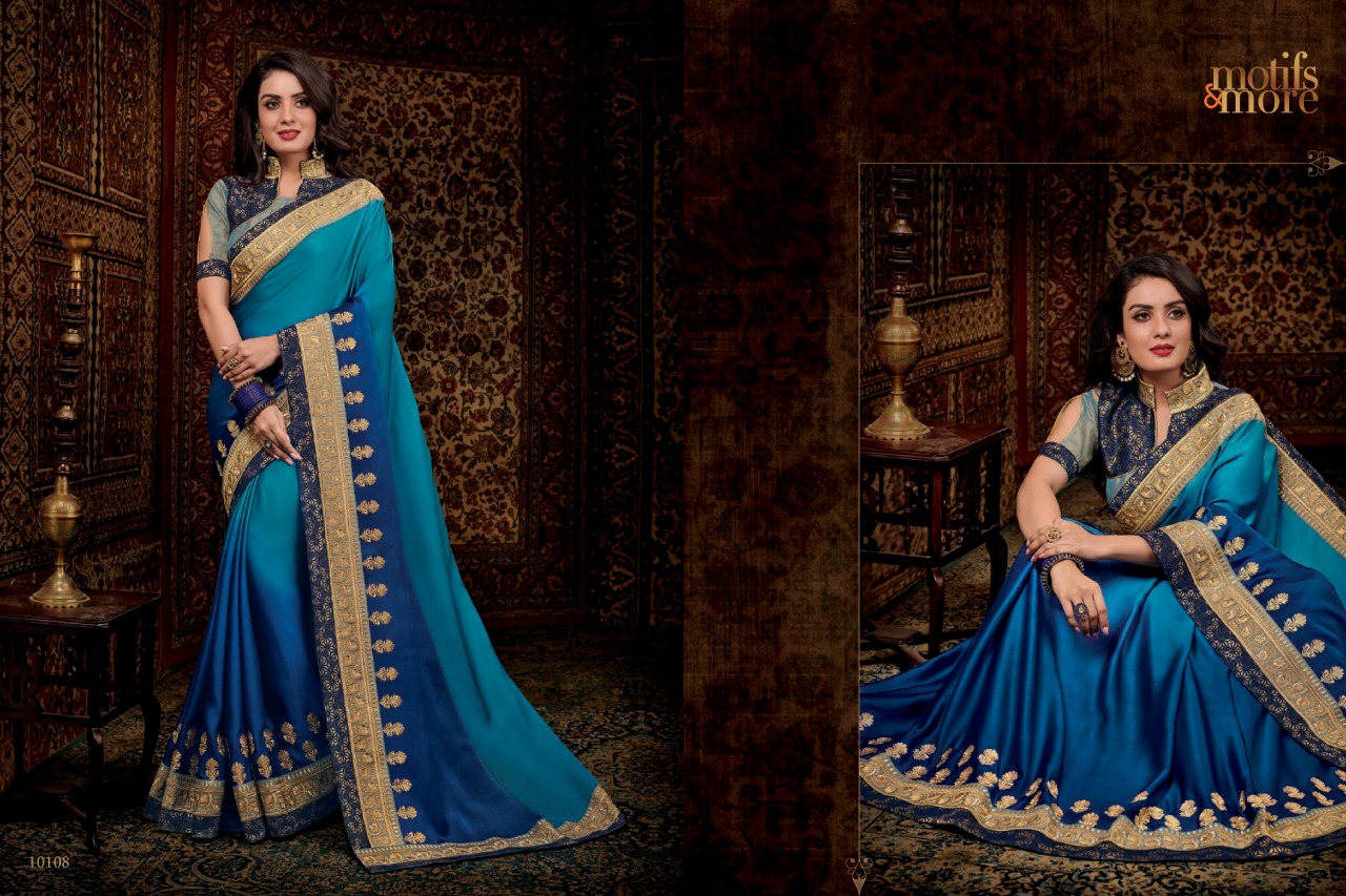 Buy Online Motifs And More Series 10101 To 10118 Silk Designer Party Wear Sarees Wholesale Supplier And Dealer Gujarat 18 Pcs of Full Catalogue at Wholesale Price. Looking for Motifs And More Series 10101 To 10118 Silk Designer Party Wear Sarees Wholesale Supplier And Dealer Gujarat Full Catalouge at Best Price? Buy Now Motifs And More Series 10101 To 10118 Silk Designer Party Wear Sarees Wholesale Supplier And Dealer Gujarat at Wholesale Rate of Rs 37368 with Total 18 Pcs from authroized dealer and supplier of BRAND'S Brand. Cost of Each piece is just only Rs 2076 which is very low and affordable price to resale the product in your retail store ,This is Surat based Wholesale Supplier & Dealer of BRAND'S Brand. Click on Brand name to Know more about BRAND'S Brand's products.Call or Whatsapp on 9898838984 for booking or enquiry