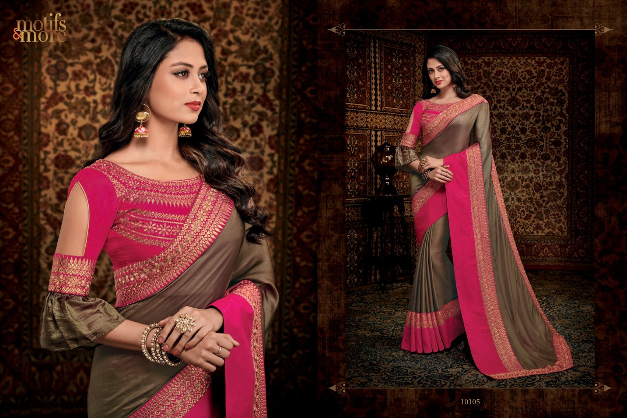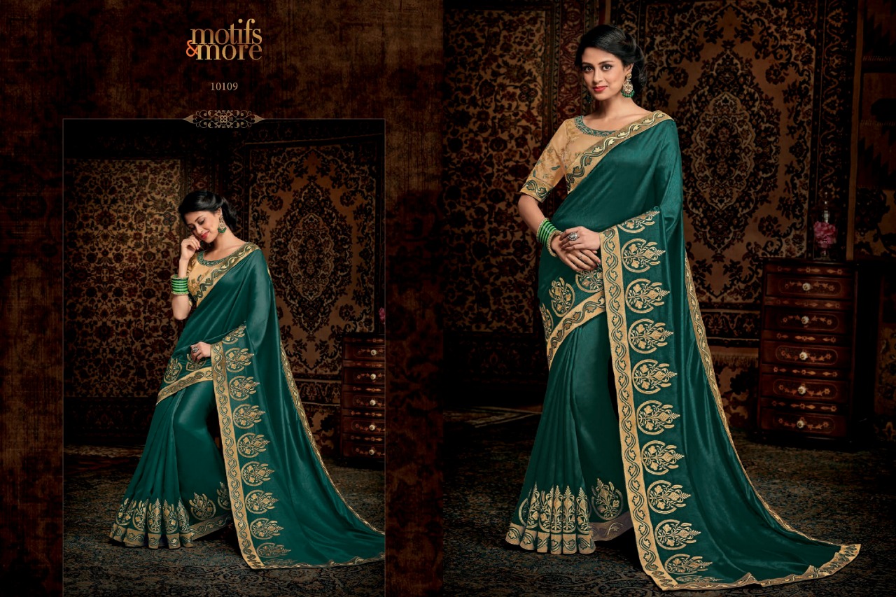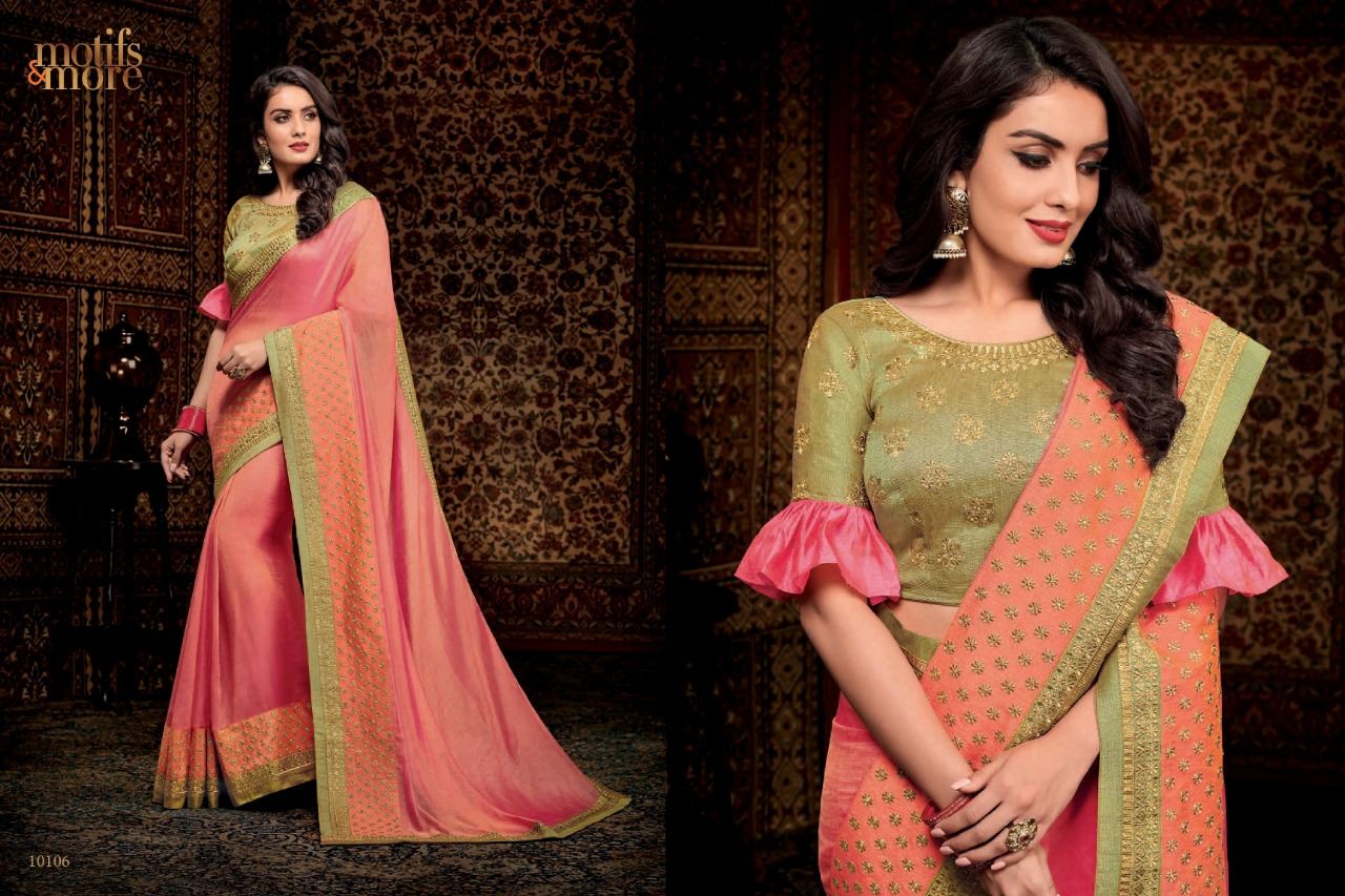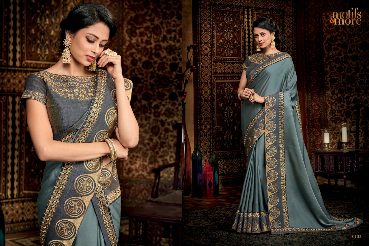 Buy Online Motifs And More Series 10101 To 10118 Silk Designer Party Wear Sarees Wholesale Supplier And Dealer Gujarat 18 Pcs of Full Catalogue at Wholesale Price. Looking for Motifs And More Series 10101 To 10118 Silk Designer Party Wear Sarees Wholesale Supplier And Dealer Gujarat Full Catalouge at Best Price? Buy Now Motifs And More Series 10101 To 10118 Silk Designer Party Wear Sarees Wholesale Supplier And Dealer Gujarat at Wholesale Rate of Rs 37368 with Total 18 Pcs from authroized dealer and supplier of BRAND'S Brand. Cost of Each piece is just only Rs 2076 which is very low and affordable price to resale the product in your retail store ,This is Surat based Wholesale Supplier & Dealer of BRAND'S Brand. Click on Brand name to Know more about BRAND'S Brand's products.Call or Whatsapp on 9898838984 for booking or enquiry
