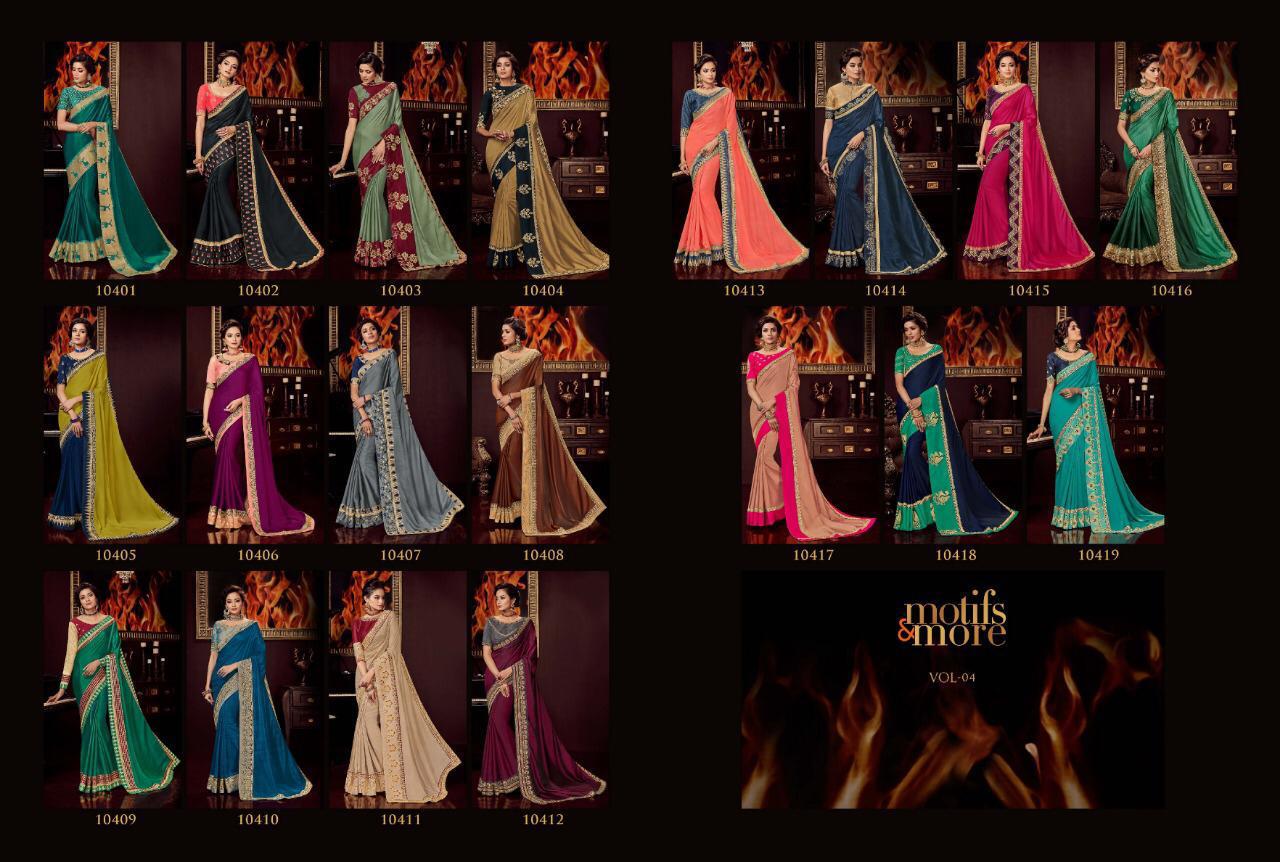 Motifs And More Vol 4 Series 10401 To 101419 Designer Party Wear Sarees Wholesale Supplier And Trader Gujarat